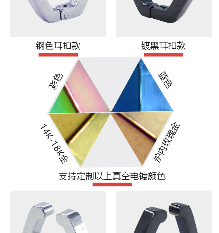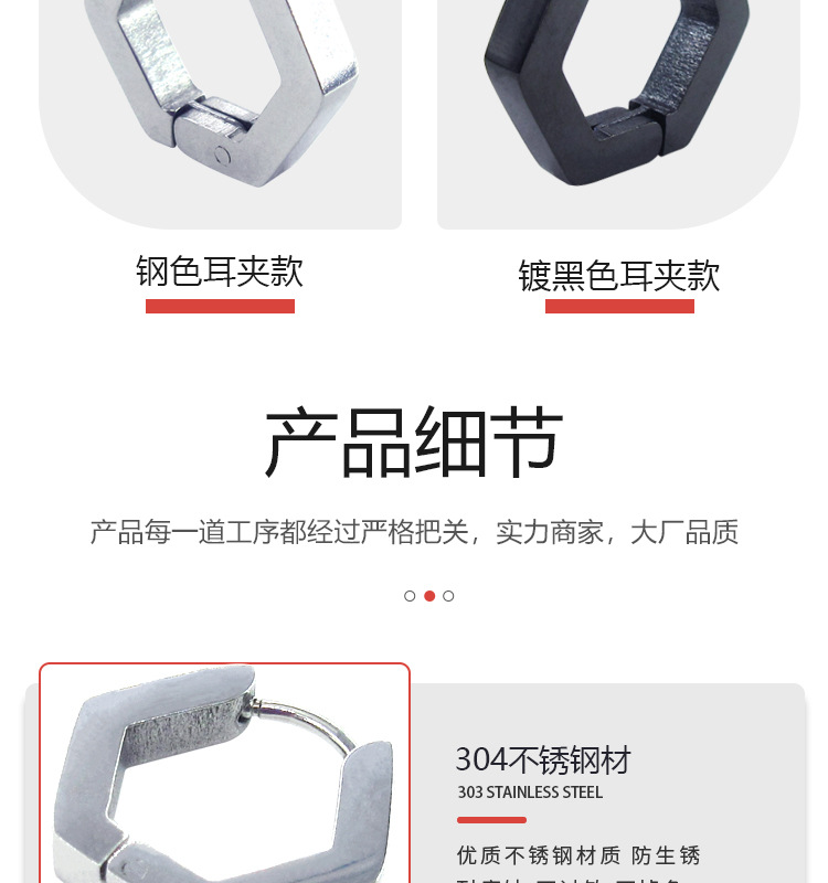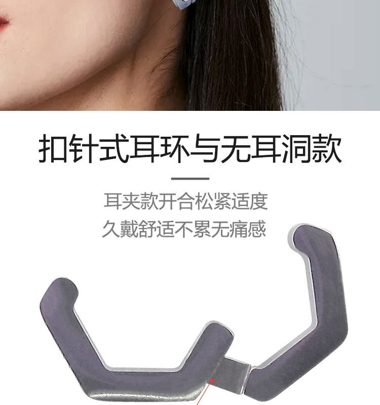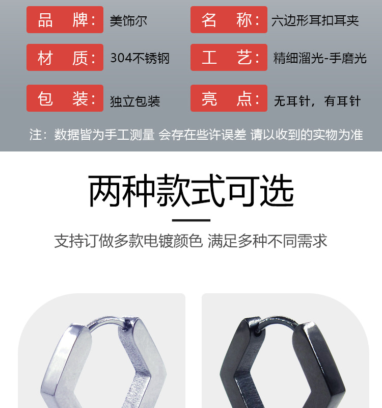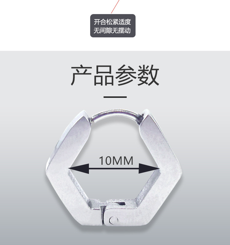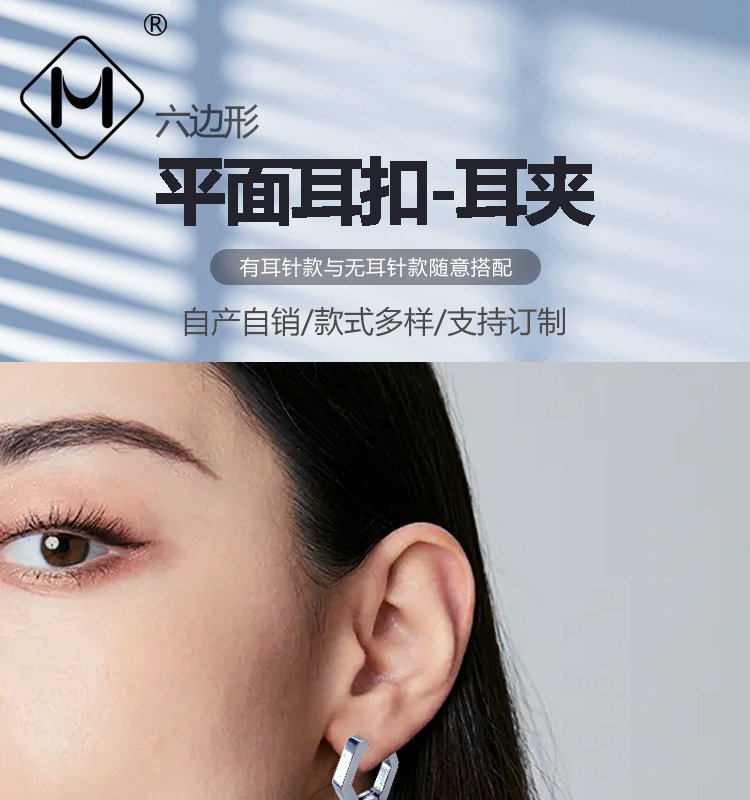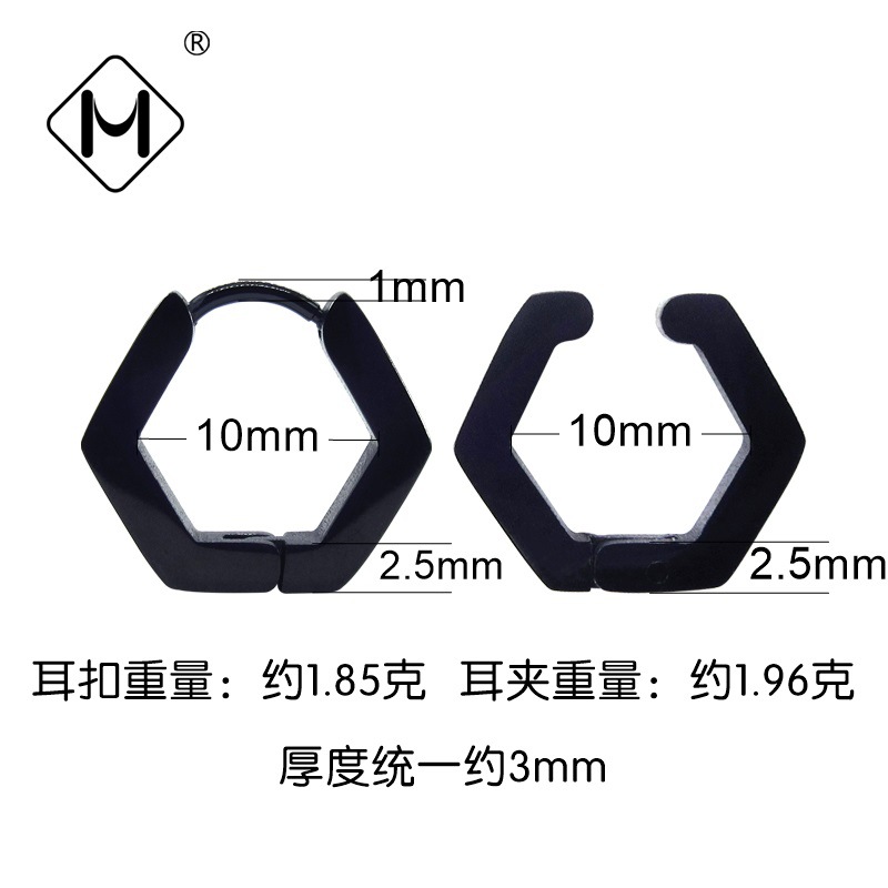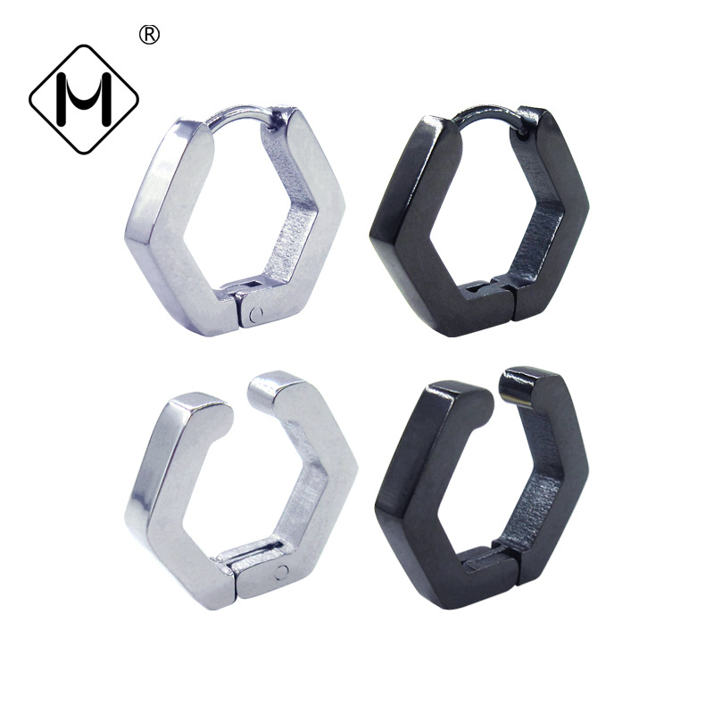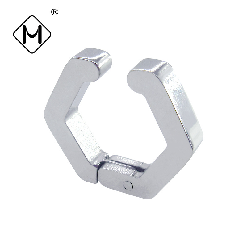 메이시어 스테인레스 스틸 귀걸이 육각형 귀 클립 티타늄 스틸 광택 플랫 귀걸이 크로스 보더 귀걸이 비 피어싱 귀걸이