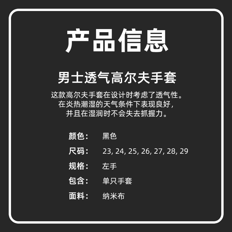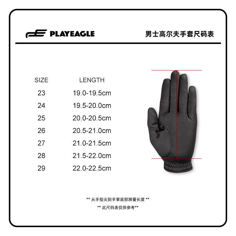 PLAYEAGLE 남성용 골프 장갑 블랙 통기성 왼손용 23-29 사이즈 미끄럼 방지 나노 원단 장갑 재고 있음