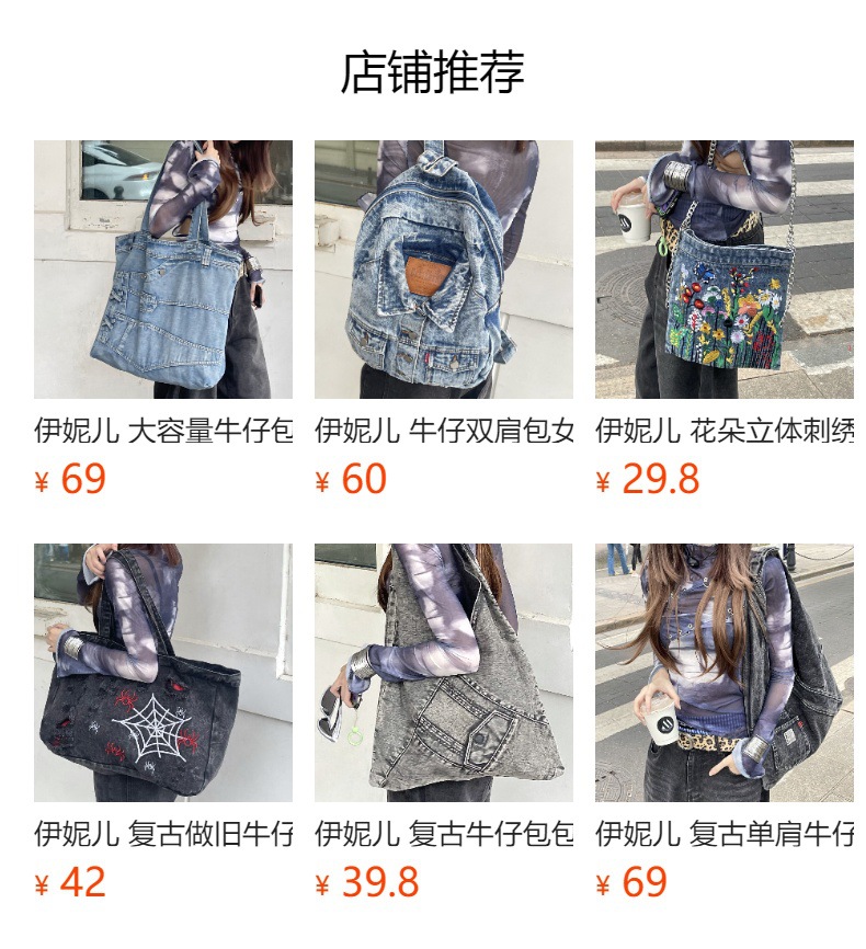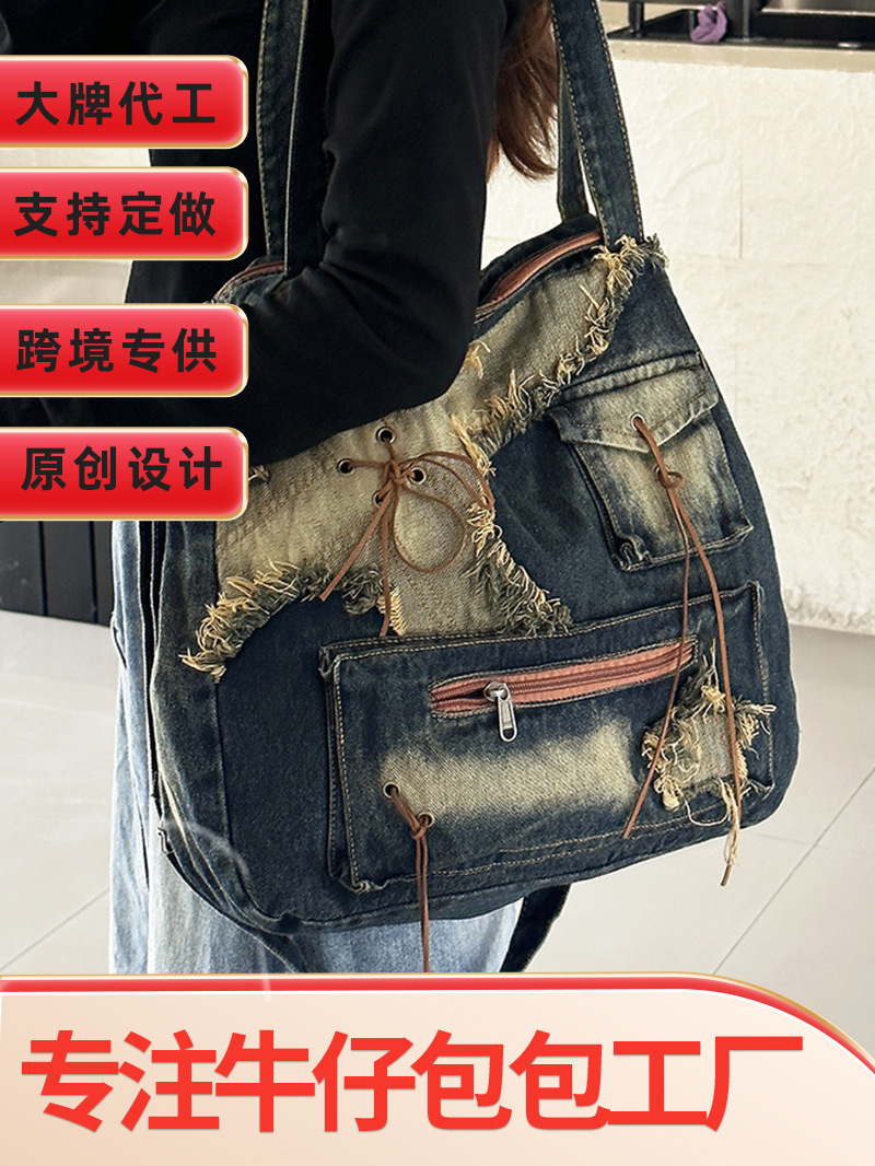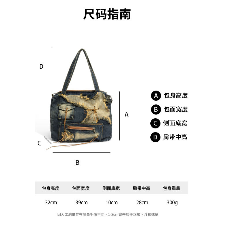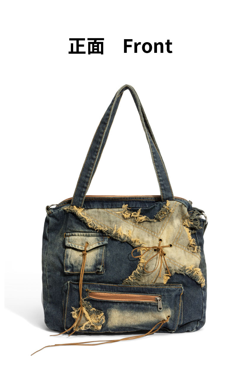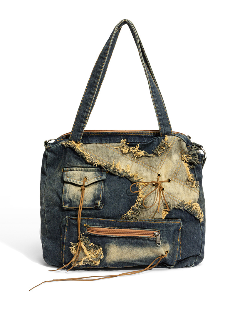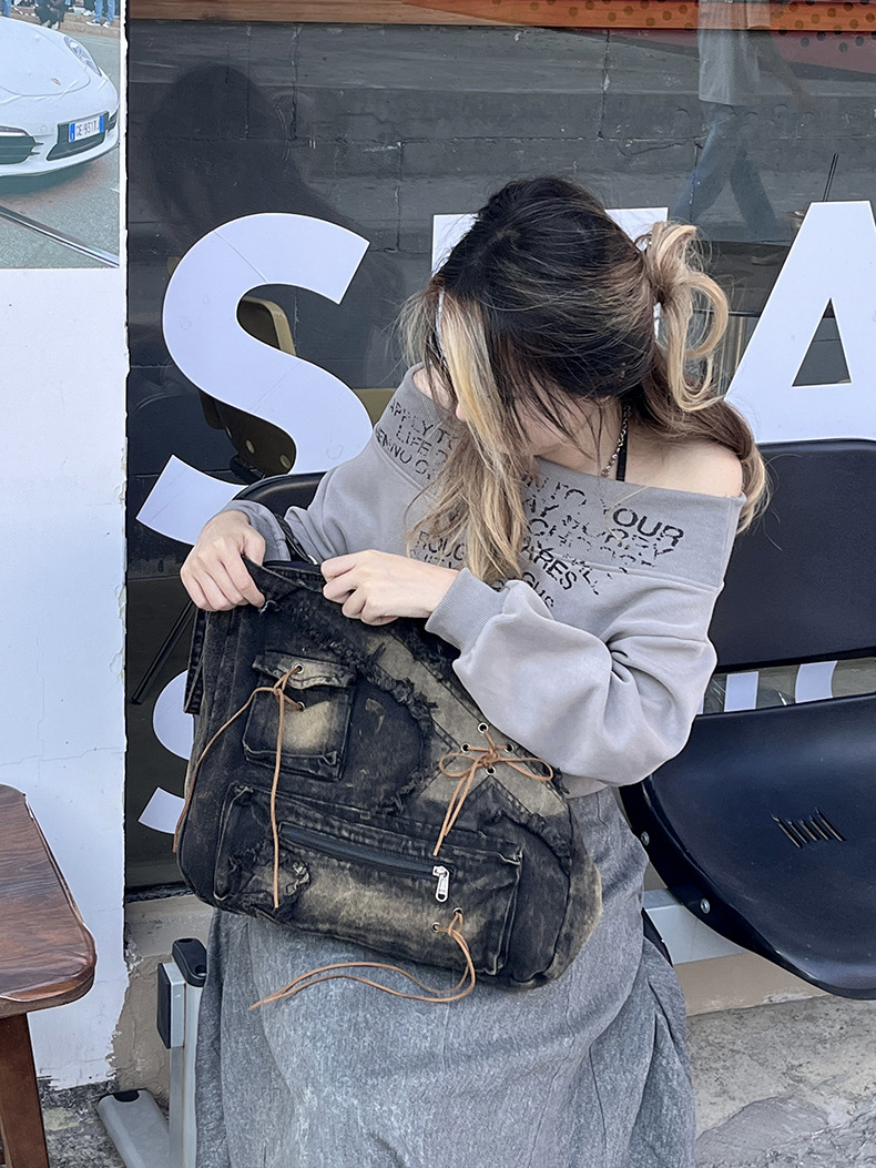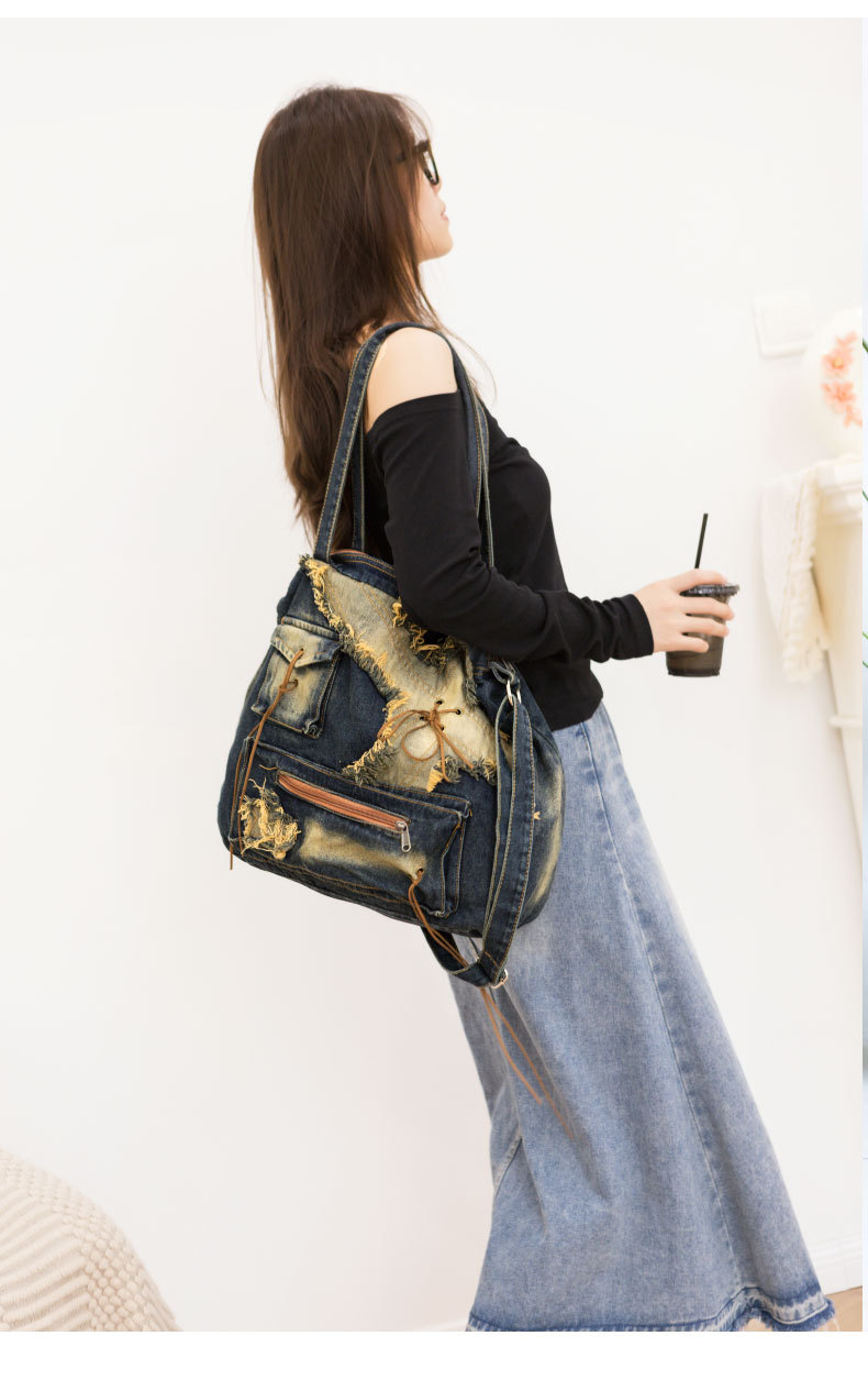 이니엘 레트로 데님 백 대용량 캐주얼 숄더백 학생 출퇴근용 빈티지 마감 데일리 크로스백