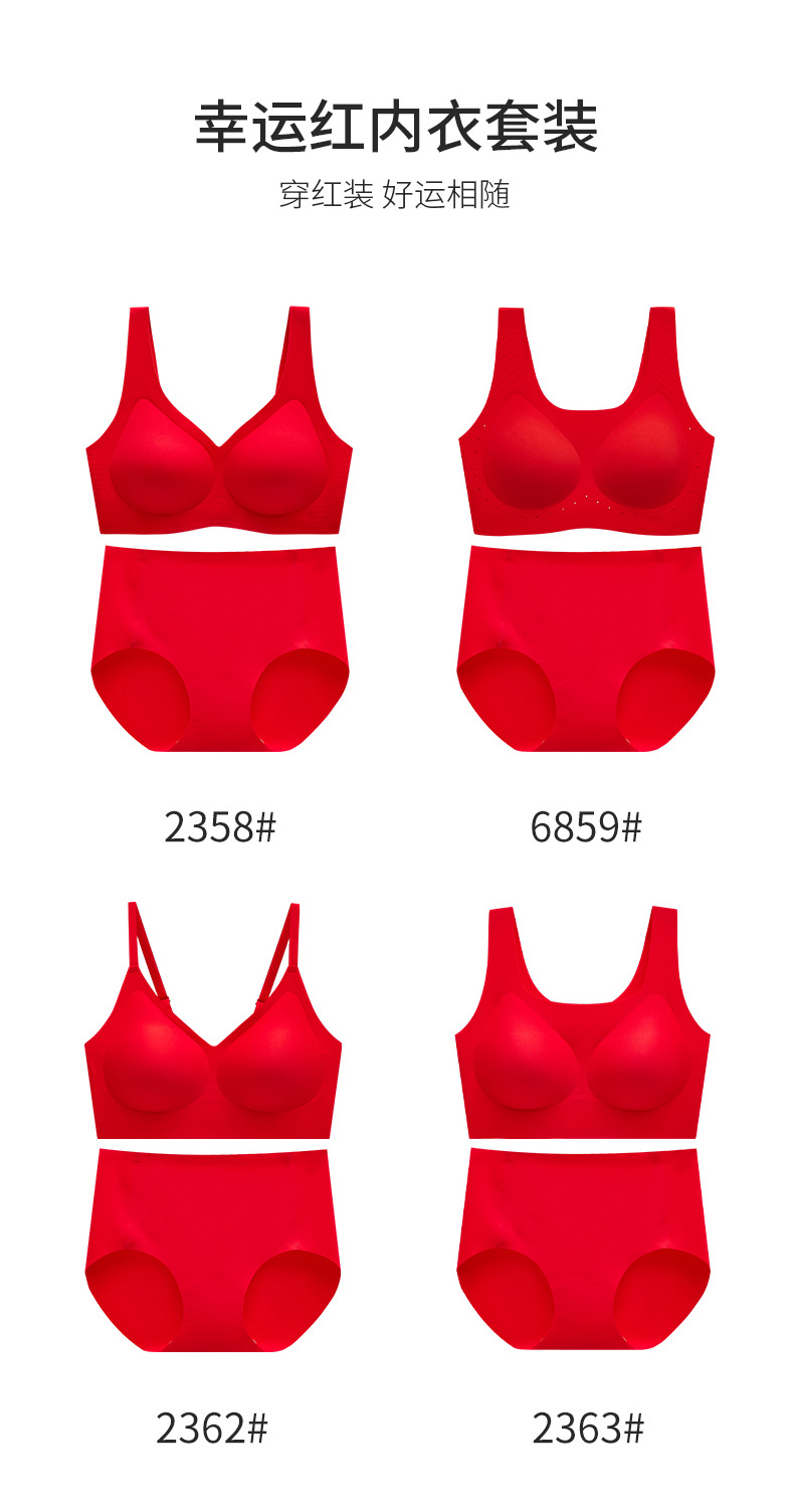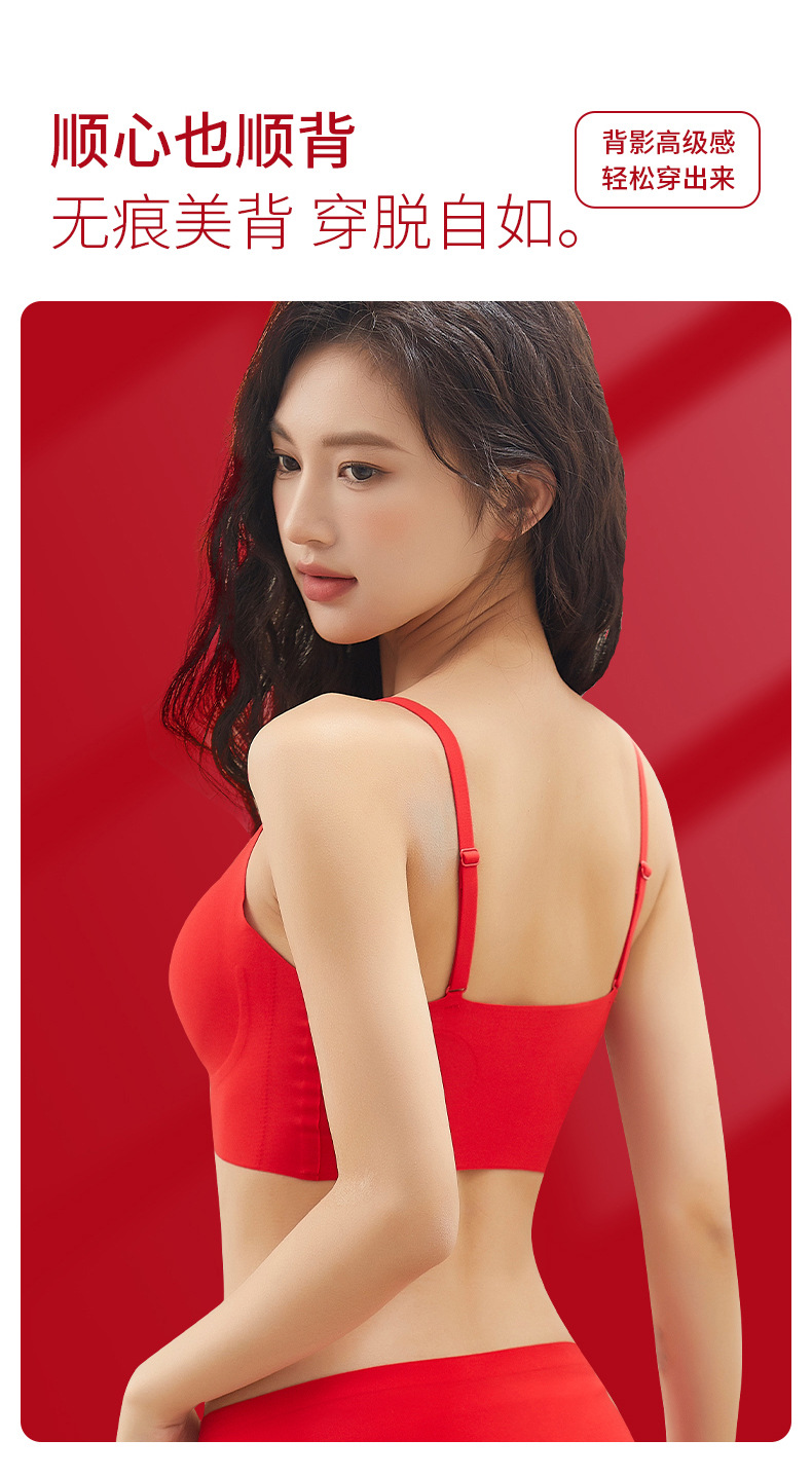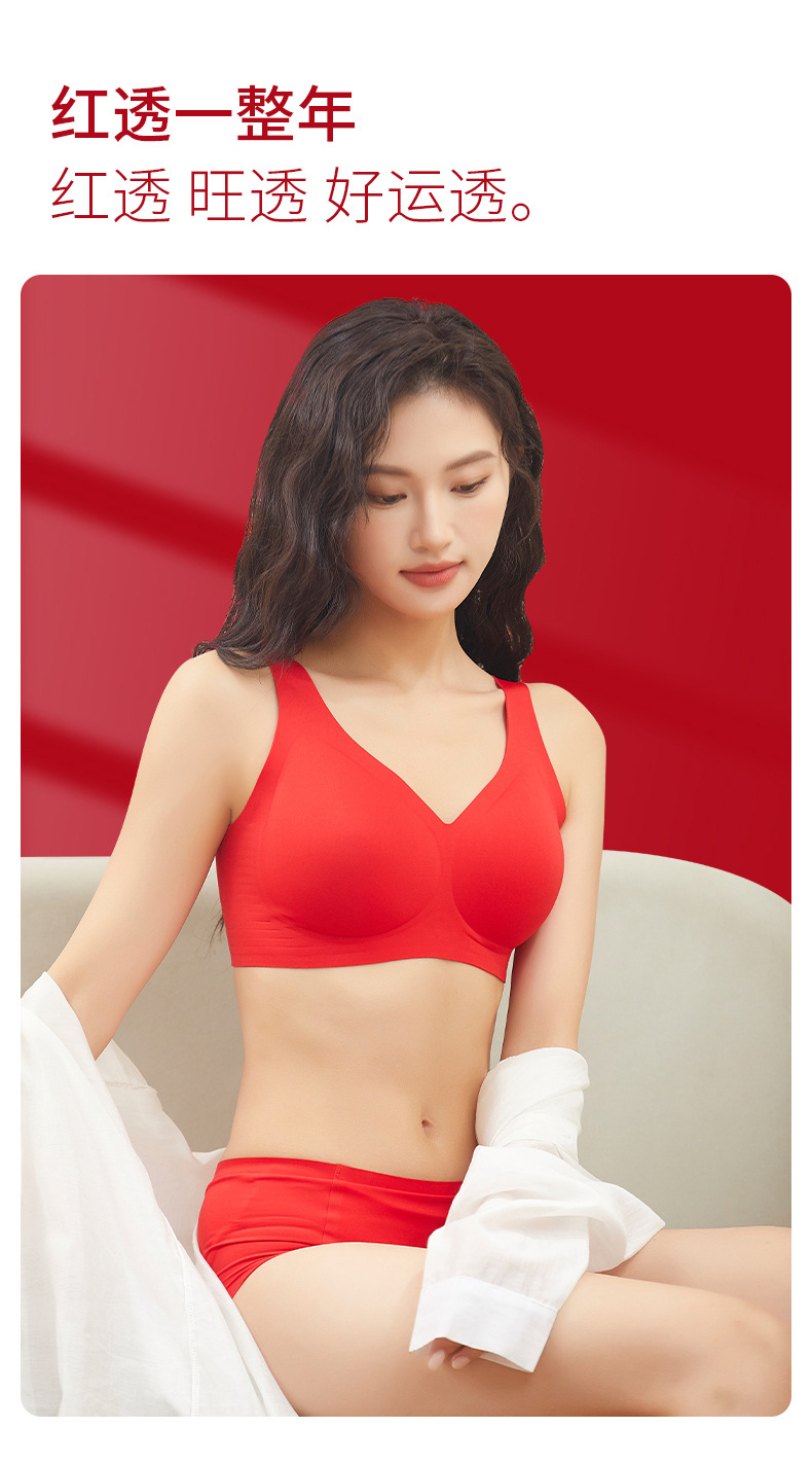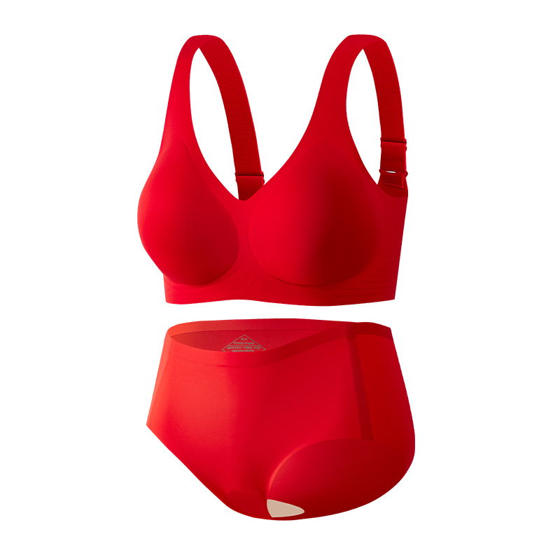 Bemingnian 빨간 속옷 팬티 세트 결혼식 축제 원활한 브래지어 얇은 작은 가슴 수집 액세서리 유방 브래지어