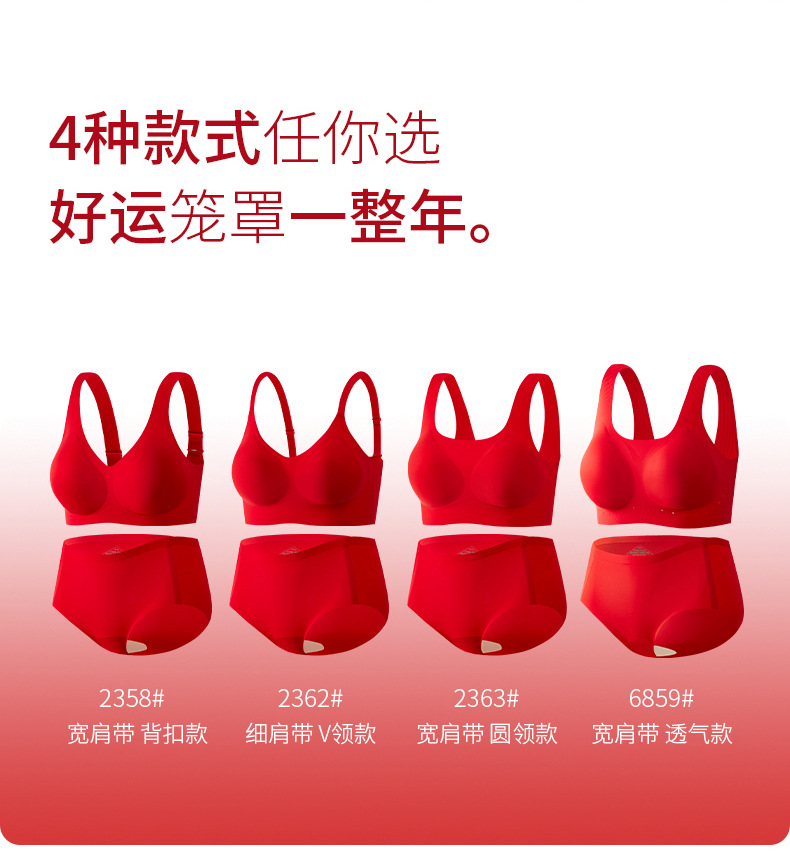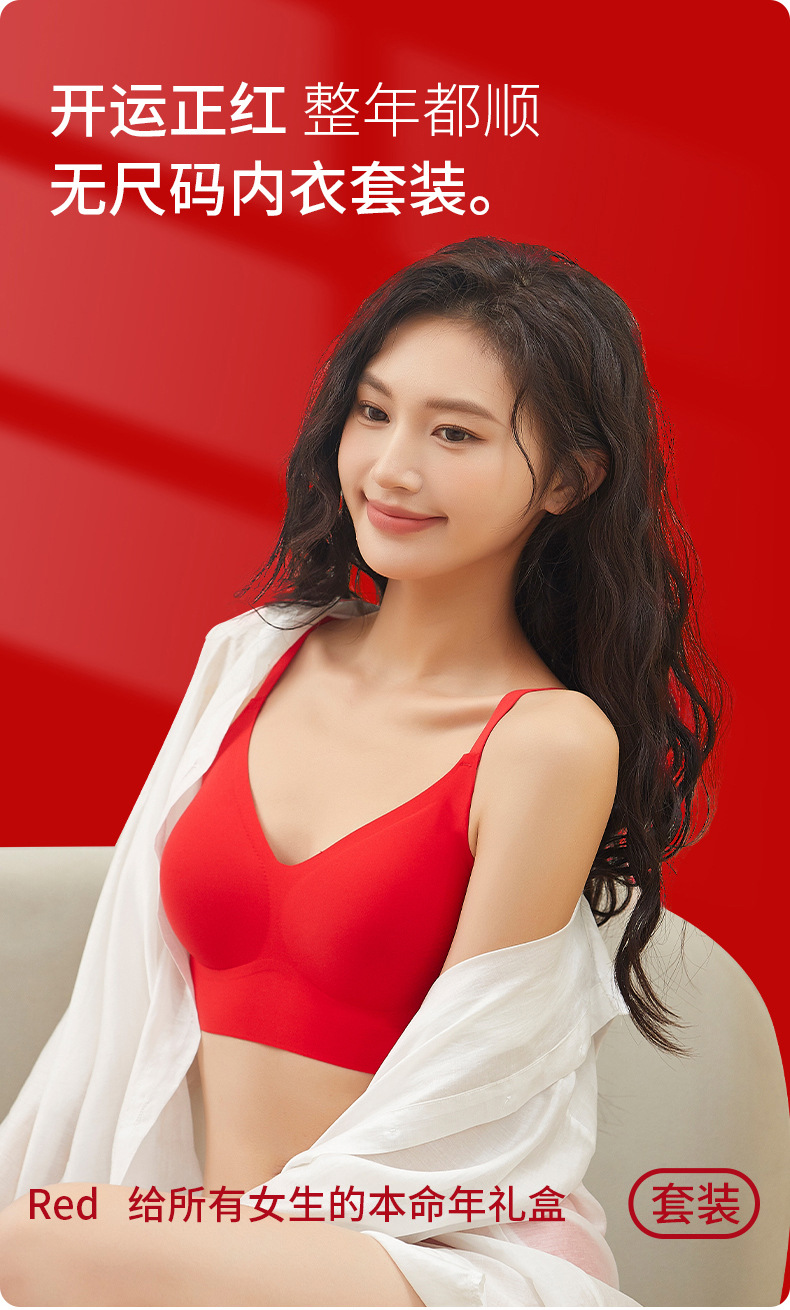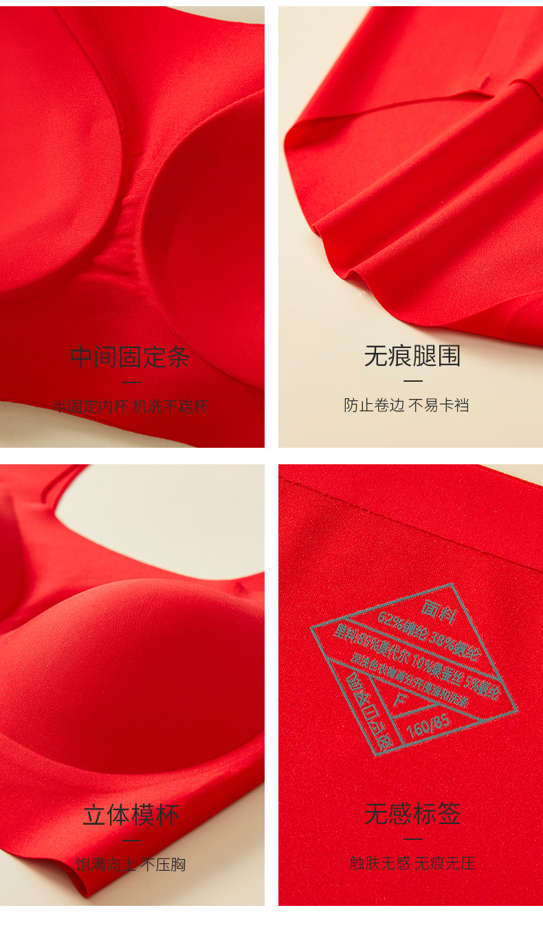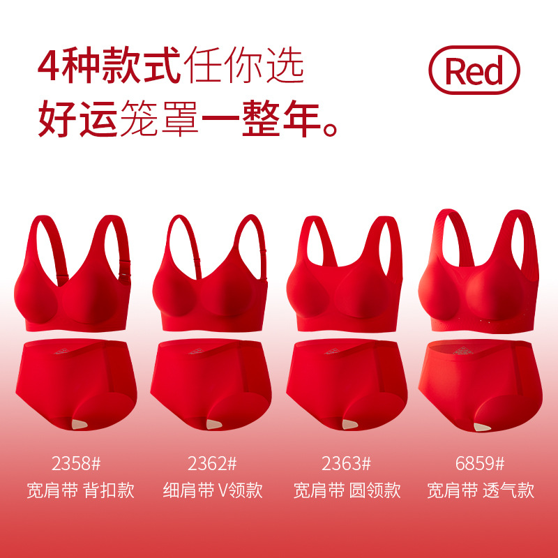Bemingnian 빨간 속옷 팬티 세트 결혼식 축제 원활한 브래지어 얇은 작은 가슴 수집 액세서리 유방 브래지어