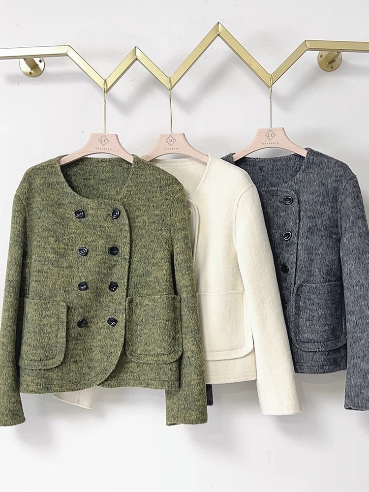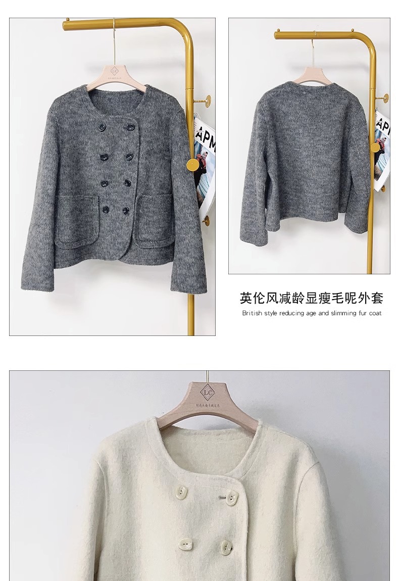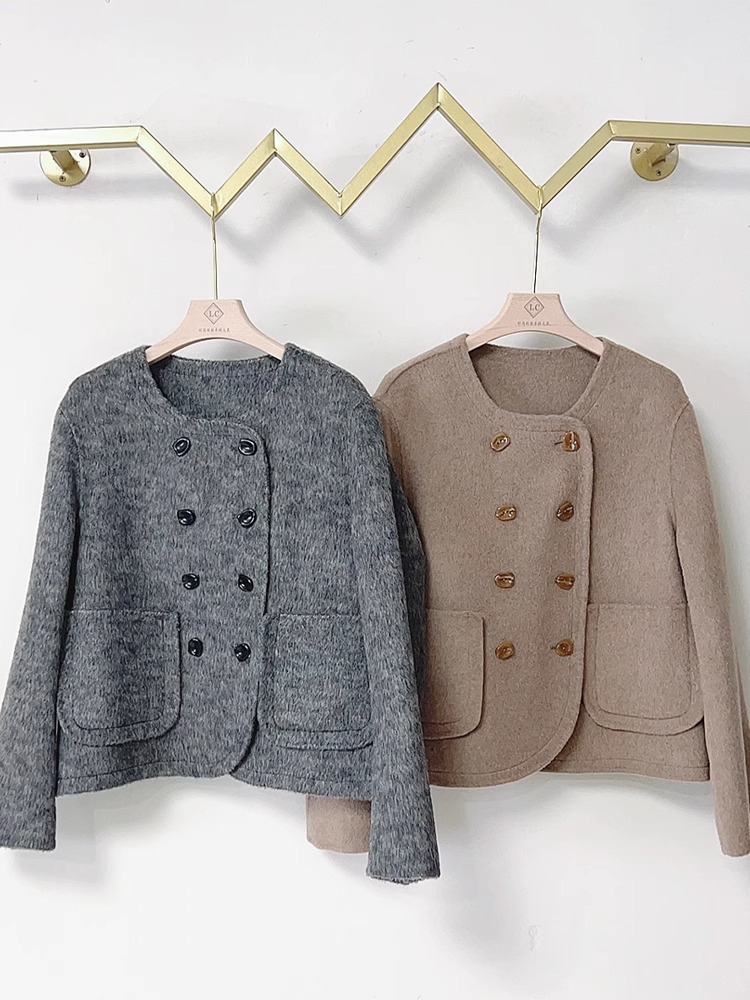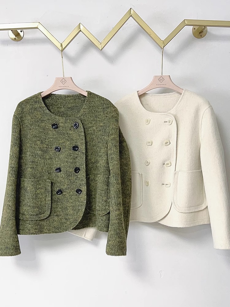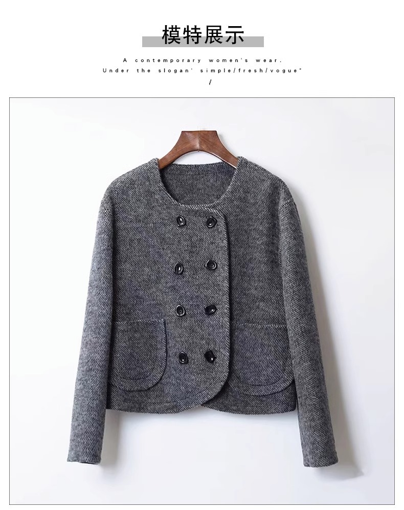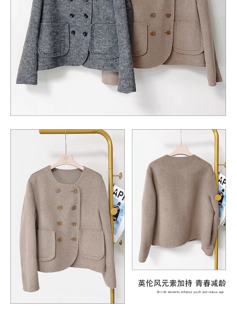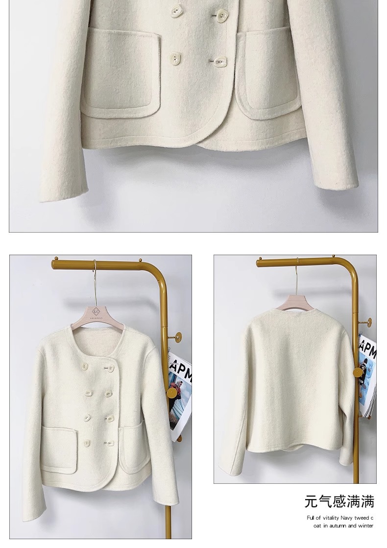 양면 캐시미어 코트 2023 새로운 스타일 작은 더블 브레스트 작은 샤넬 스타일 짧은 부드러운 모든 매치 모직 코트 여성