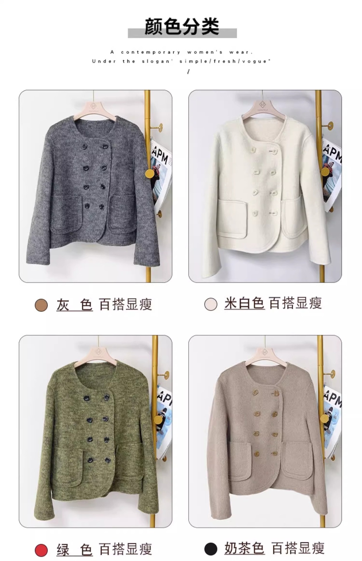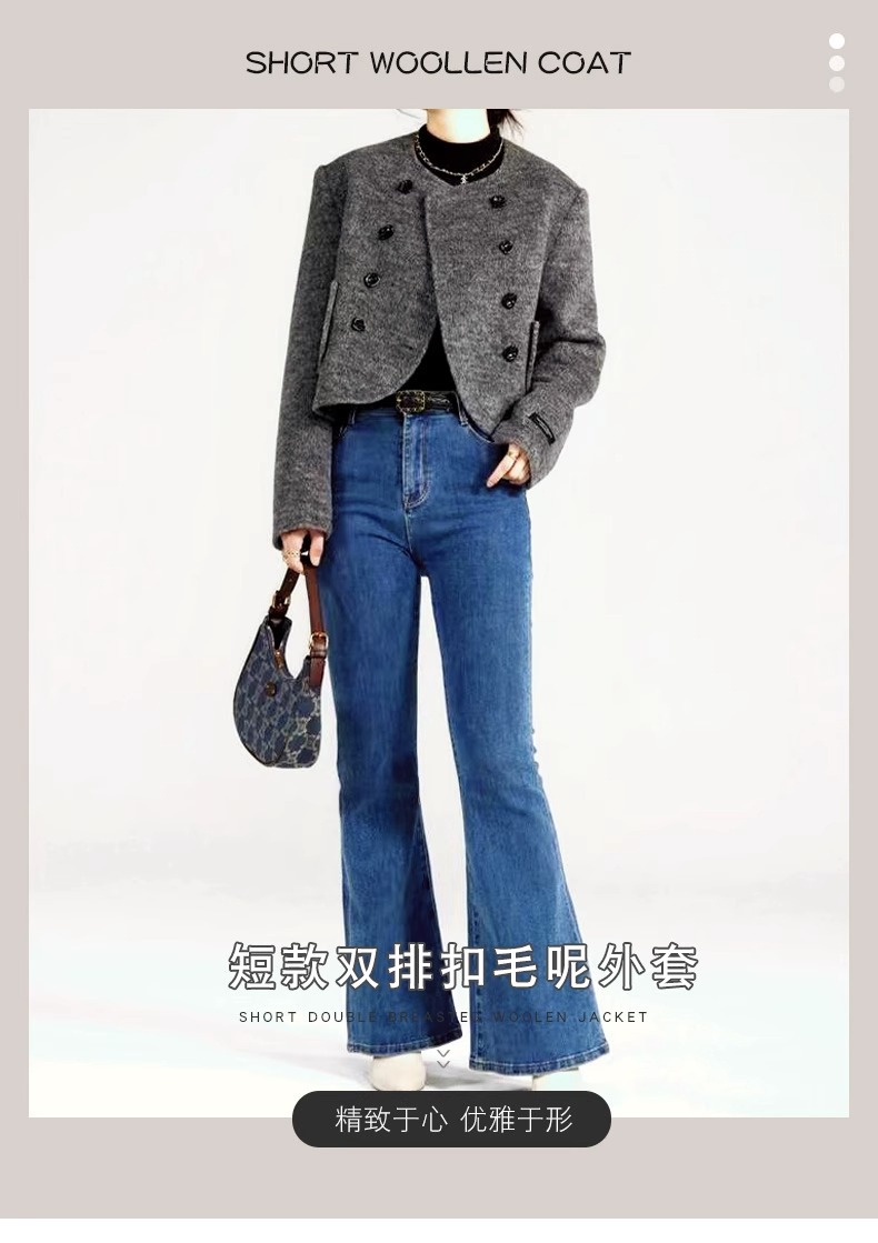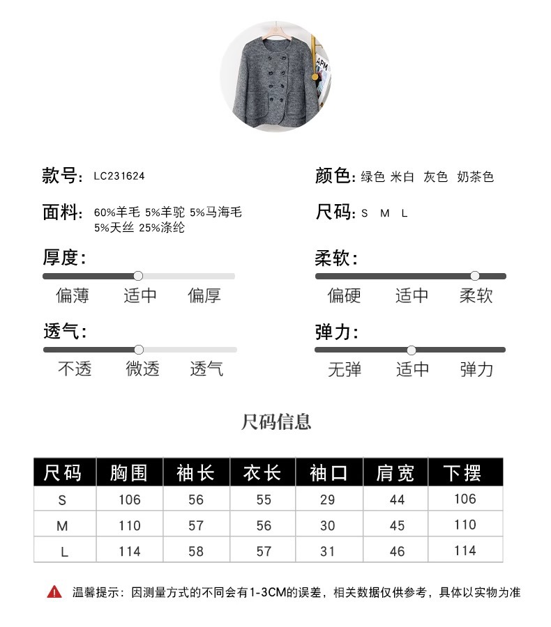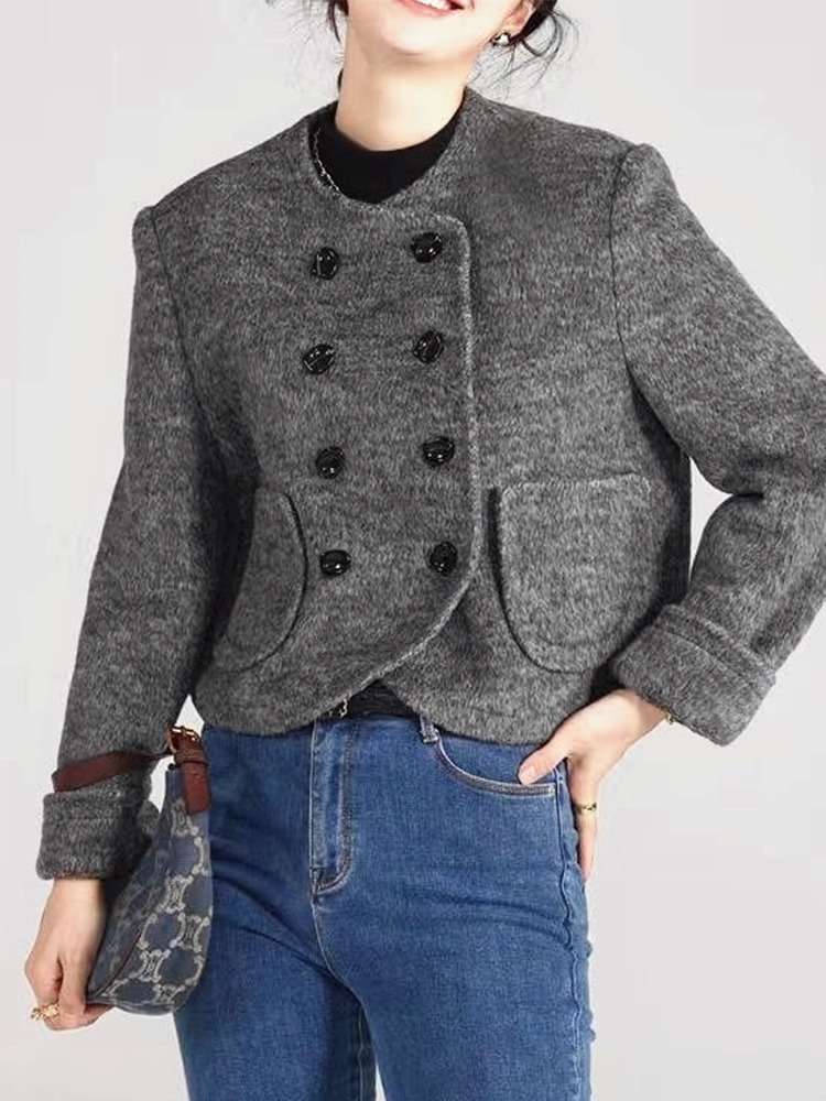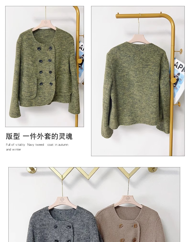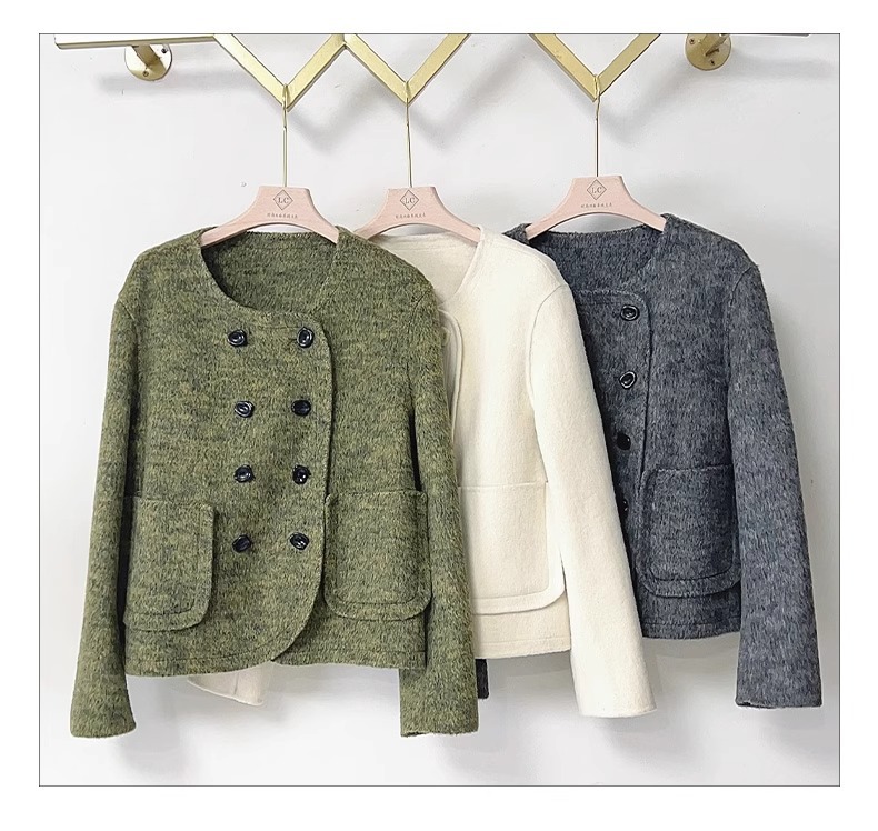 양면 캐시미어 코트 2023 새로운 스타일 작은 더블 브레스트 작은 샤넬 스타일 짧은 부드러운 모든 매치 모직 코트 여성