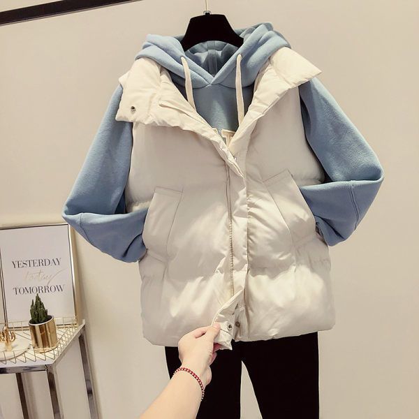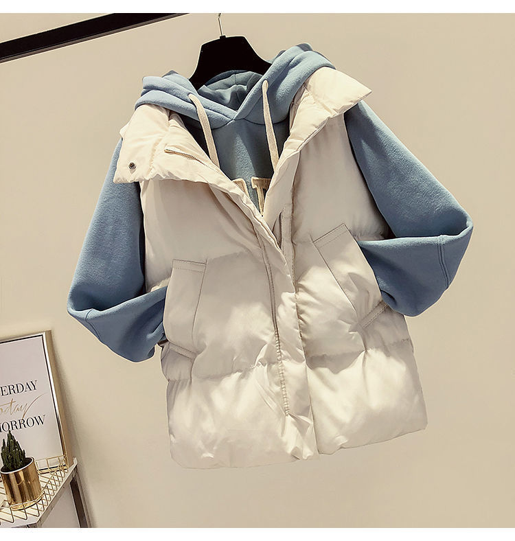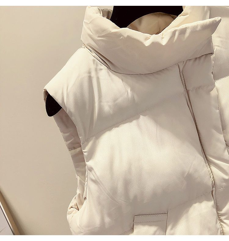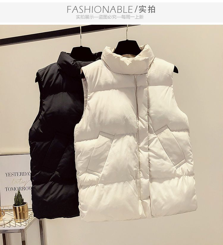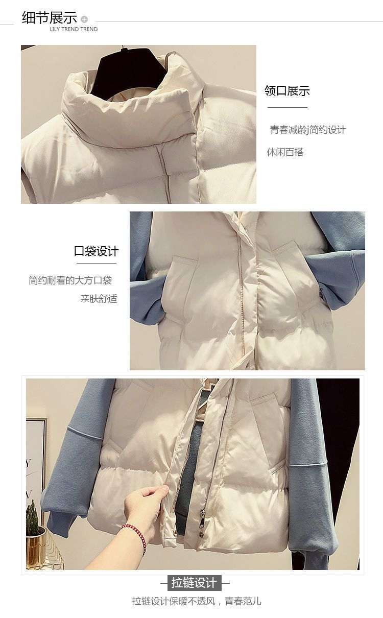 다운 코튼 조끼 여성 2023 가을과 겨울 새로운 한국 스타일 유행 느슨한 짧은 대학 스타일 칼라 조끼 재킷
