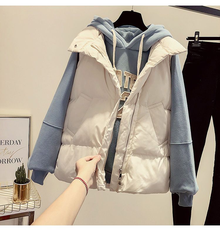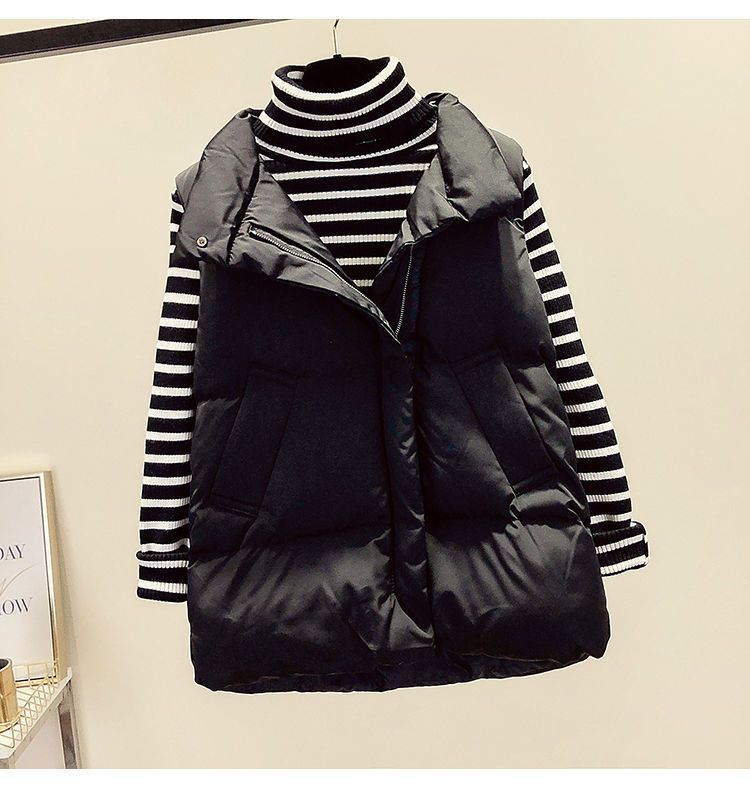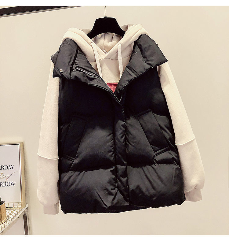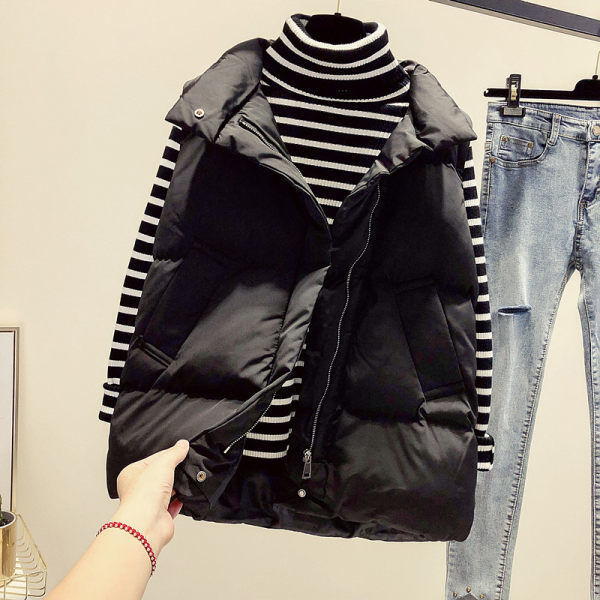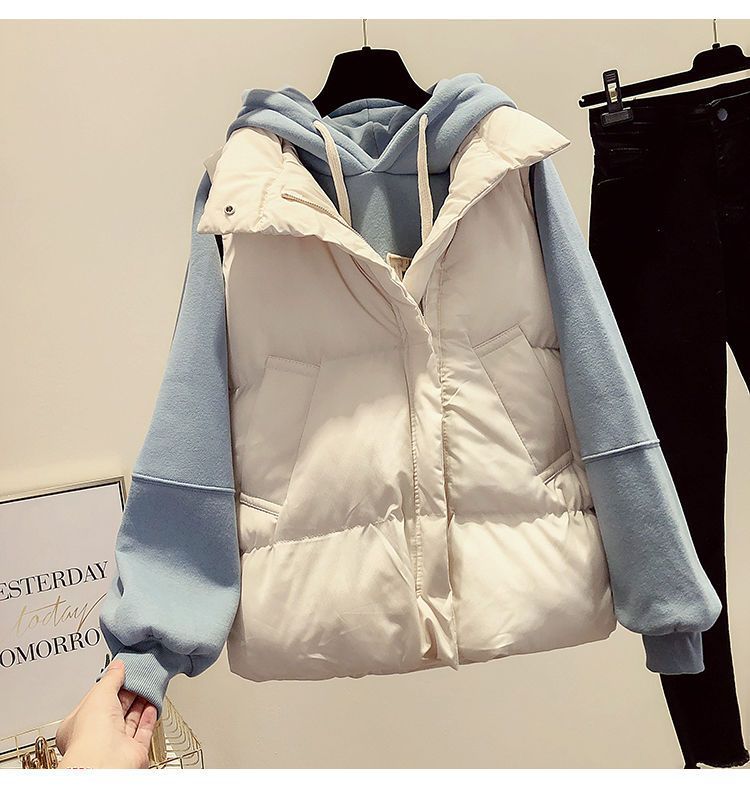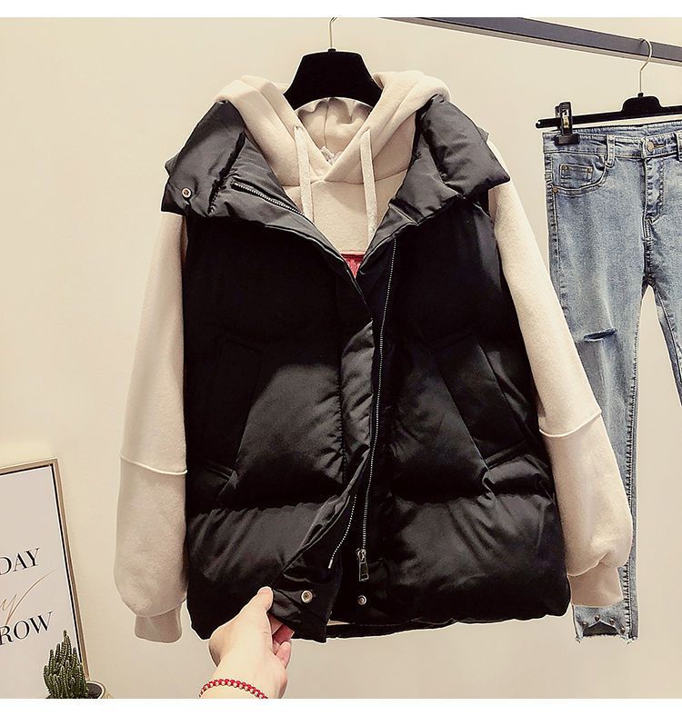 다운 코튼 조끼 여성 2023 가을과 겨울 새로운 한국 스타일 유행 느슨한 짧은 대학 스타일 칼라 조끼 재킷