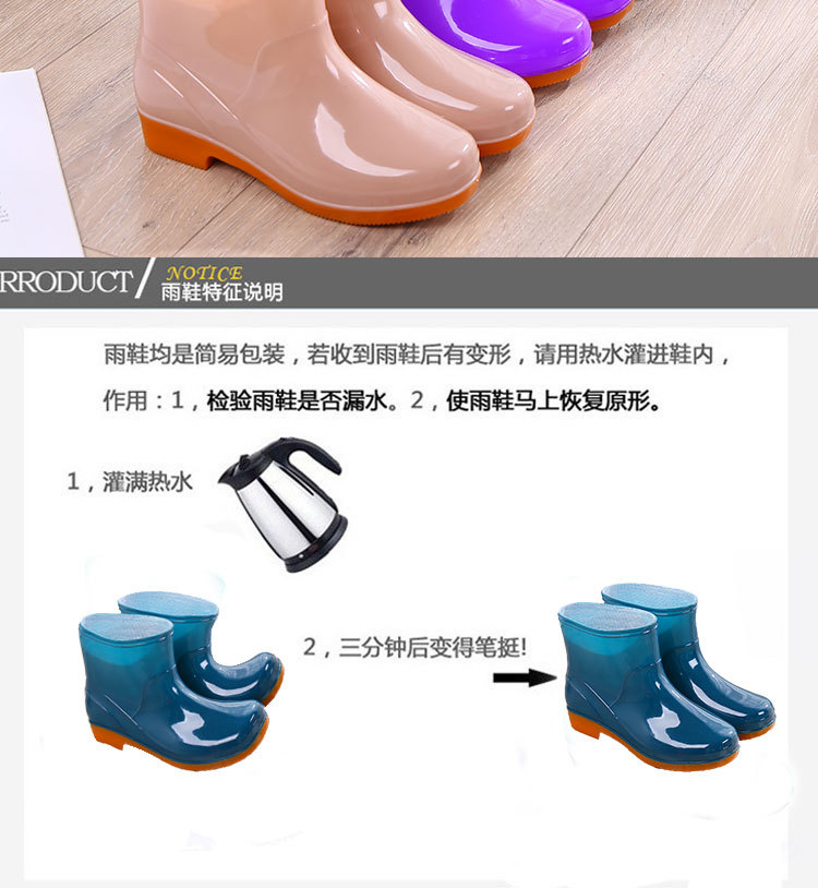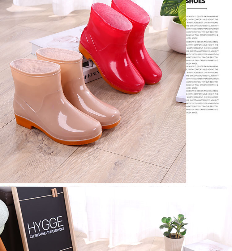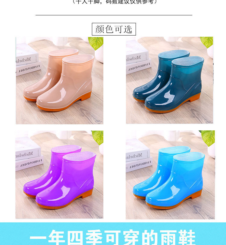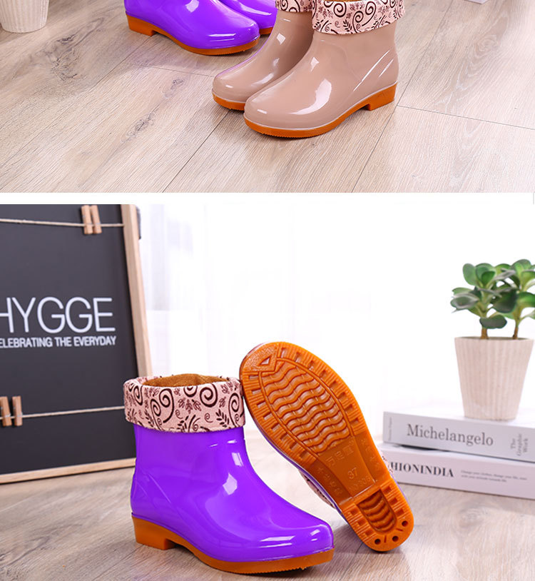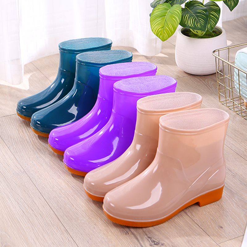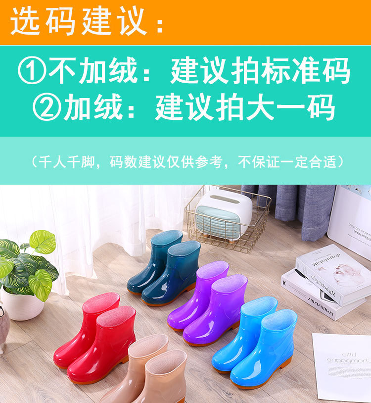 패션 짧은 튜브 레인 슈즈 여성의 성인 야외 미끄럼 방지 따뜻한 비 부츠 부드러운 바닥 방수 신발 작업 고무 신발 오버 슈즈 도매
