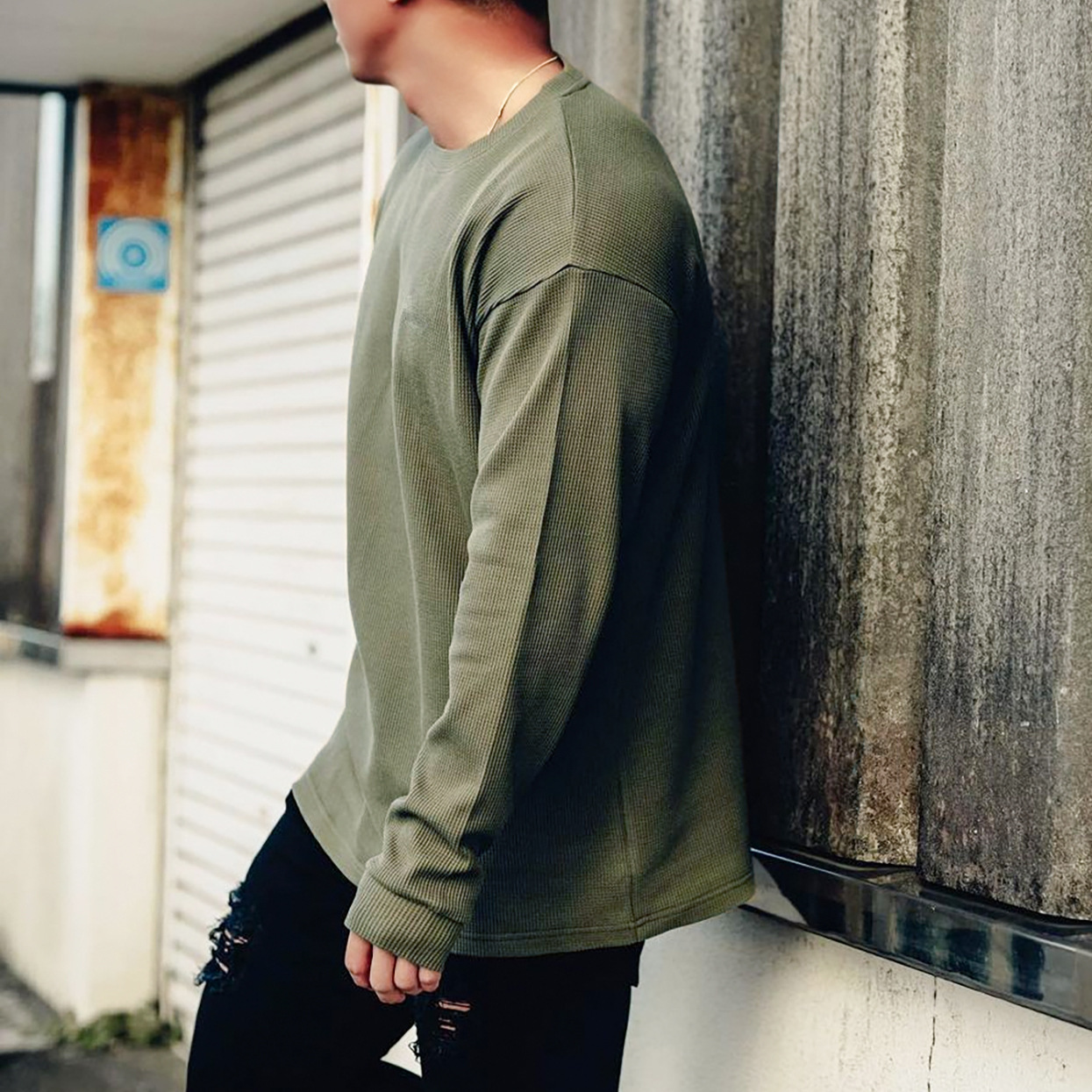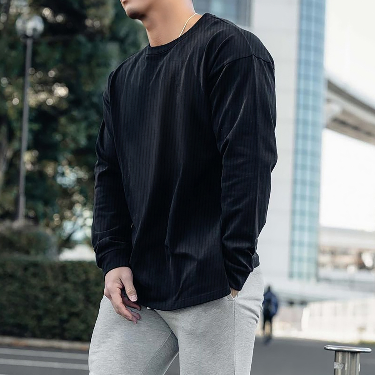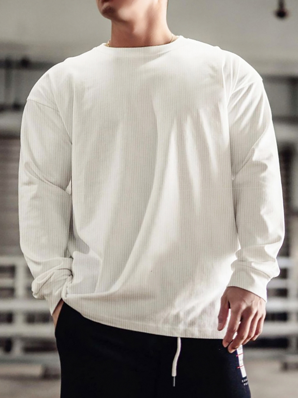 새로운 가을 피트니스 단색 스포츠 긴팔 티셔츠 남성용 느슨한 어깨 달리기 스포츠 레저 와플 농구 유행