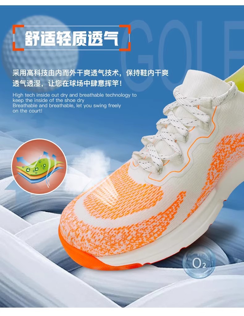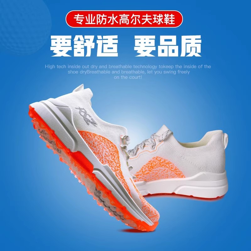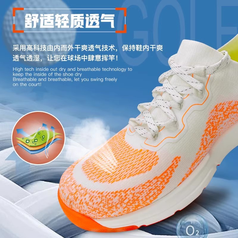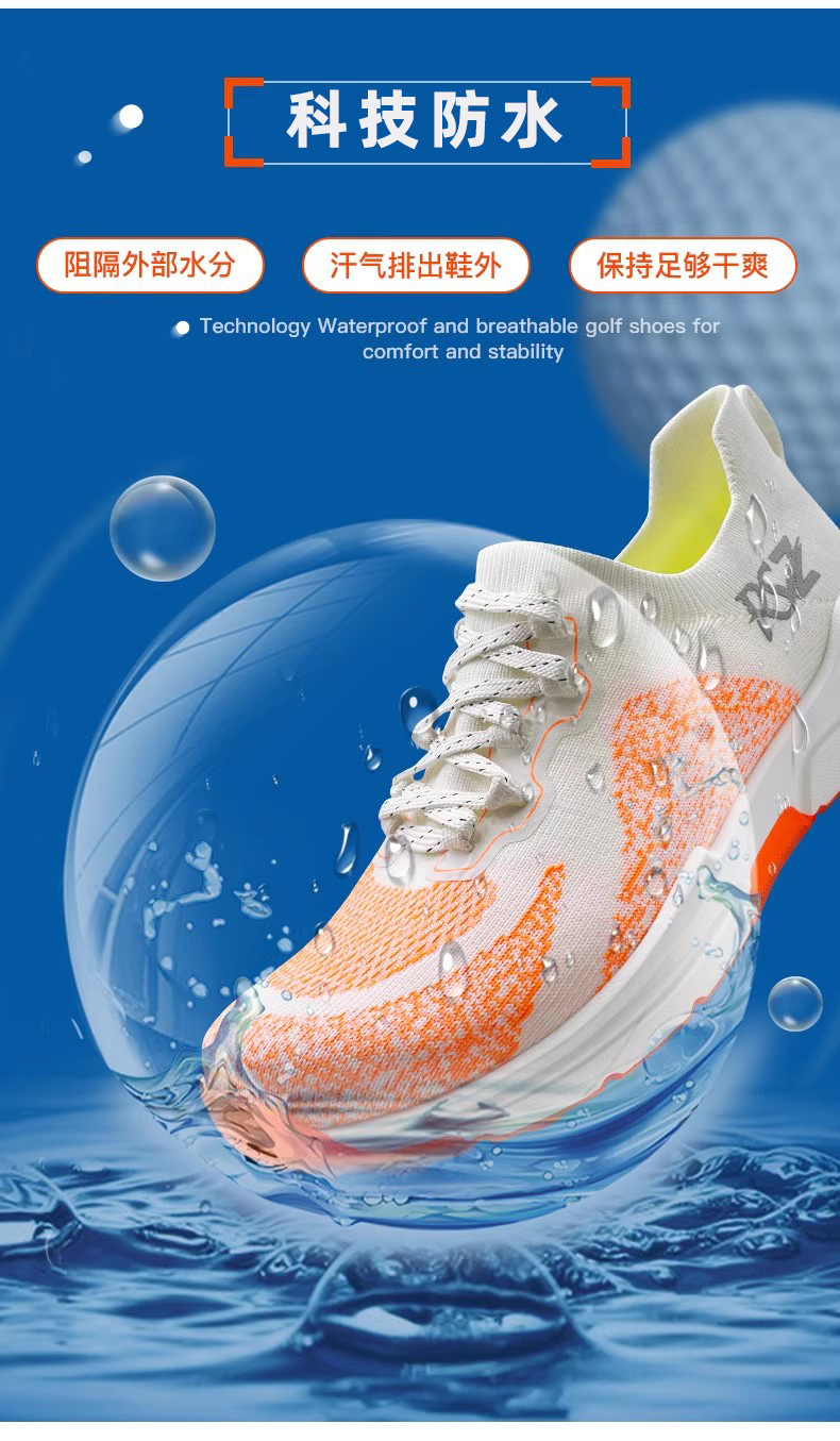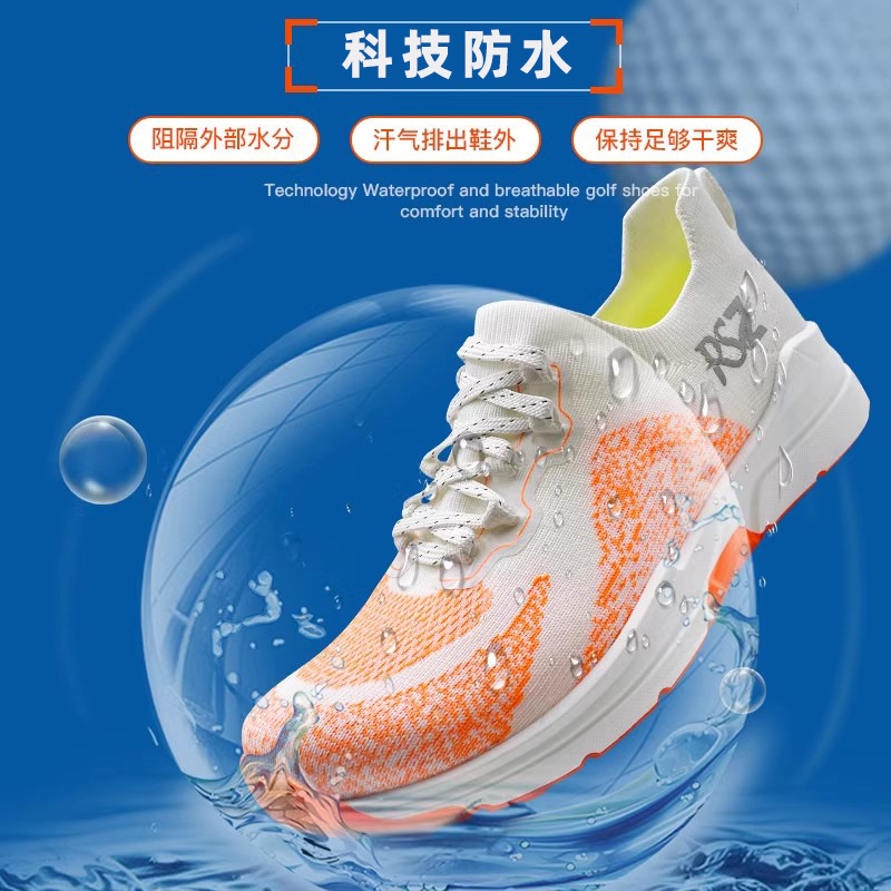 Runshengze 컬러 매칭 방수 골프 신발 편안한 통기성 플라이 짠 운동화 미끄럼 방지 내마모성 고조 캐주얼 신발
