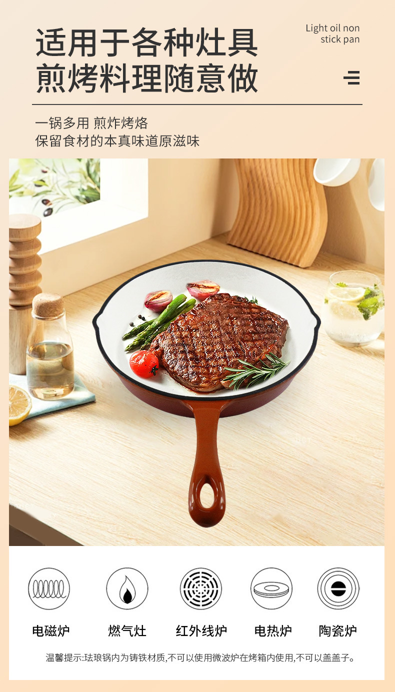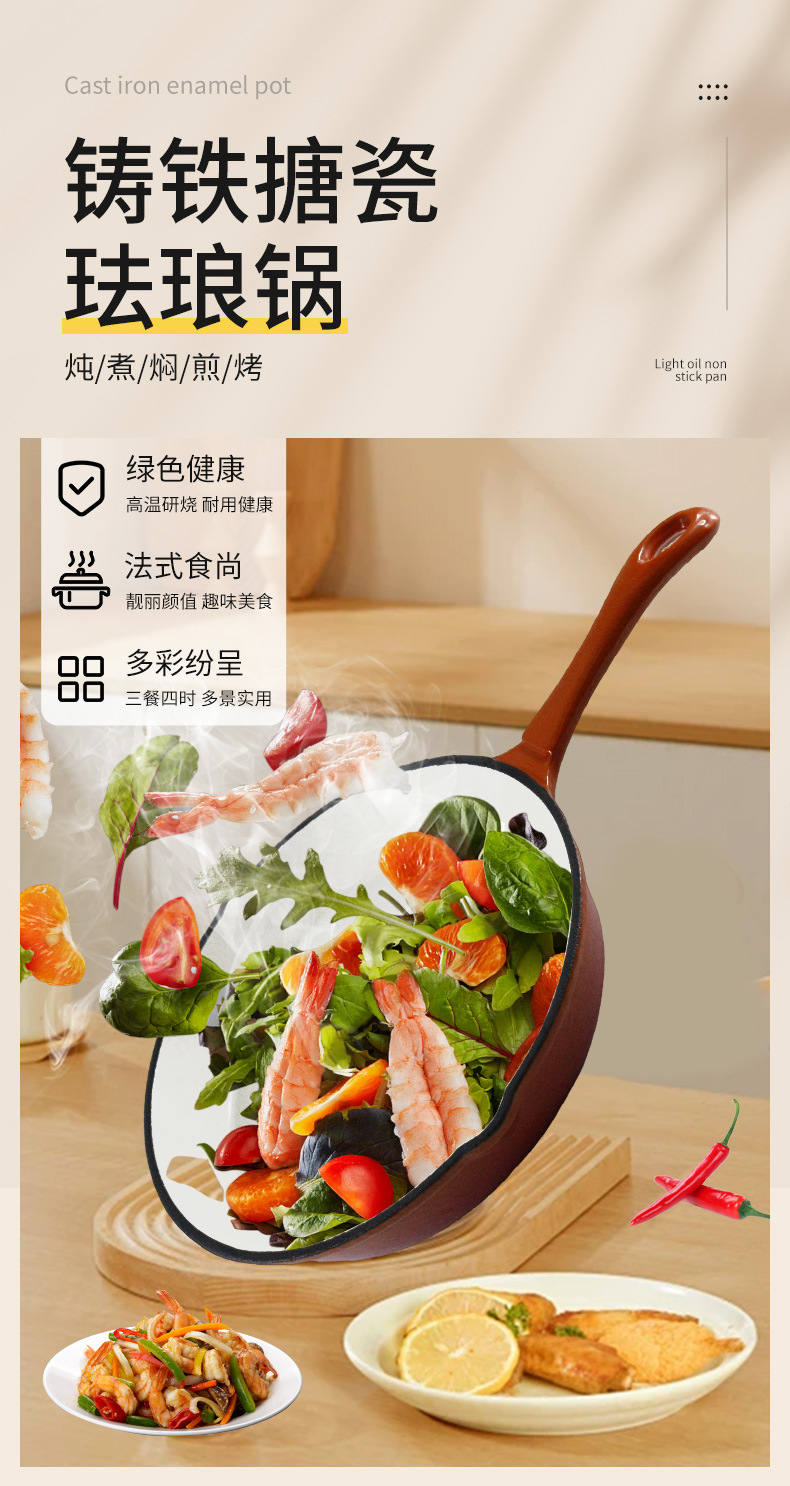 대외 무역 수출용 주철 에나멜 냄비 두꺼운 에나멜 프라이팬 스테이크 프라이팬 가정용 무코팅 논스틱 팬 도매