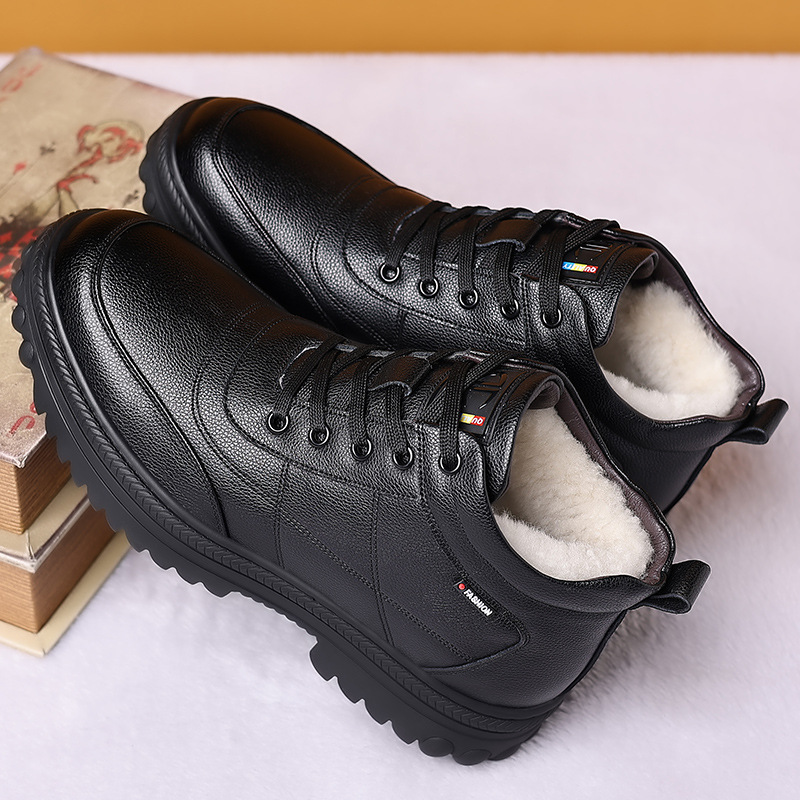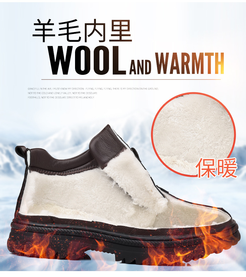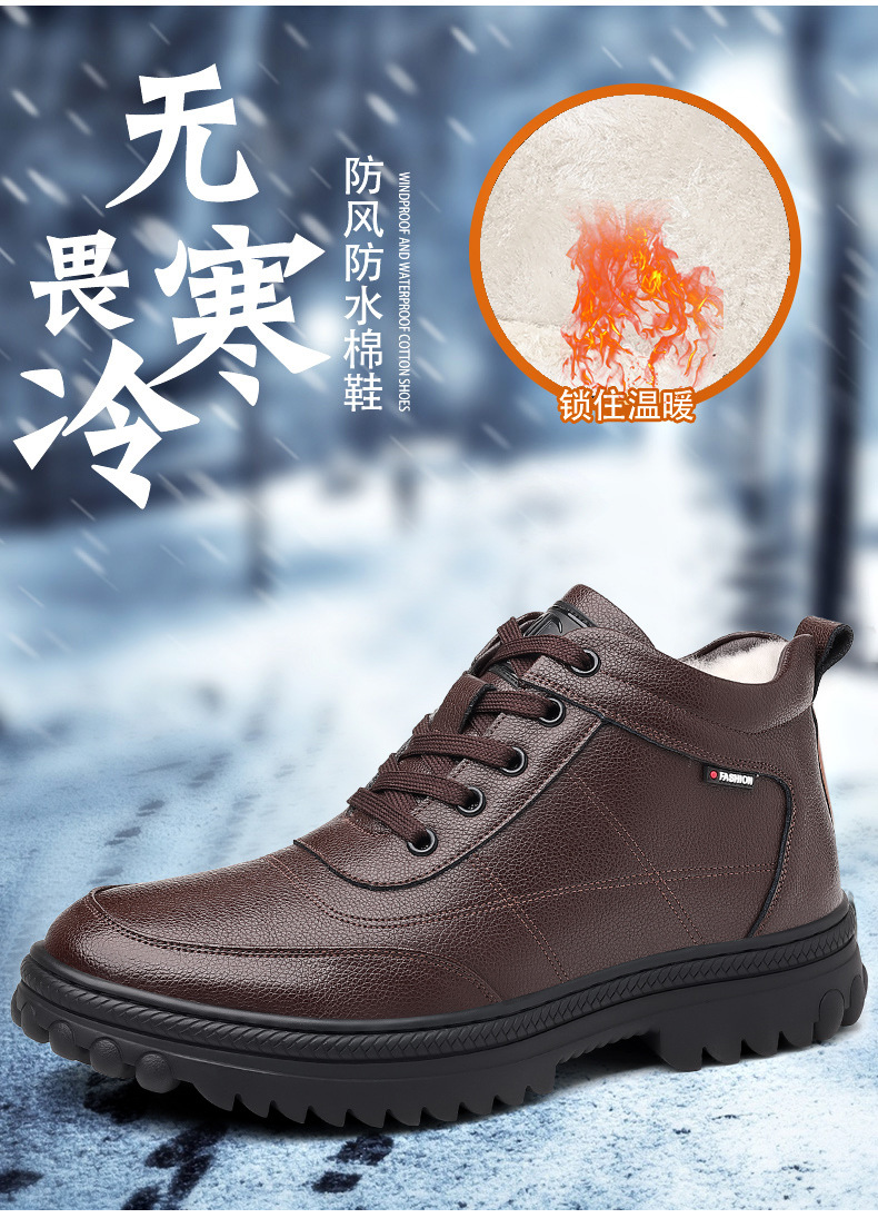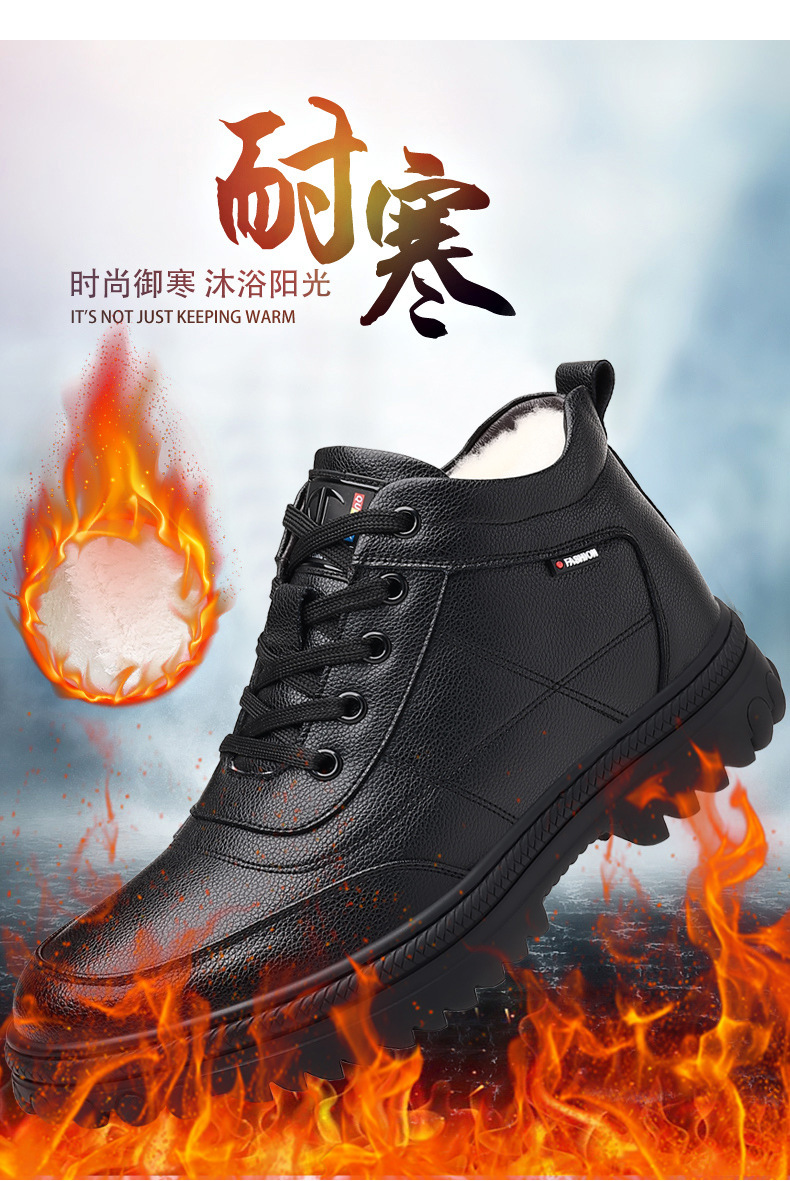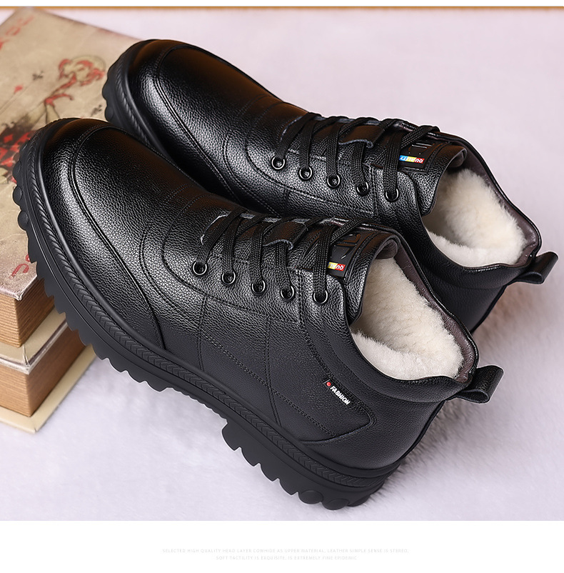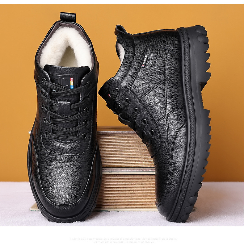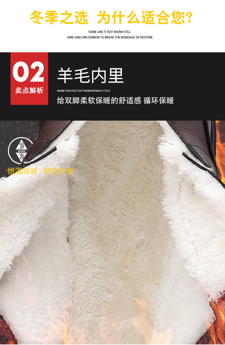 남자의 스노우 부츠 겨울 따뜻한 기모 두꺼운 면 신발 가죽 울 미끄럼 방지 대형 면 가죽 신발 미드 탑 가죽 부츠 트렌디