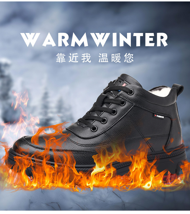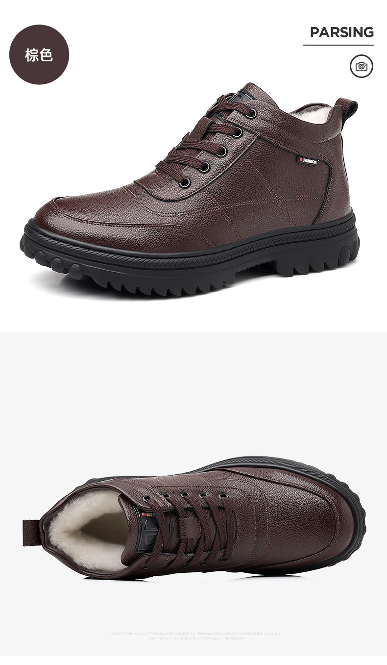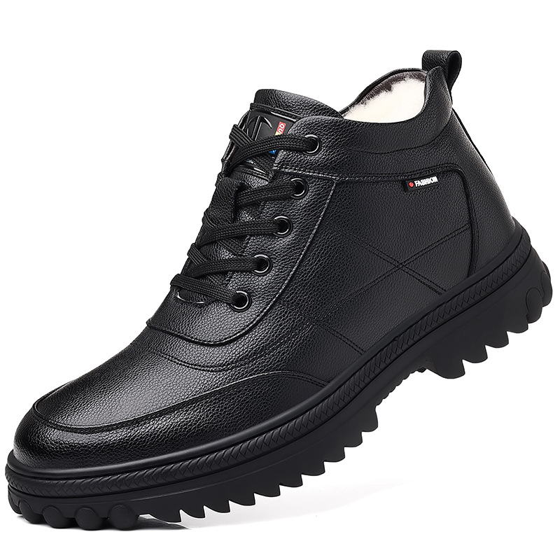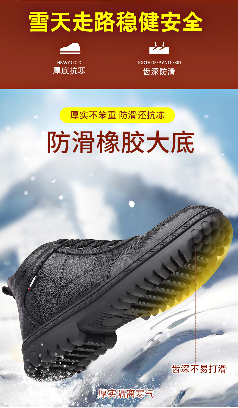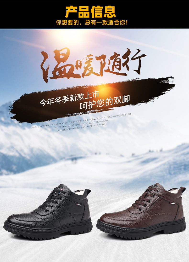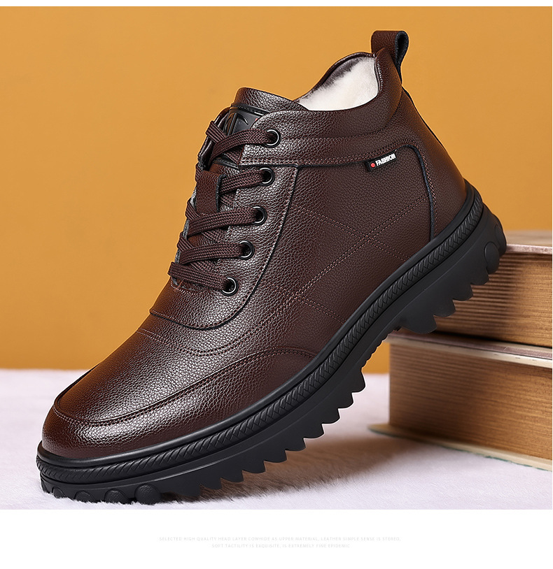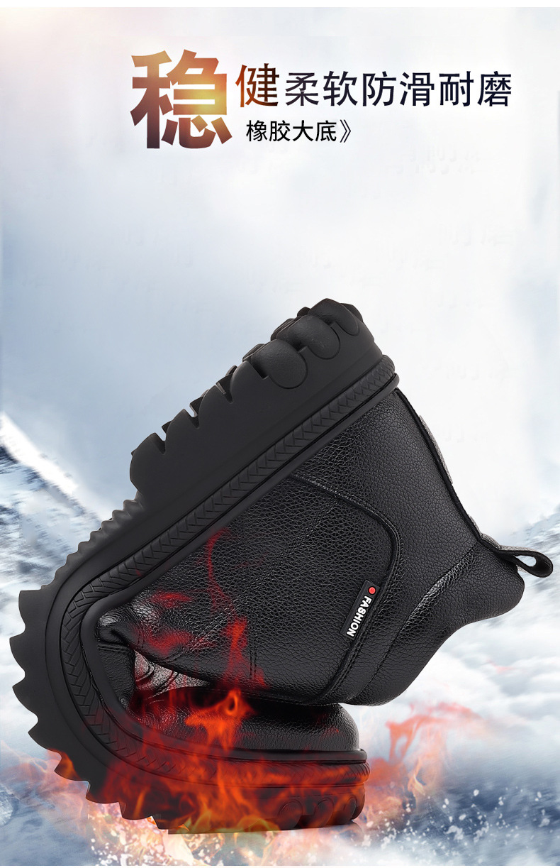 남자의 스노우 부츠 겨울 따뜻한 기모 두꺼운 면 신발 가죽 울 미끄럼 방지 대형 면 가죽 신발 미드 탑 가죽 부츠 트렌디