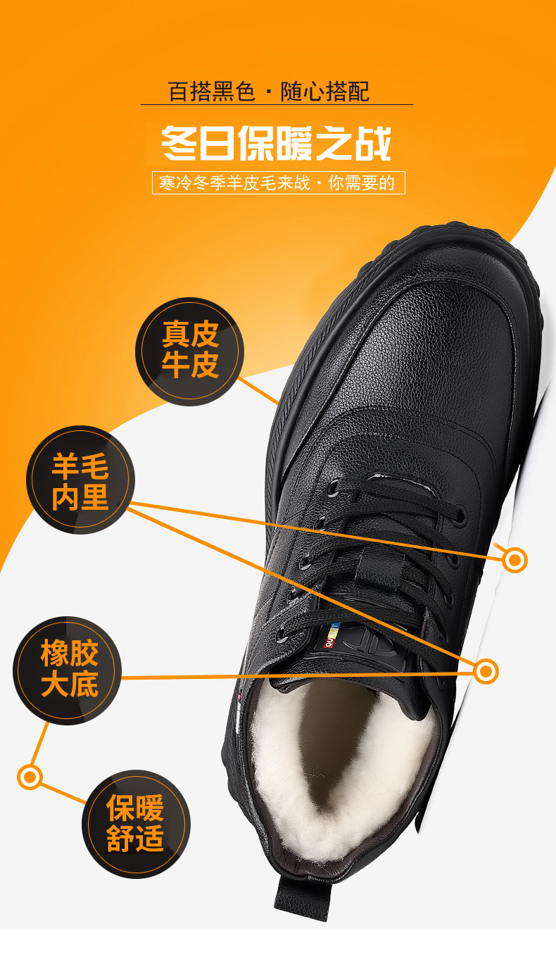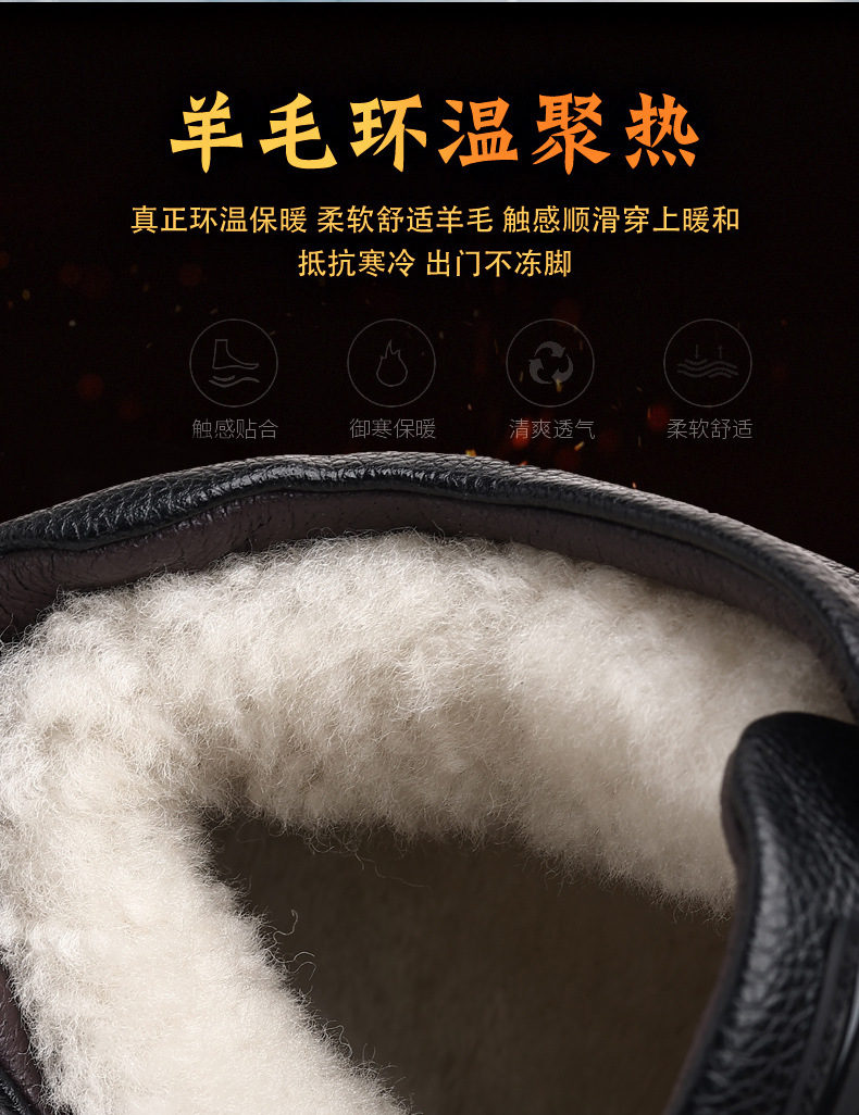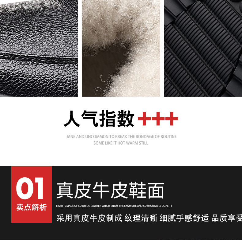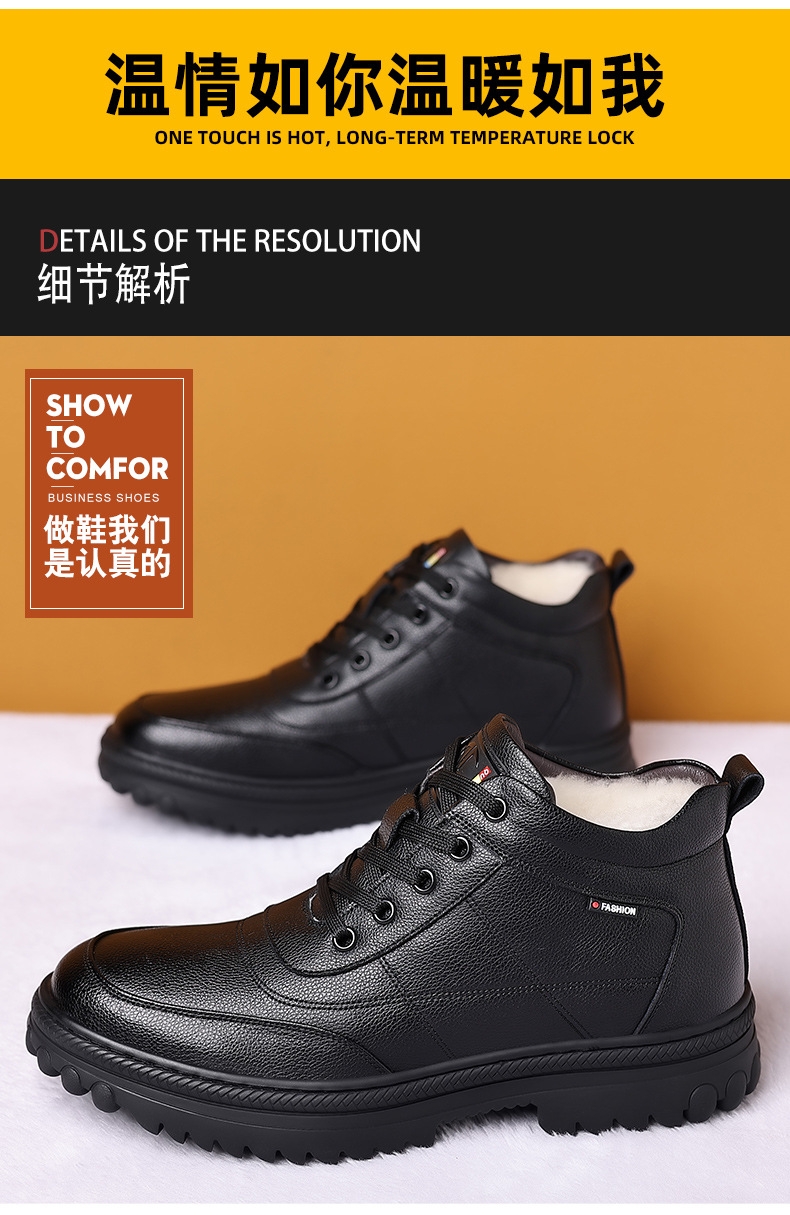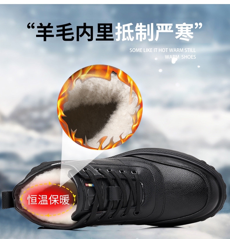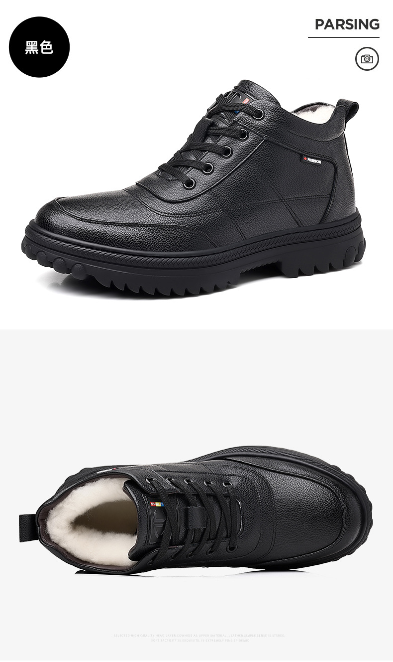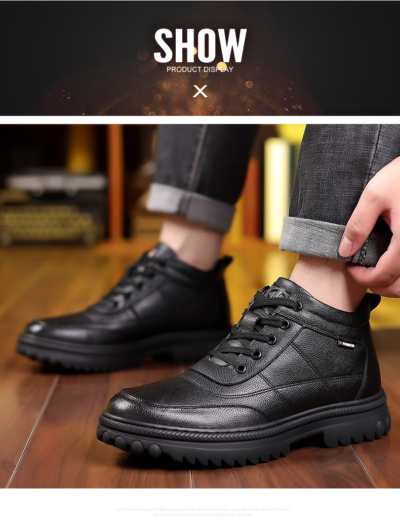 남자의 스노우 부츠 겨울 따뜻한 기모 두꺼운 면 신발 가죽 울 미끄럼 방지 대형 면 가죽 신발 미드 탑 가죽 부츠 트렌디