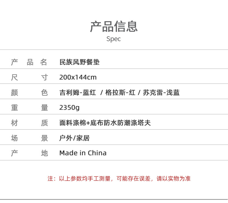产品名称:民族风野餐垫