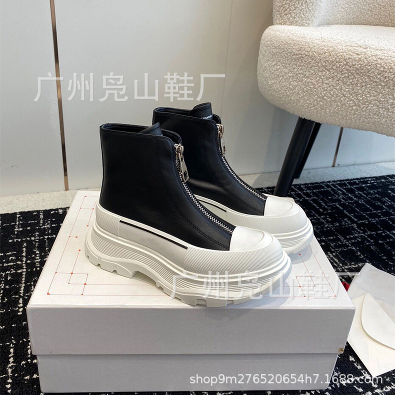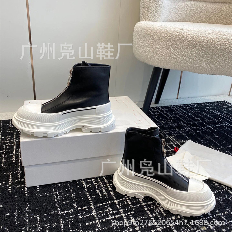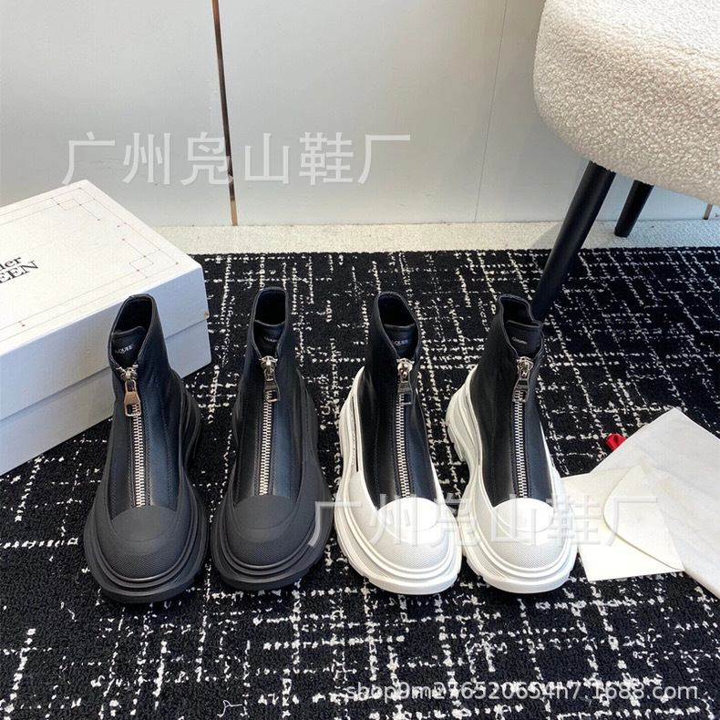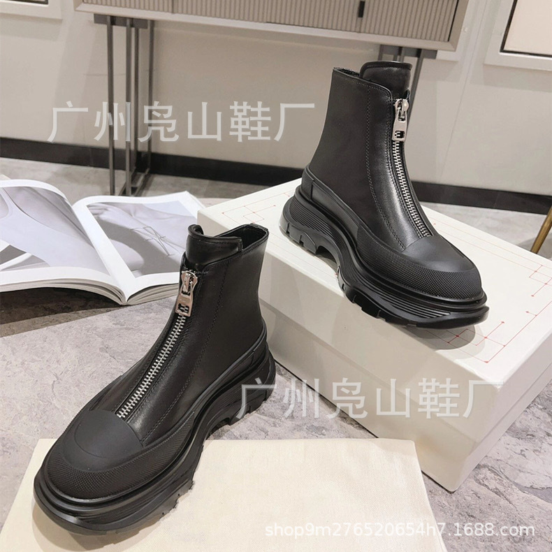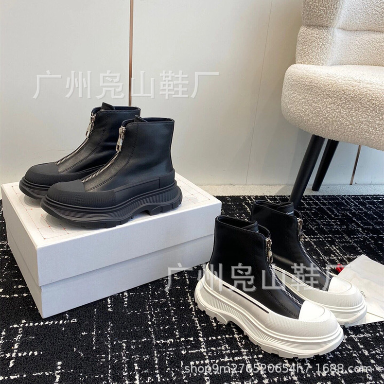McQueen 지퍼 프론트 앵클 부츠 여성용 2023 가을과 겨울 영국 스타일 앵클 슈즈 컬러 스플릿 플랫폼 하이솔 마틴 부츠