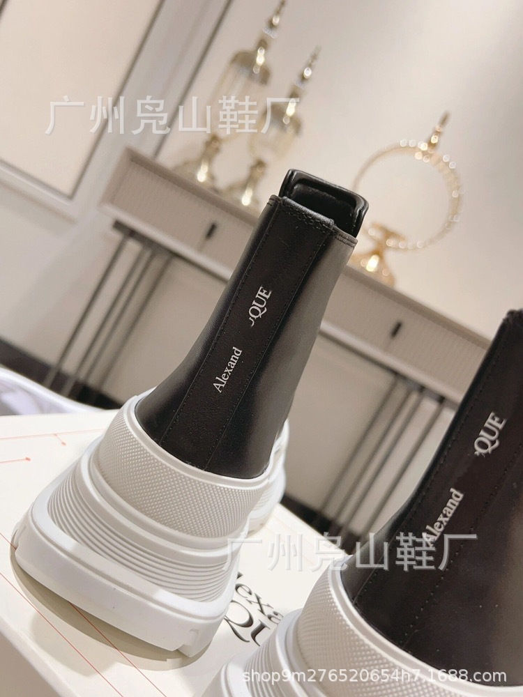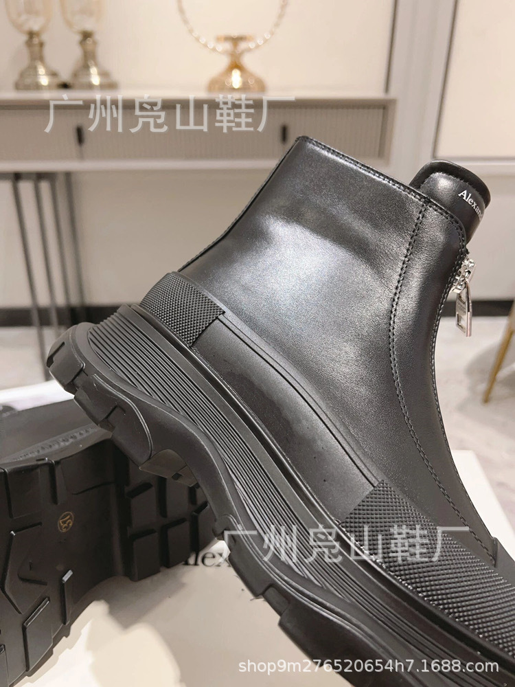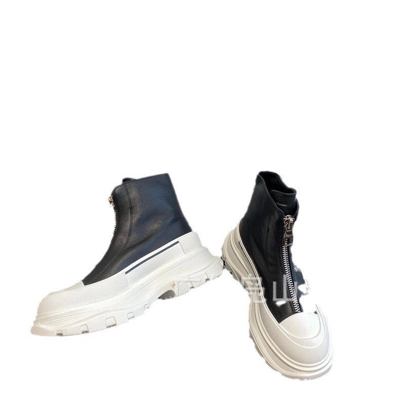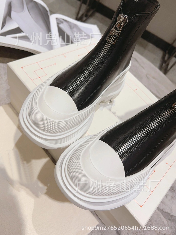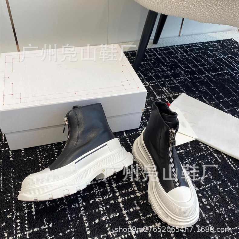 McQueen 지퍼 프론트 앵클 부츠 여성용 2023 가을과 겨울 영국 스타일 앵클 슈즈 컬러 스플릿 플랫폼 하이솔 마틴 부츠
