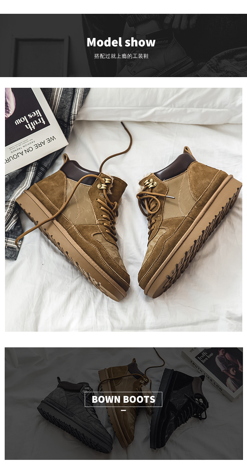 3120 가을과 겨울 툴링 기모 모피 통합 스노우 부츠 증가 부드러운 바닥 남성 면화 신발 모든 일치 캐주얼 신발