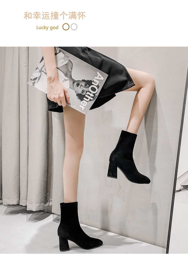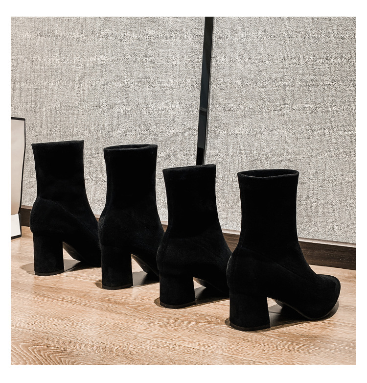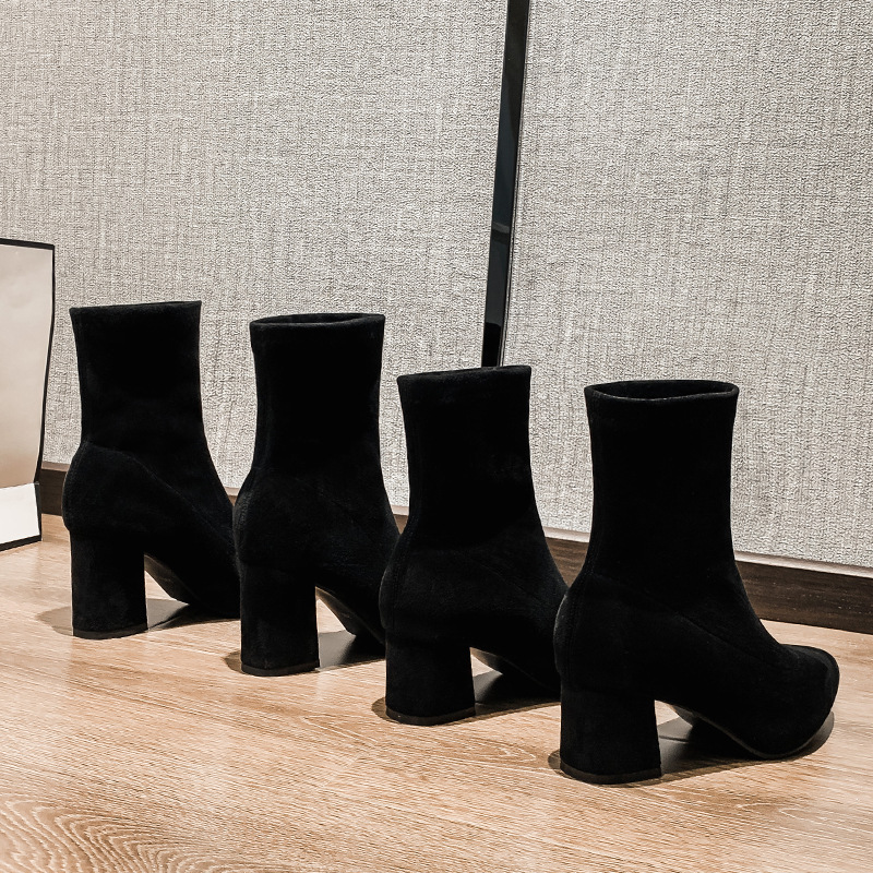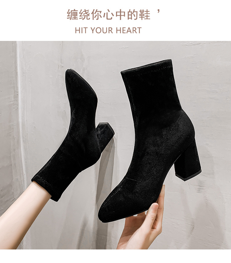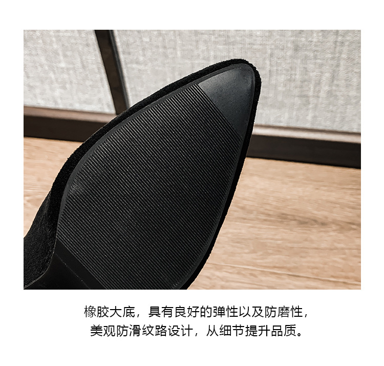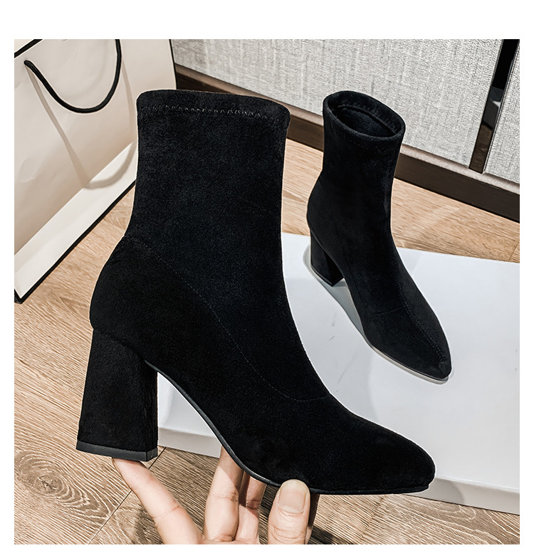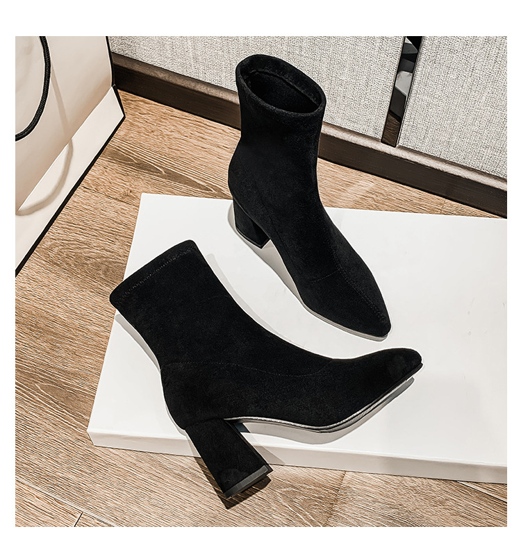 슬림핏 여성용 영국풍 탄력 양말 부츠 2026 신상 가을 겨울 플러스 벨벳 솜덧신 하이힐 뾰족코 숏부츠 마틴부츠