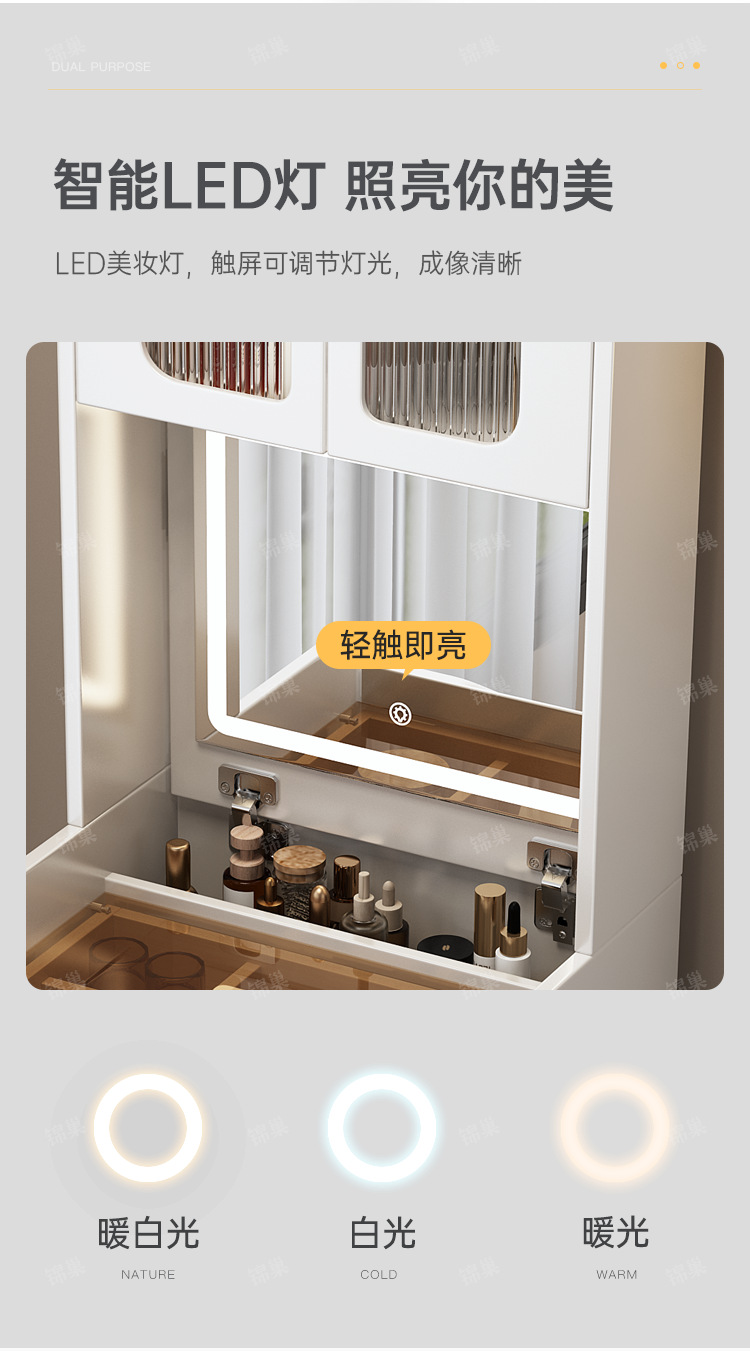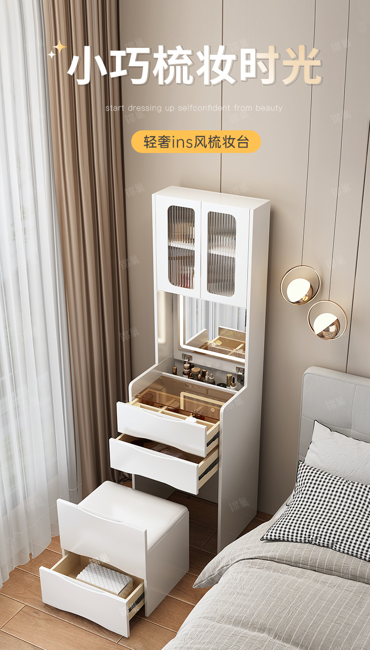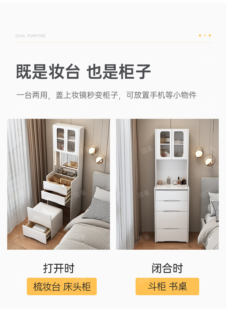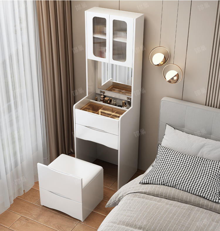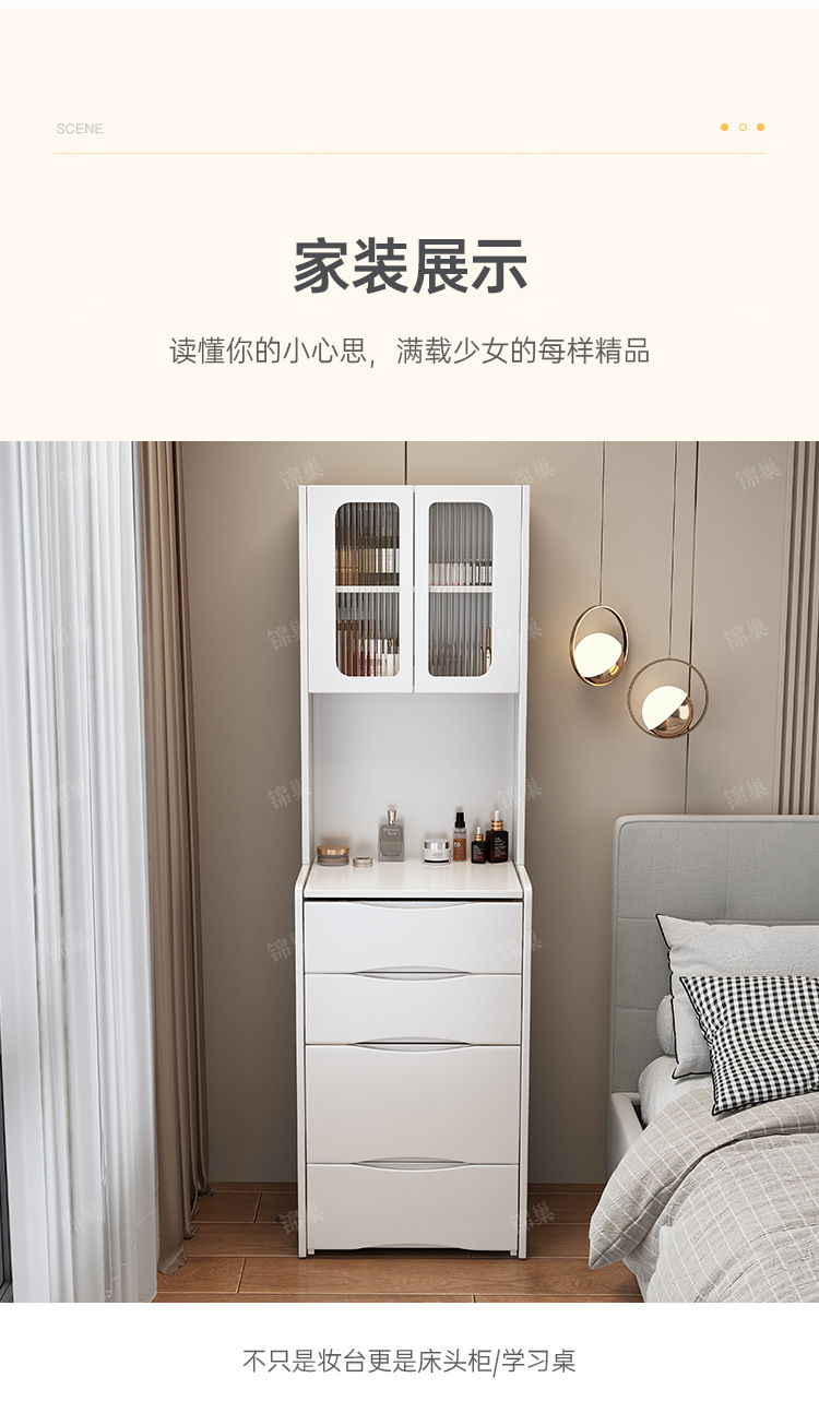 크림 스타일 화장대 현대 간단한 침실 플립 작은 아파트 수납 캐비닛 통합 상단 캐비닛 침대 옆 캐비닛 메이크업