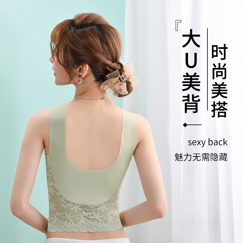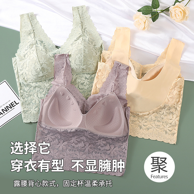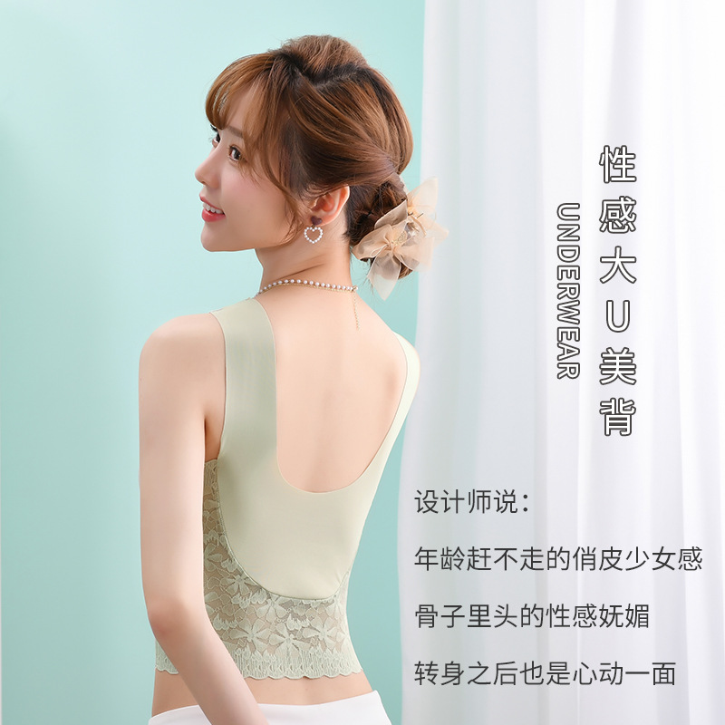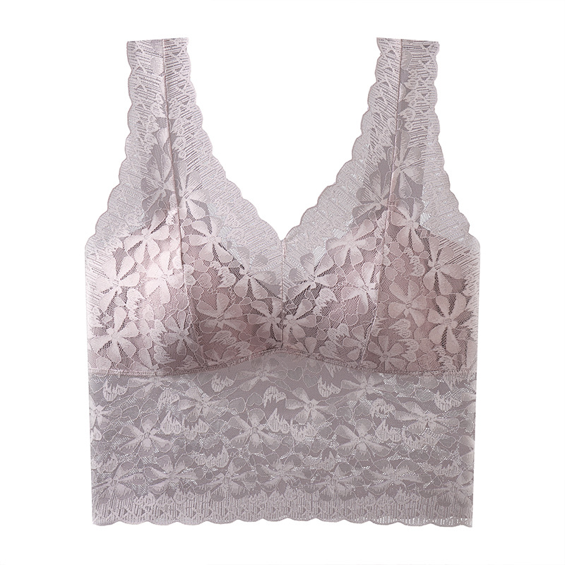 아름다운 뒤 얼음 실크 원활한 속옷 여자의 플러스 사이즈 푸시 업 가슴 랩 레이스 긴 섹시한 조끼 스타일 브래지어 얇은 튜브 탑