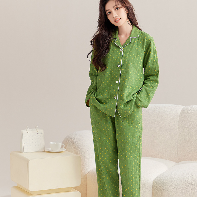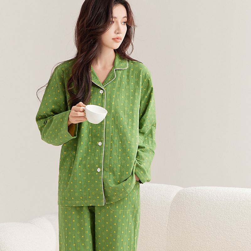 일본식 무지 면 2 층 원사 가정 옷 좋은 잠옷 순면 가정 옷 여자의 사계절 세트