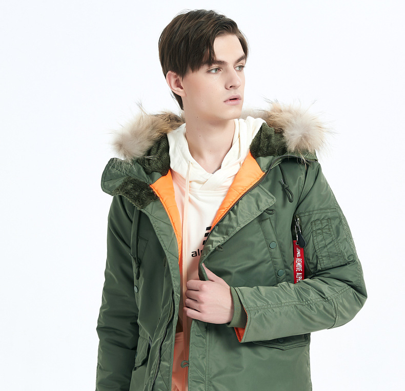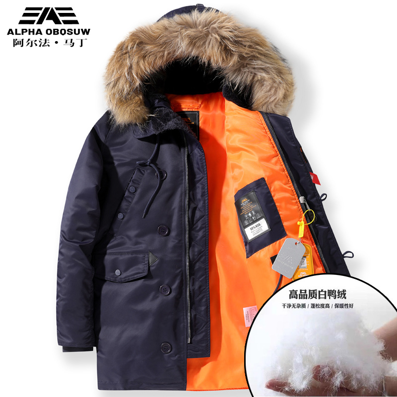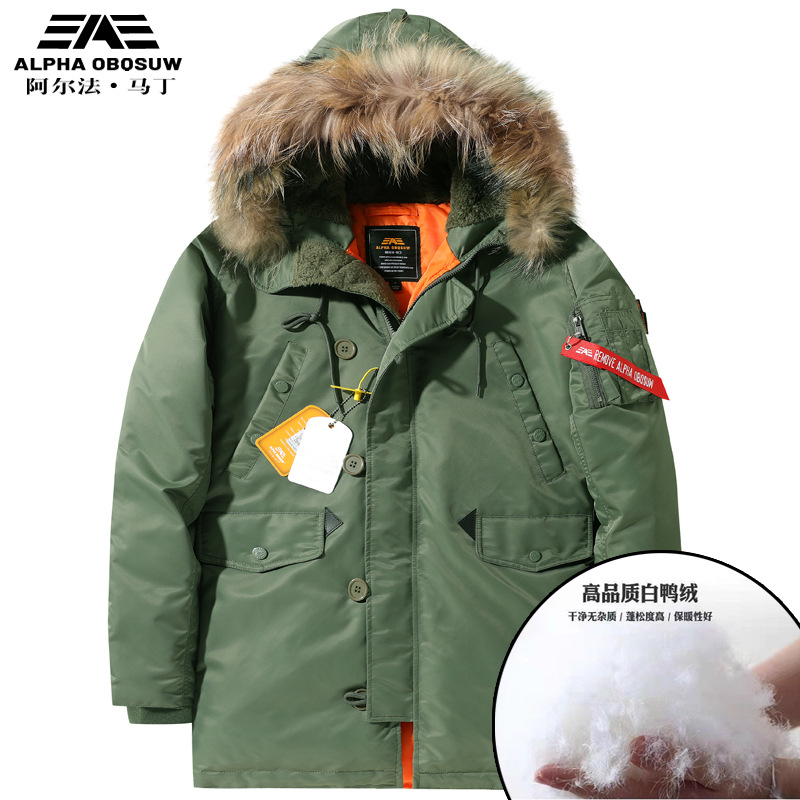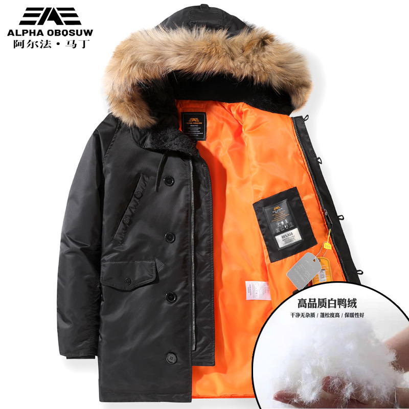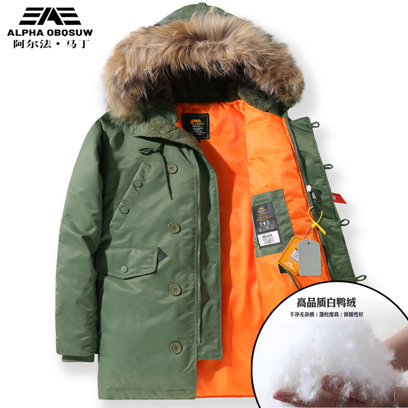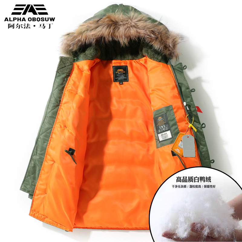 알파 마틴 N3B 다운 코트 따뜻한 화이트 덕 다운 재킷 남자 코트 중간 길이 코트 겨울