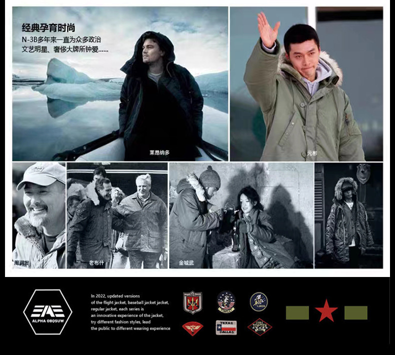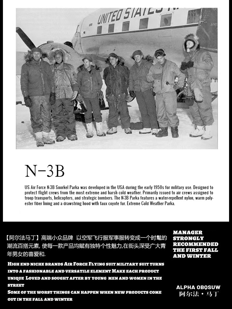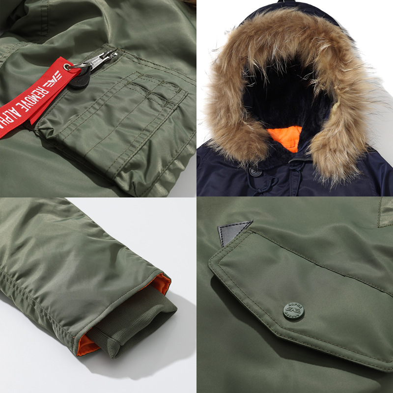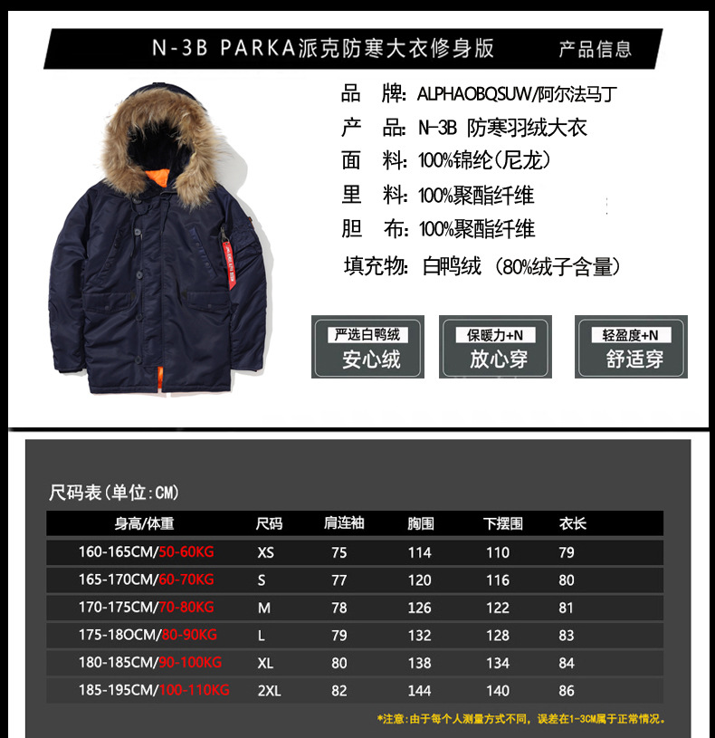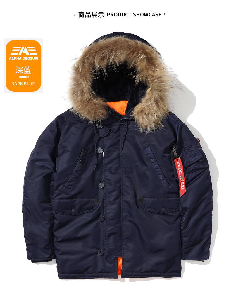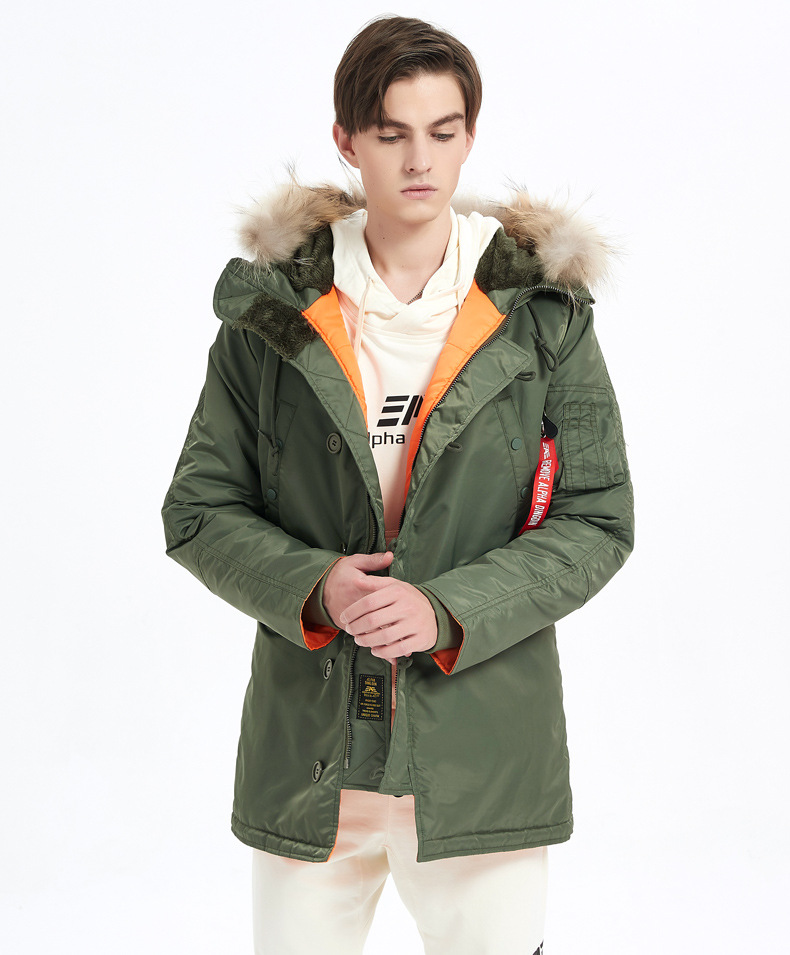 알파 마틴 N3B 다운 코트 따뜻한 화이트 덕 다운 재킷 남자 코트 중간 길이 코트 겨울