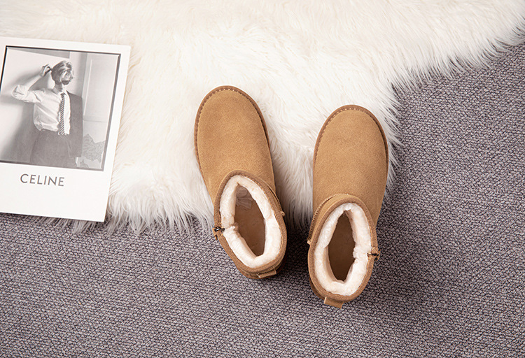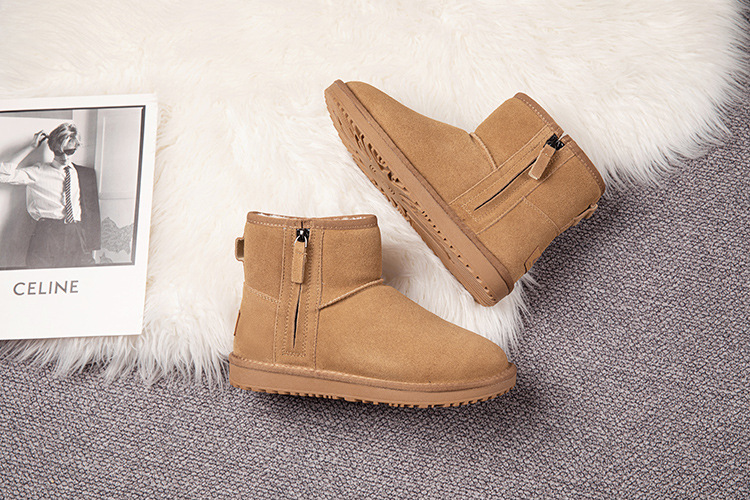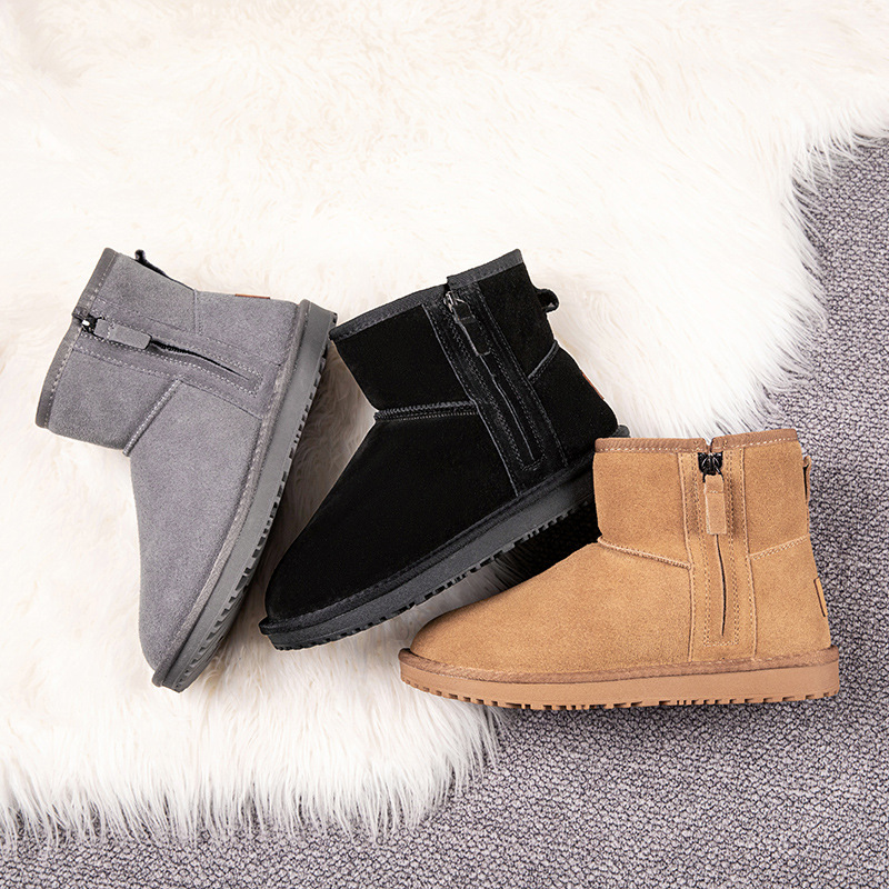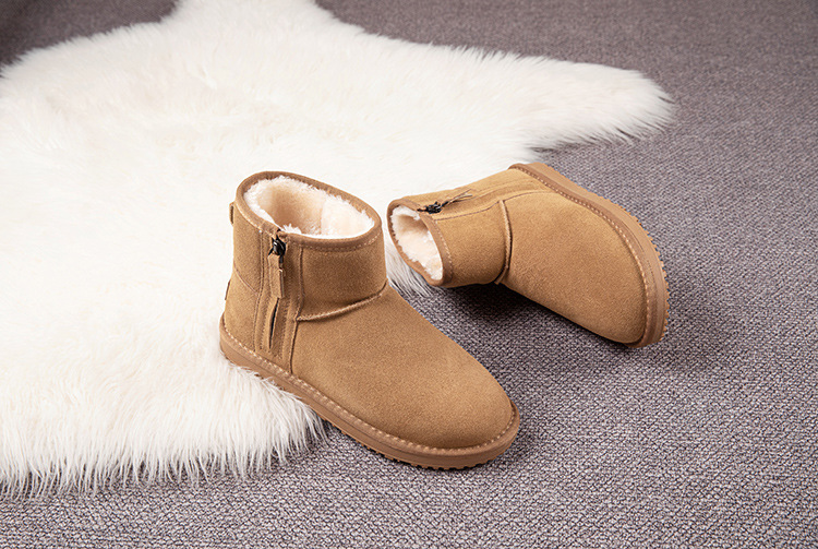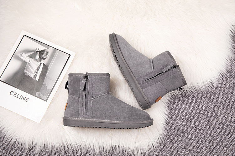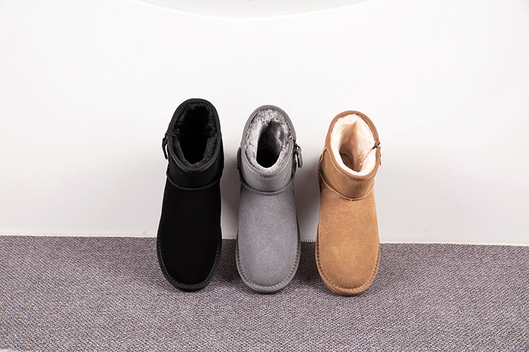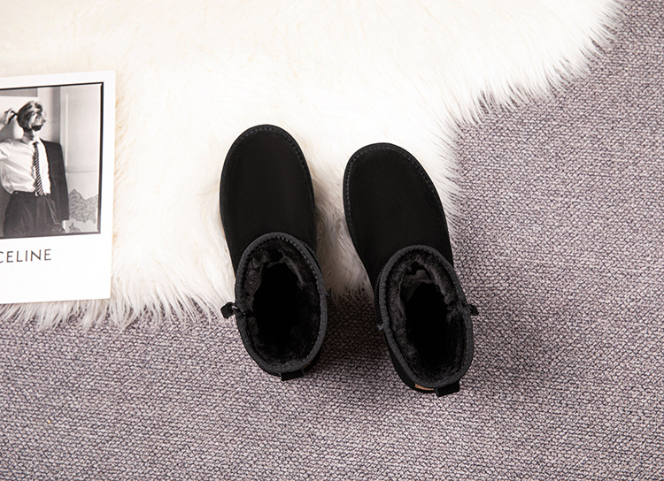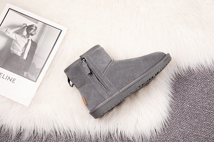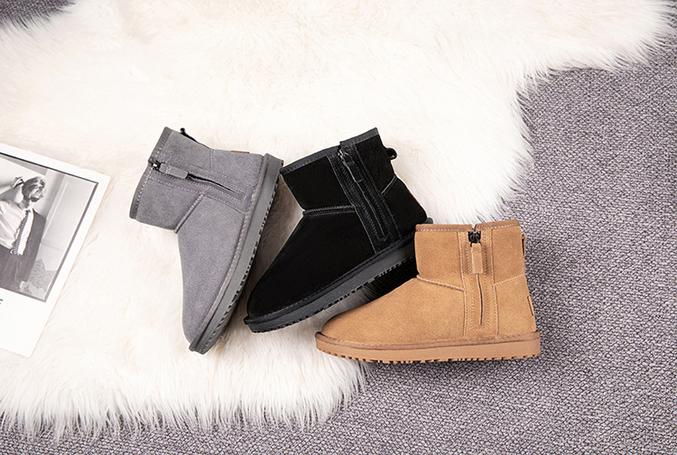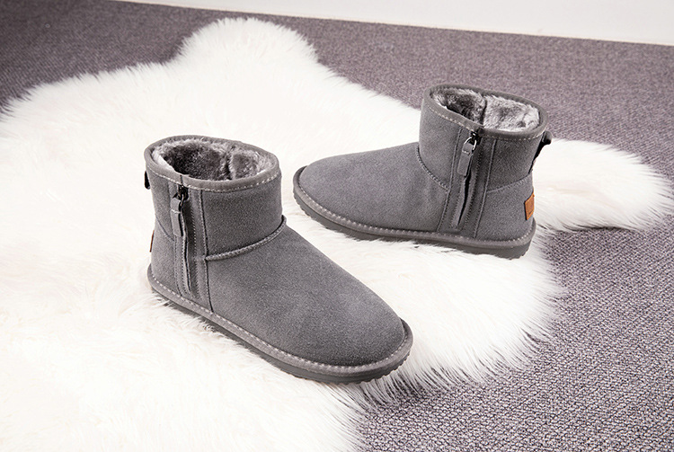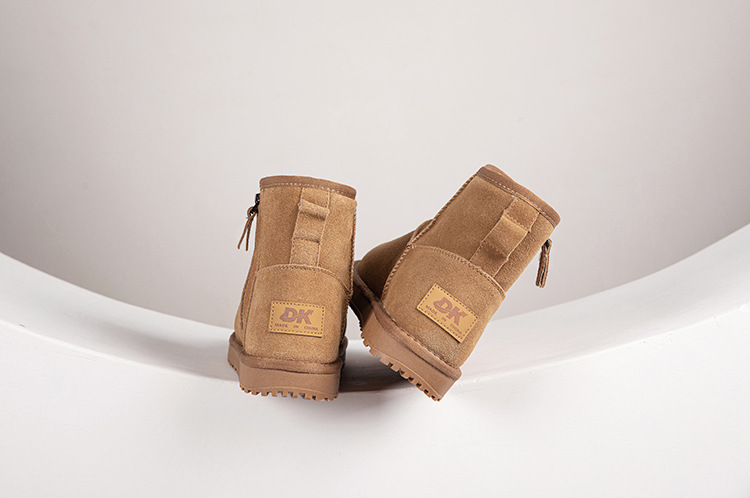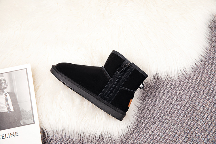 남성용 방한 보온 스노우 부츠, 미끄럼 방지, 2025년 신상 겨울 플러스 벨벳 하이탑 솜털 안감 플랫 솔 숏 부츠, 천연 가죽