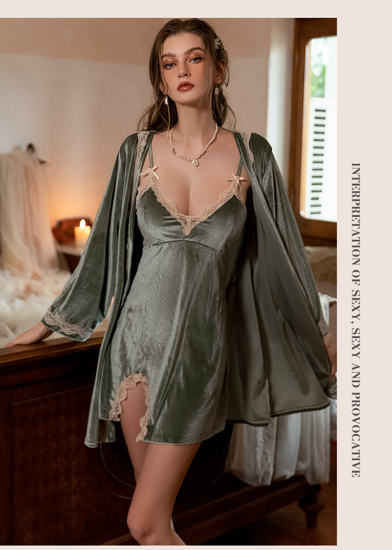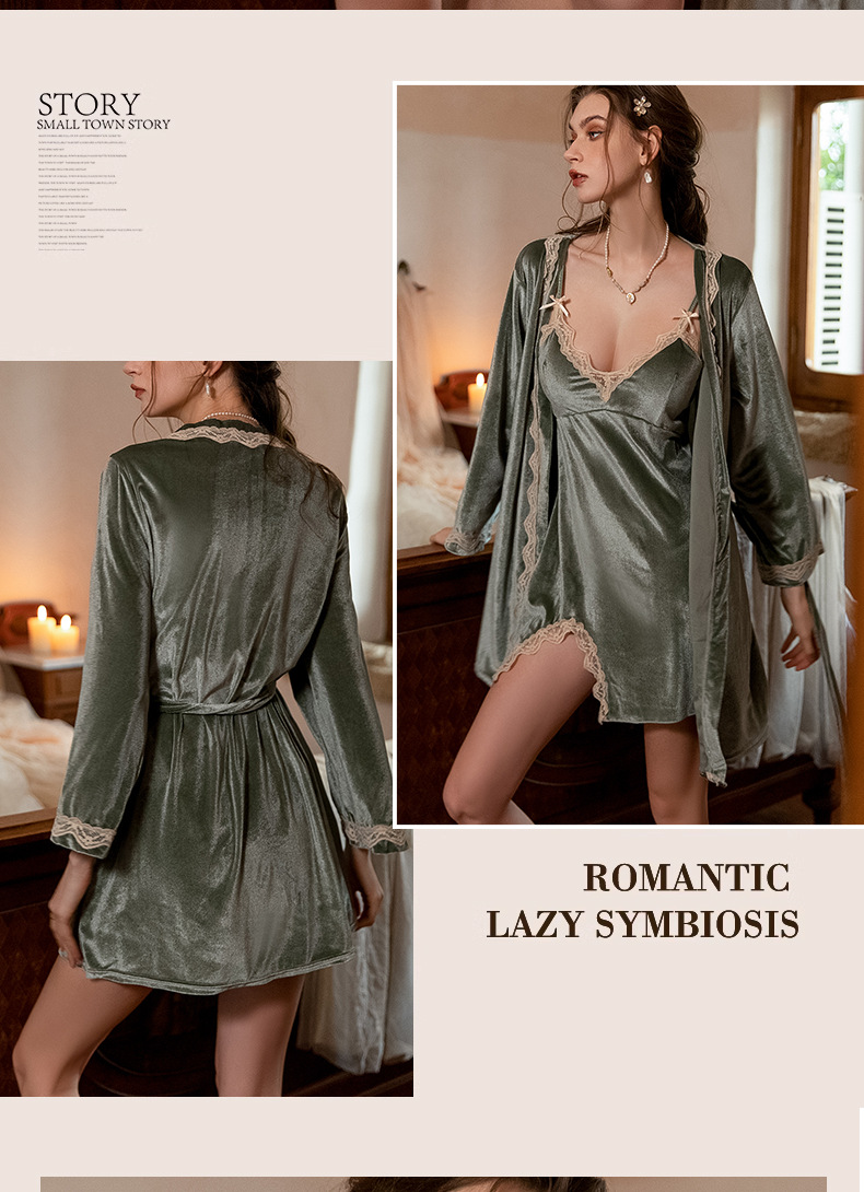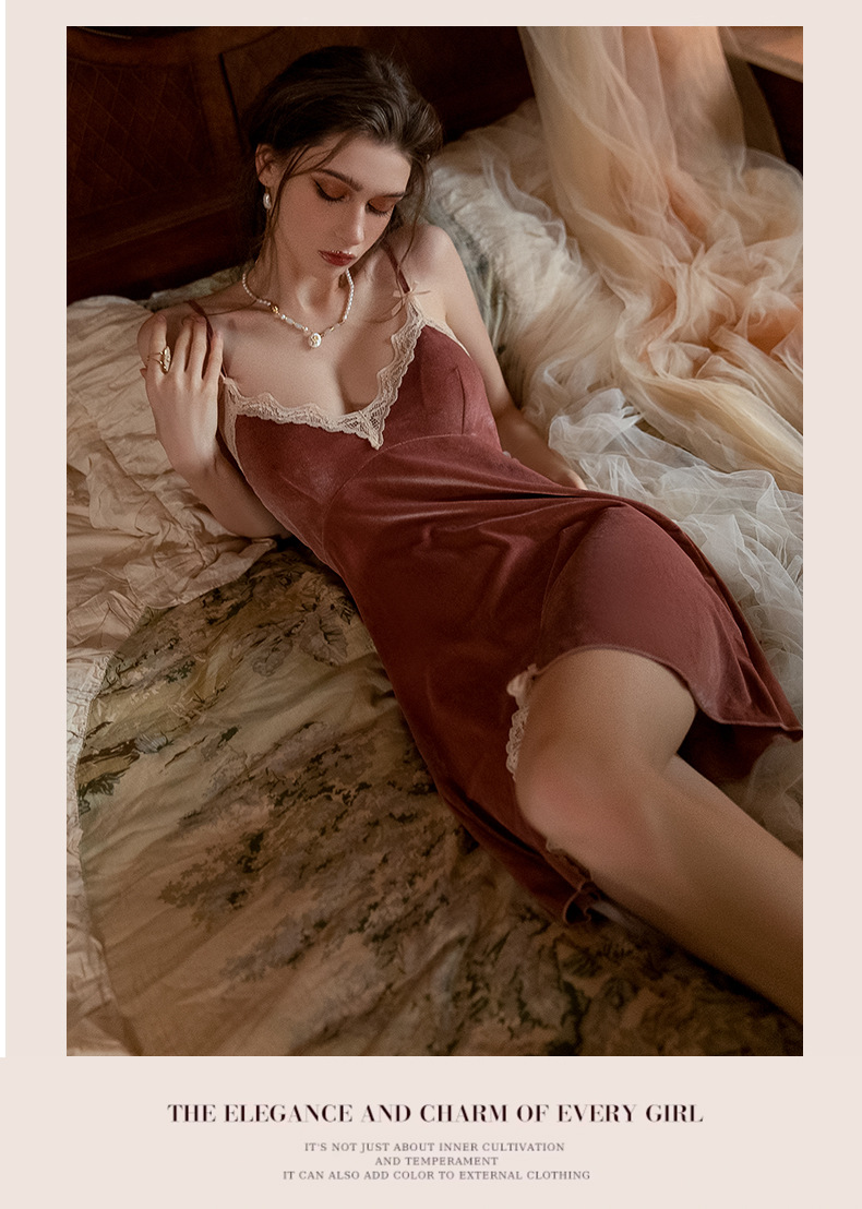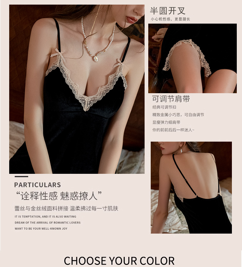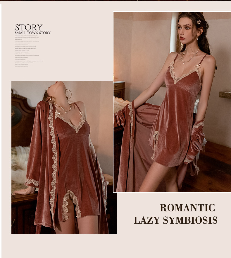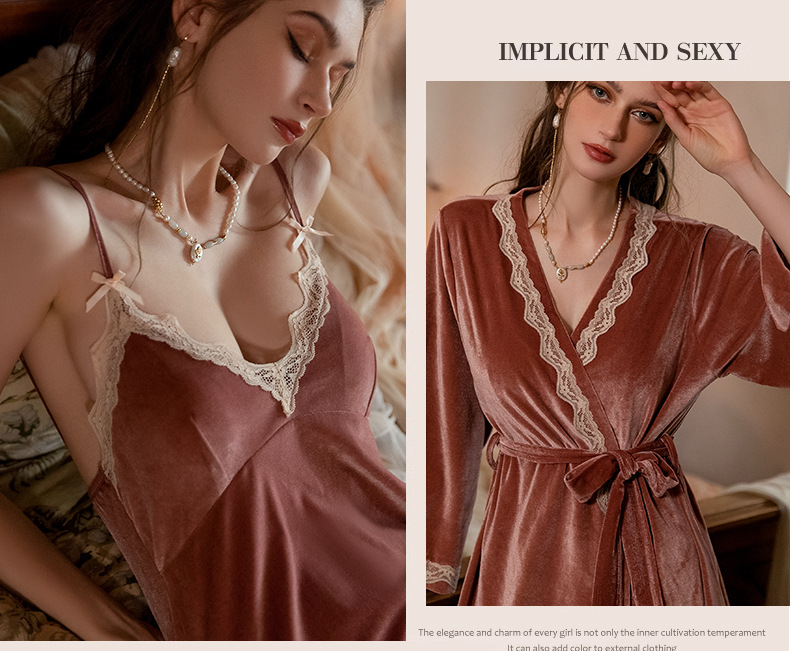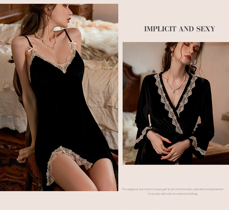 A6283 가을과 겨울 새로운 벨벳 섹시한 잠옷 가슴 패드 순수 요정 스타일 슬링 잠옷 가정 옷 세트