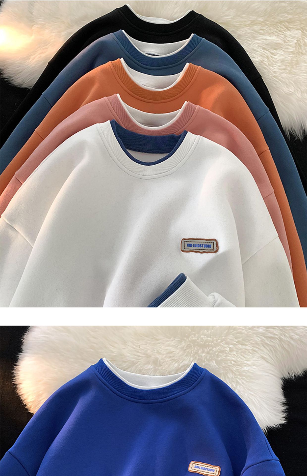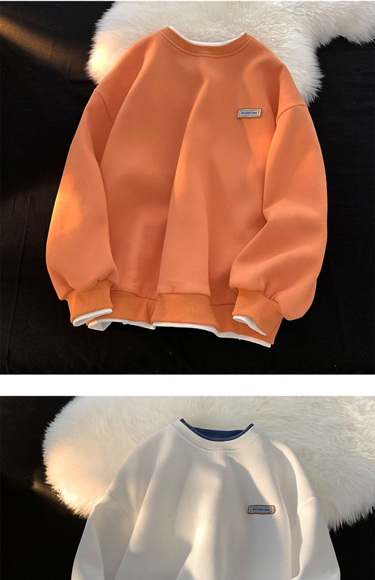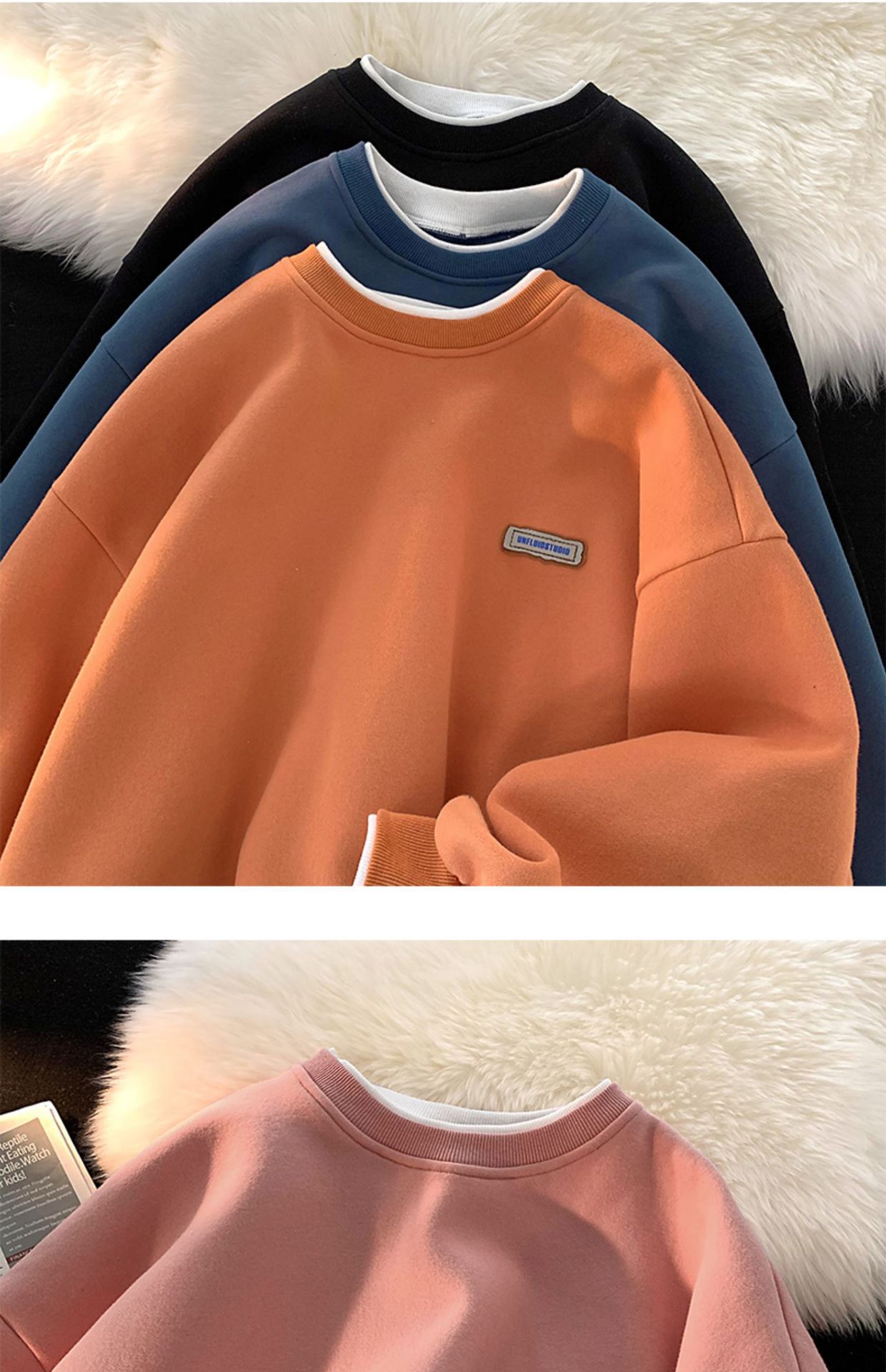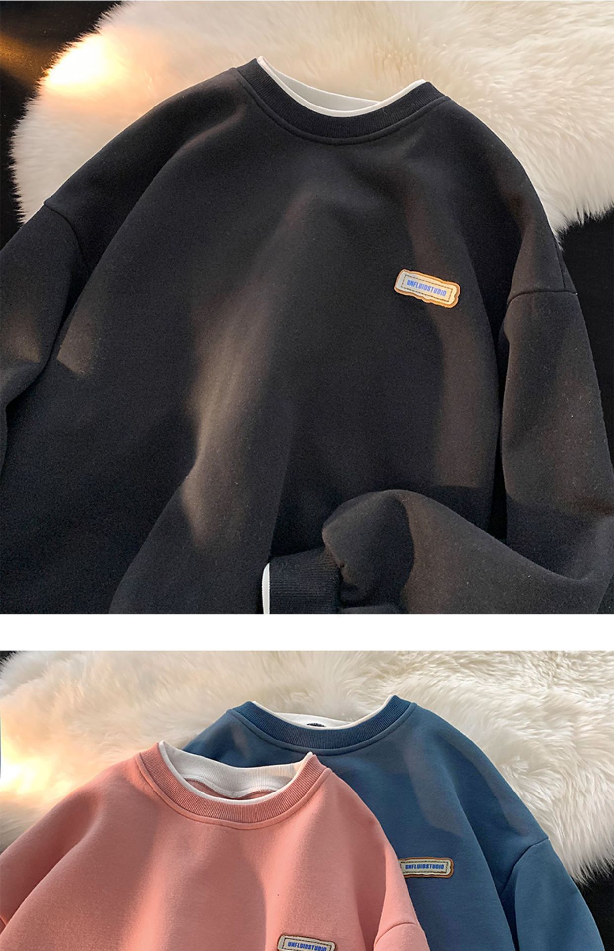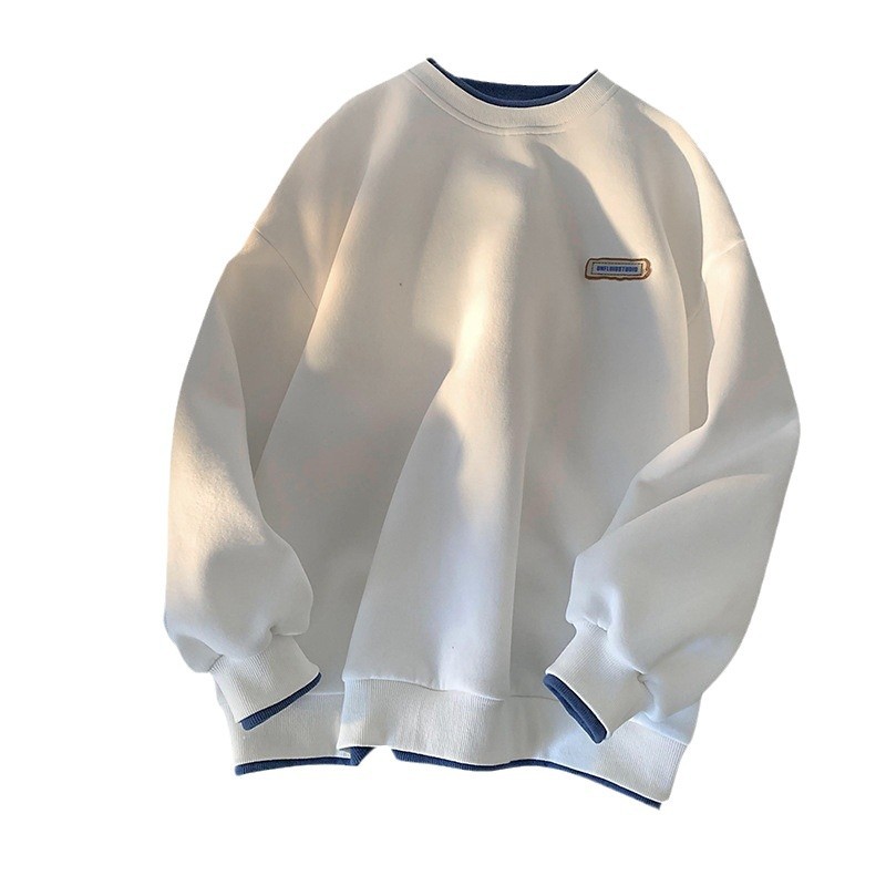 가을 크루넥 후디 남자의 in 홍콩 스타일 루즈한 플러스 사이즈 캐주얼 재킷 한국 유행 가짜 투피스 탑
