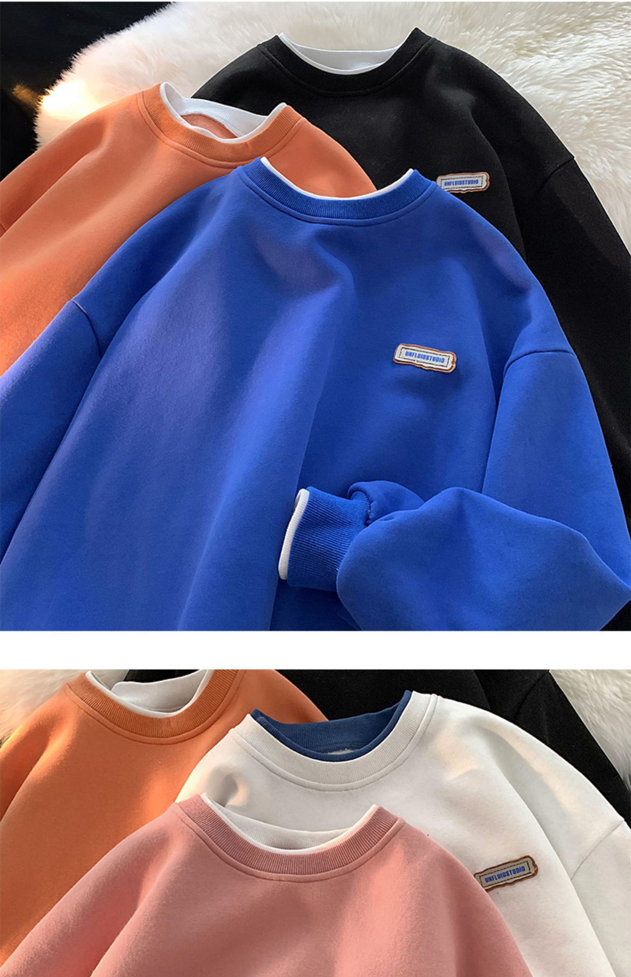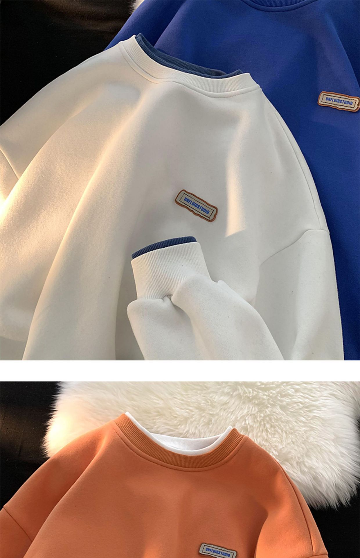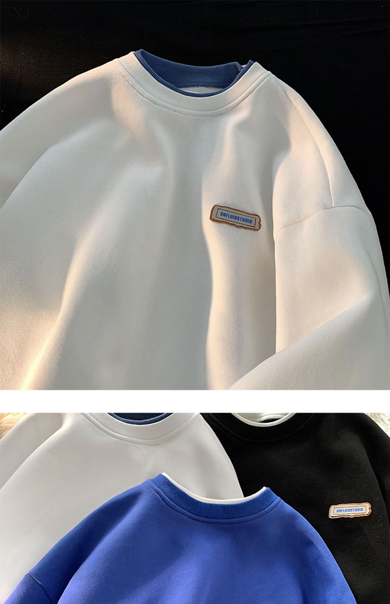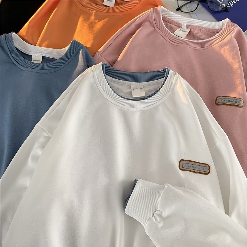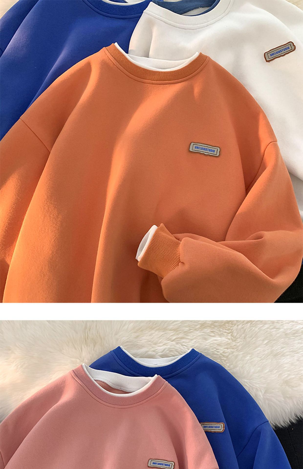 가을 크루넥 후디 남자의 in 홍콩 스타일 루즈한 플러스 사이즈 캐주얼 재킷 한국 유행 가짜 투피스 탑