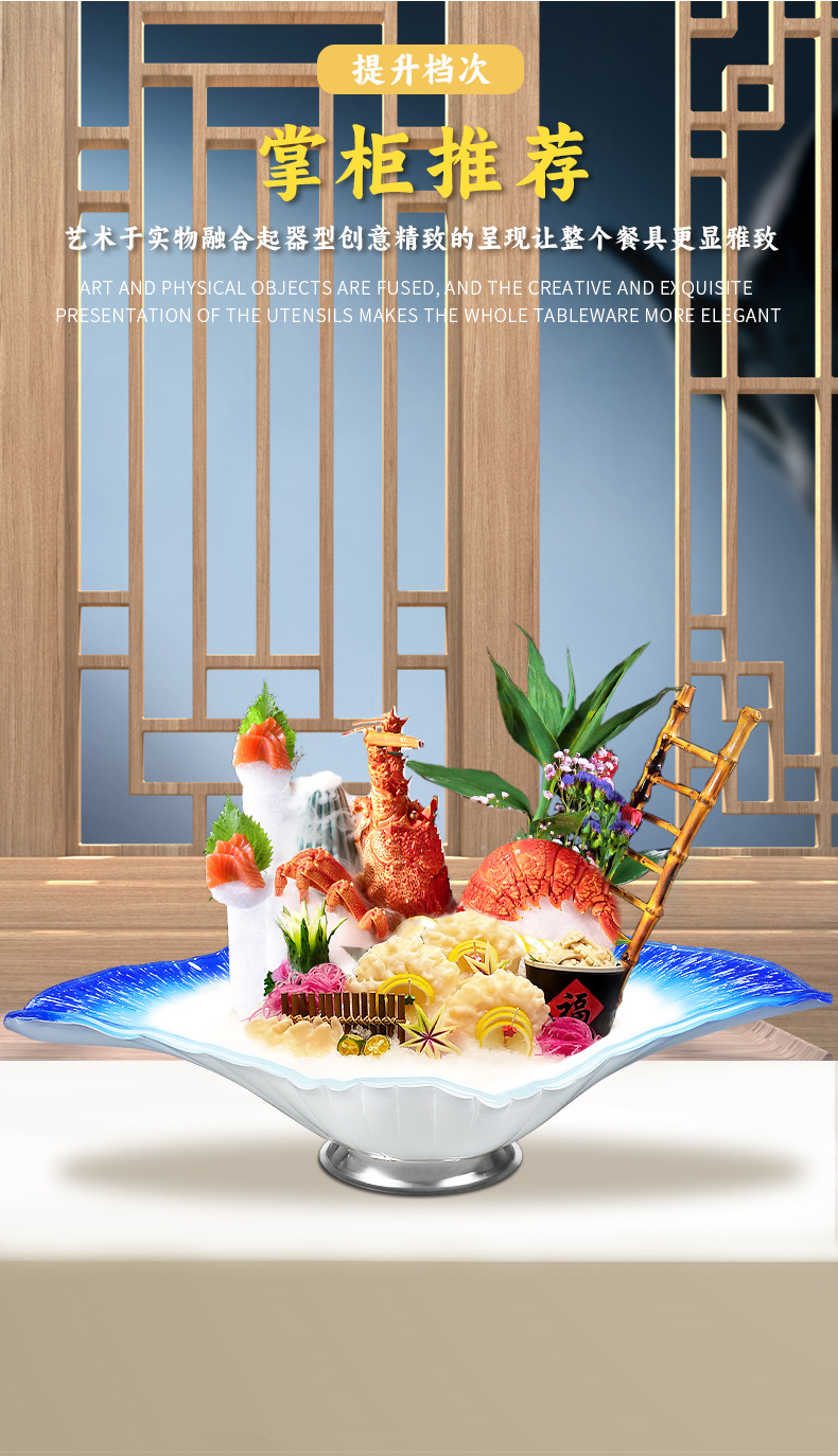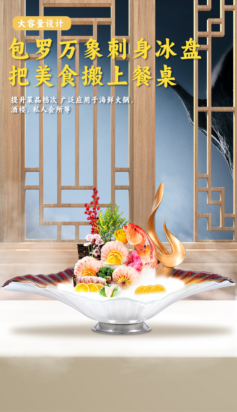 고급 연어 회 접시 얼음 접시 해산물 자세 생선 조각 접시 매운 플래터 드라이 아이스 식기 생선 특수 접시