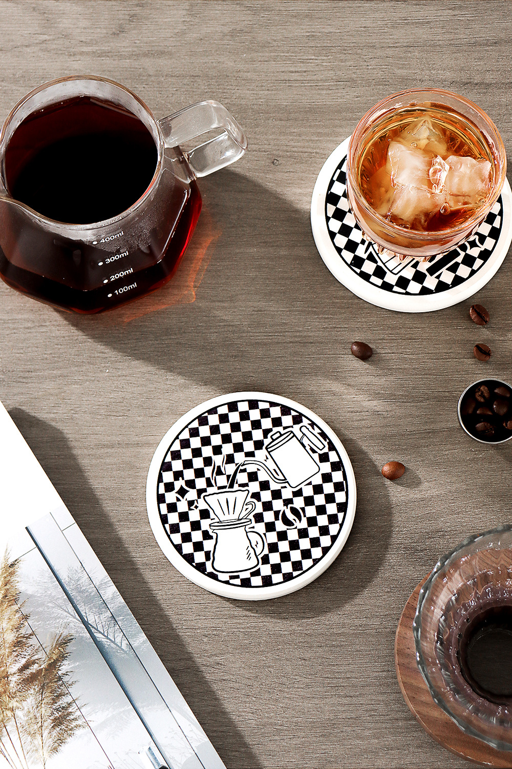 공장 직공급 모카 포트 커피 매트 in 스타일 간이 바둑판 컵 매트 세라믹 컵 단열 매트 도매