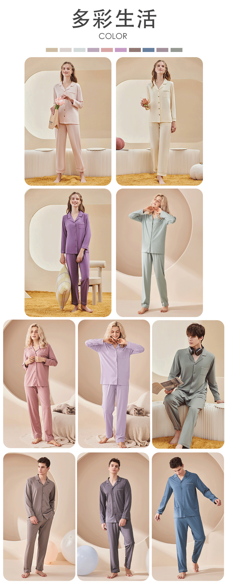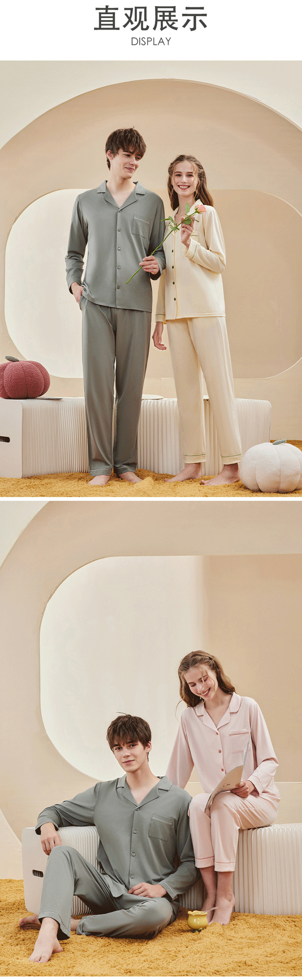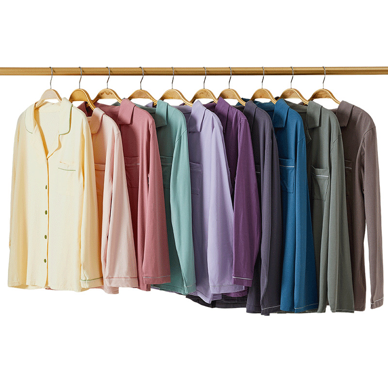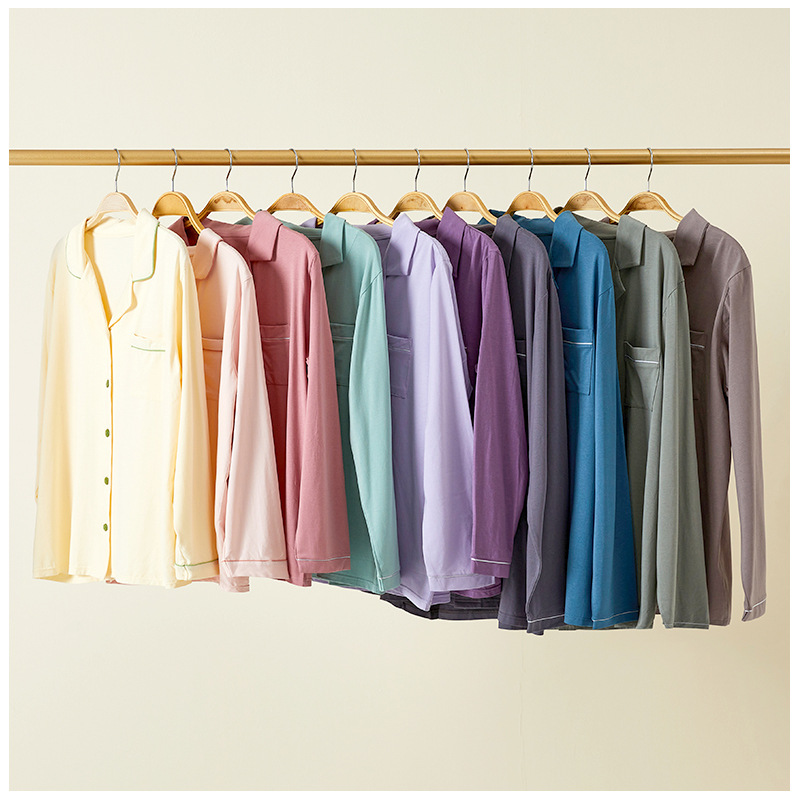 란징 모달 코튼 남성 잠옷 세트 봄 가을용 심플한 단색 커플 홈웨어 남성용 통기성 편안함