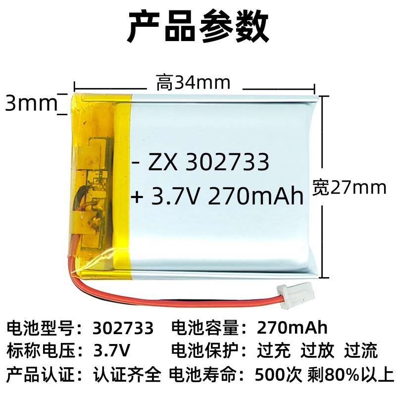 302733 소프트 백 5C 전원 배터리 전기 손톱깎이 면도기 스마트 스피커 폴리머 리튬 배터리 제조 업체