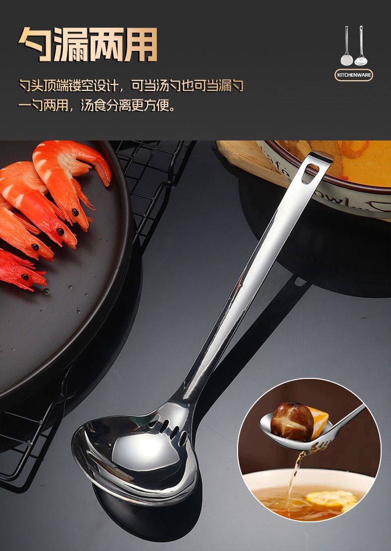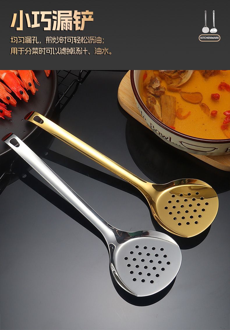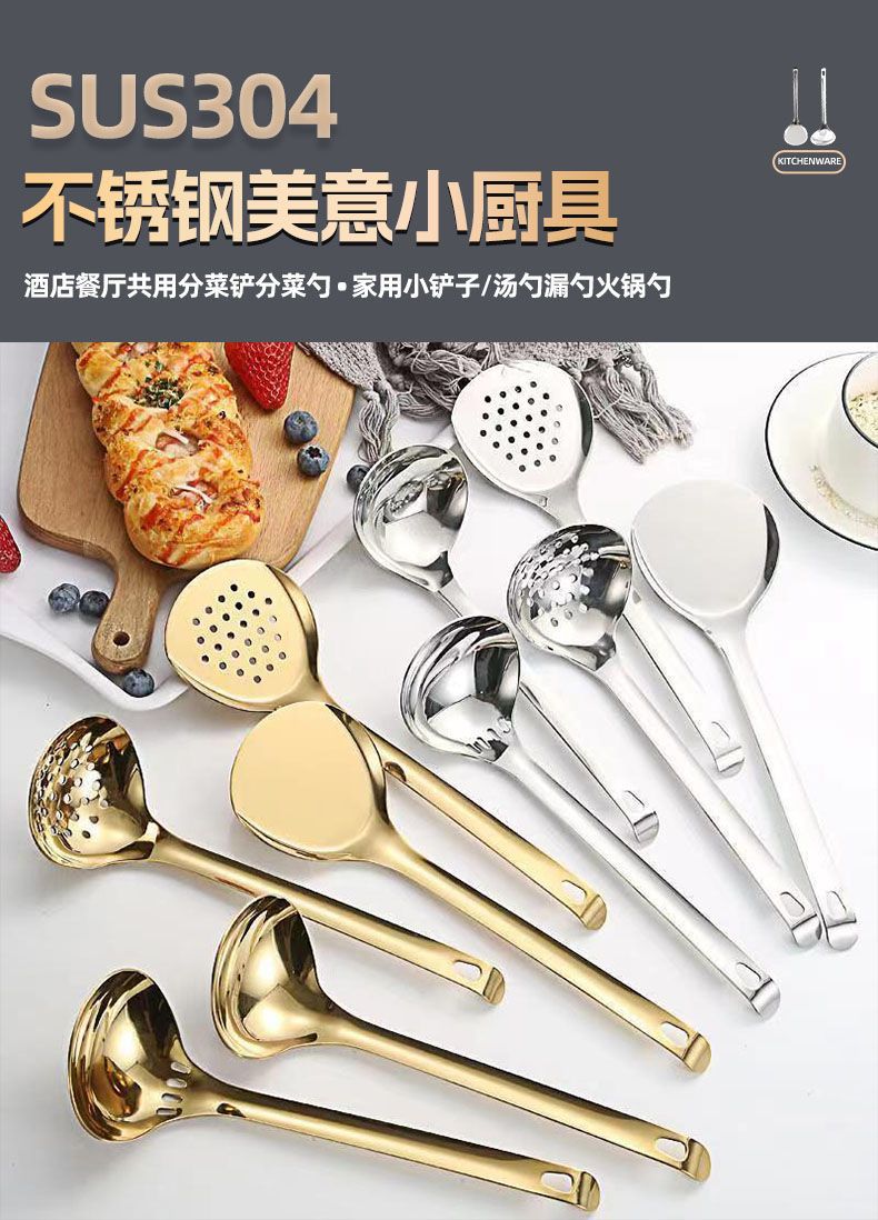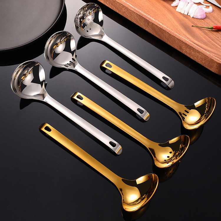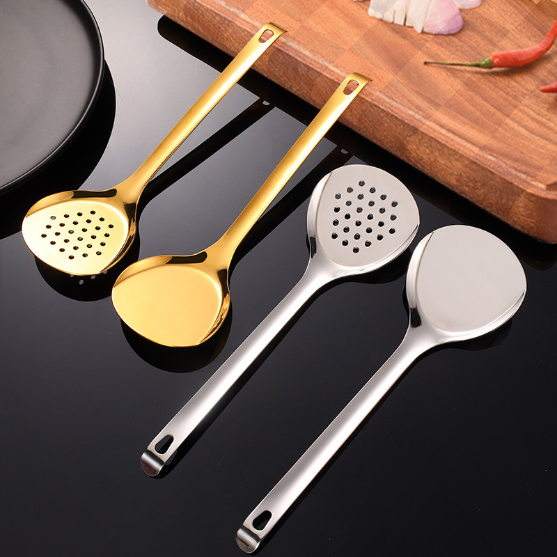 제조 업체 골든 304 스테인레스 스틸 스푼 호텔 요리 공공 삽 스푼 가정용 냄비 숟가락 소쿠리 2 in 1