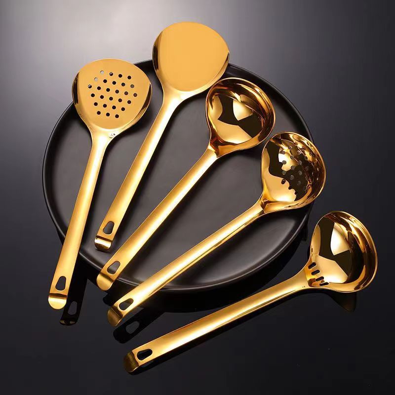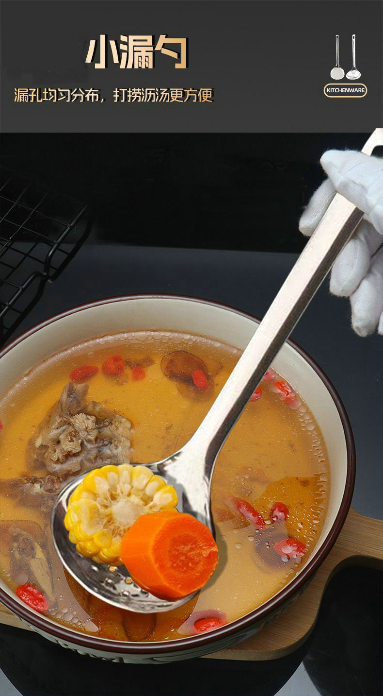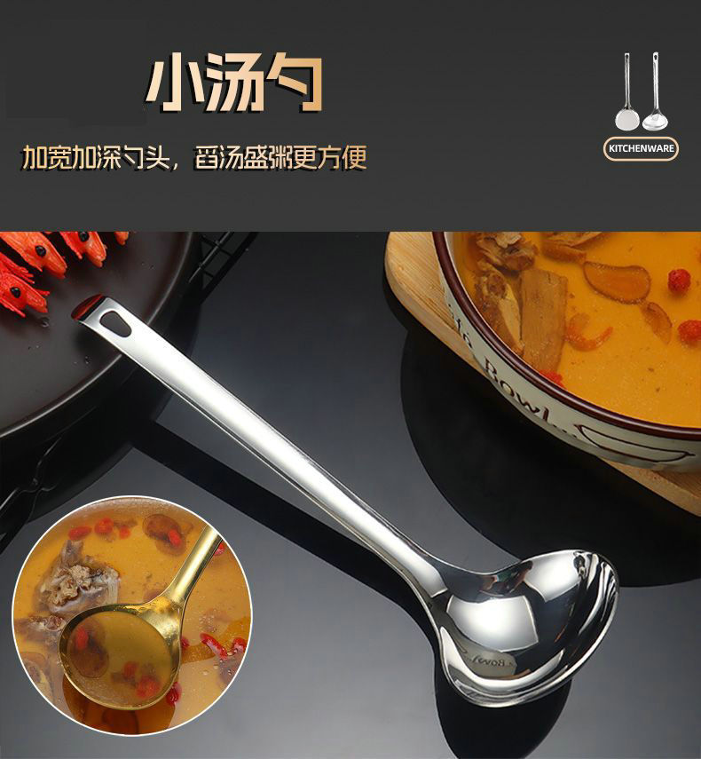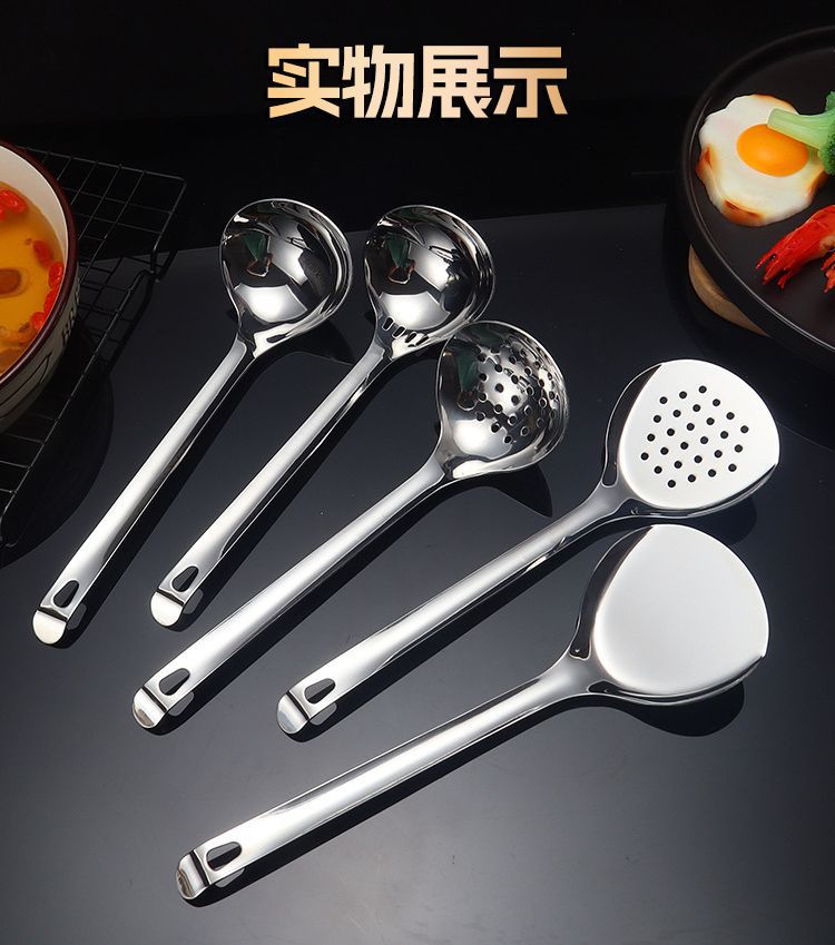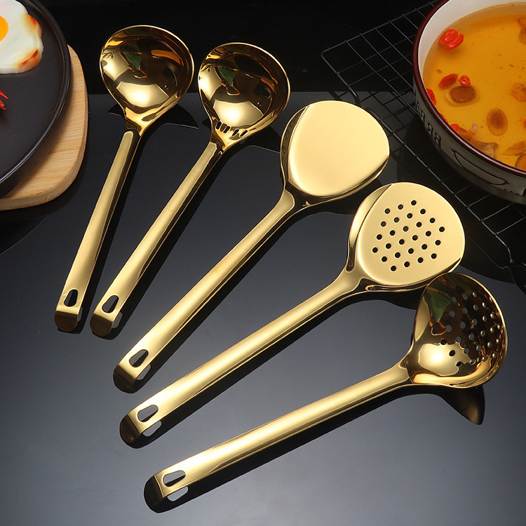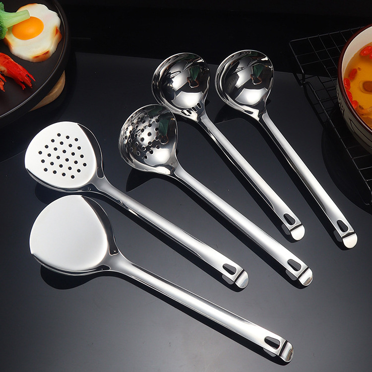 제조 업체 골든 304 스테인레스 스틸 스푼 호텔 요리 공공 삽 스푼 가정용 냄비 숟가락 소쿠리 2 in 1
