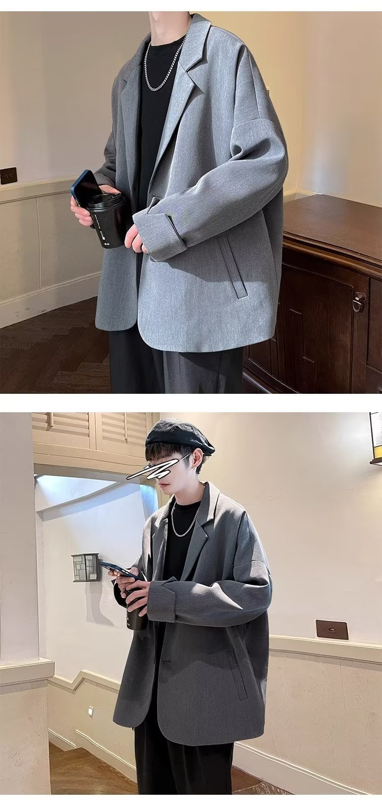 영국 유피 남자의 dk 캐주얼 세트 재킷 남자의 봄과 가을 유피 잘 생긴 하이 엔드 오버 사이즈 세트 재킷