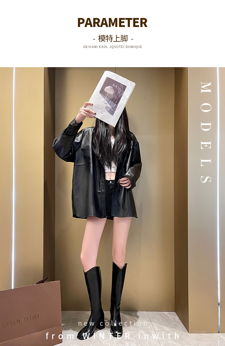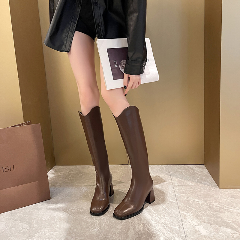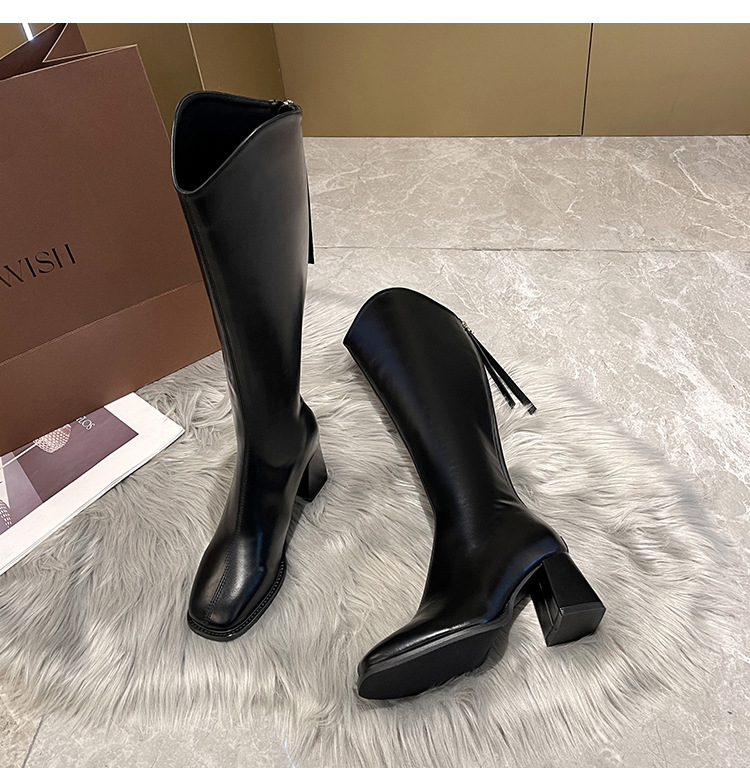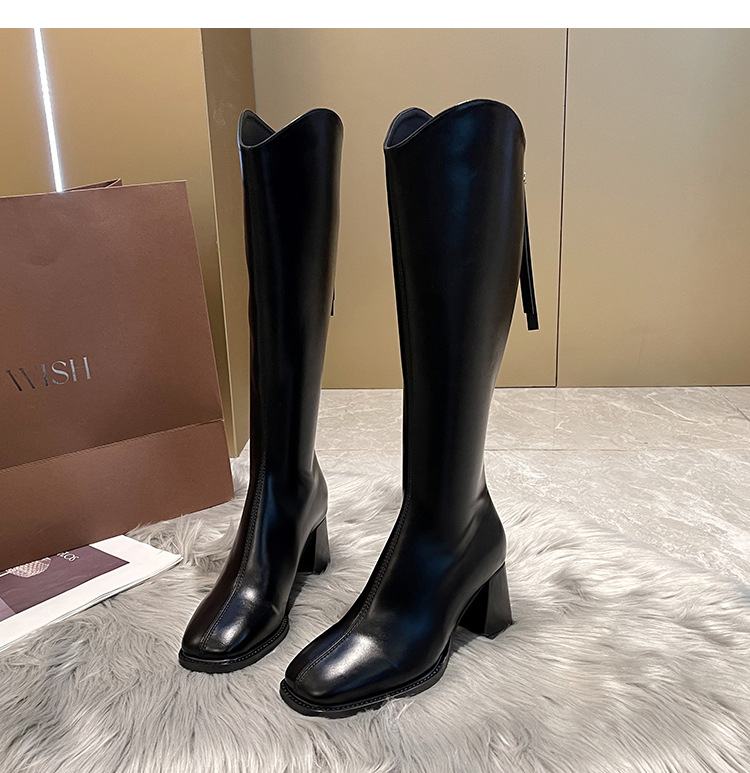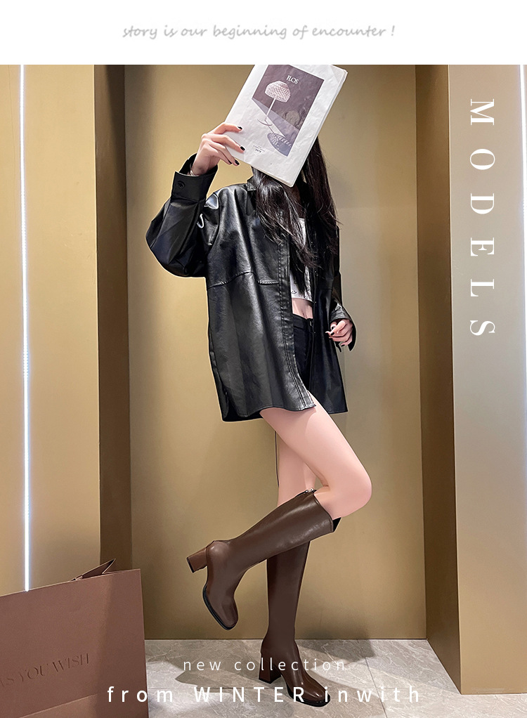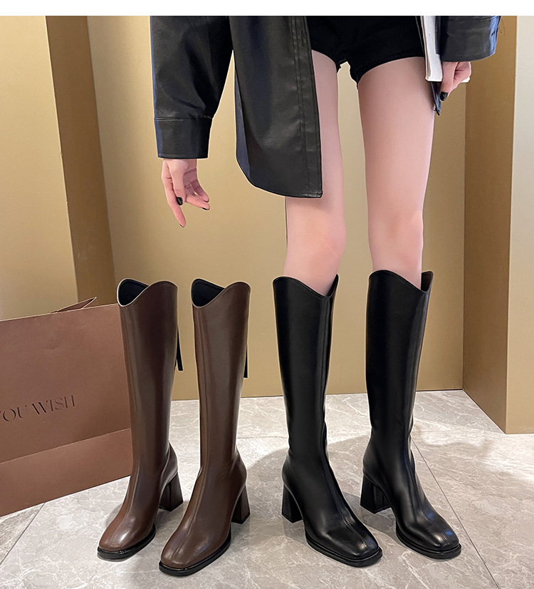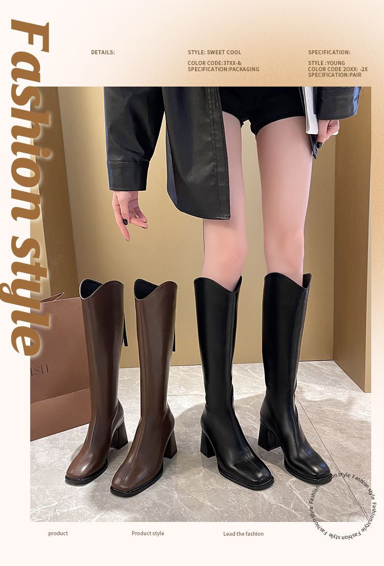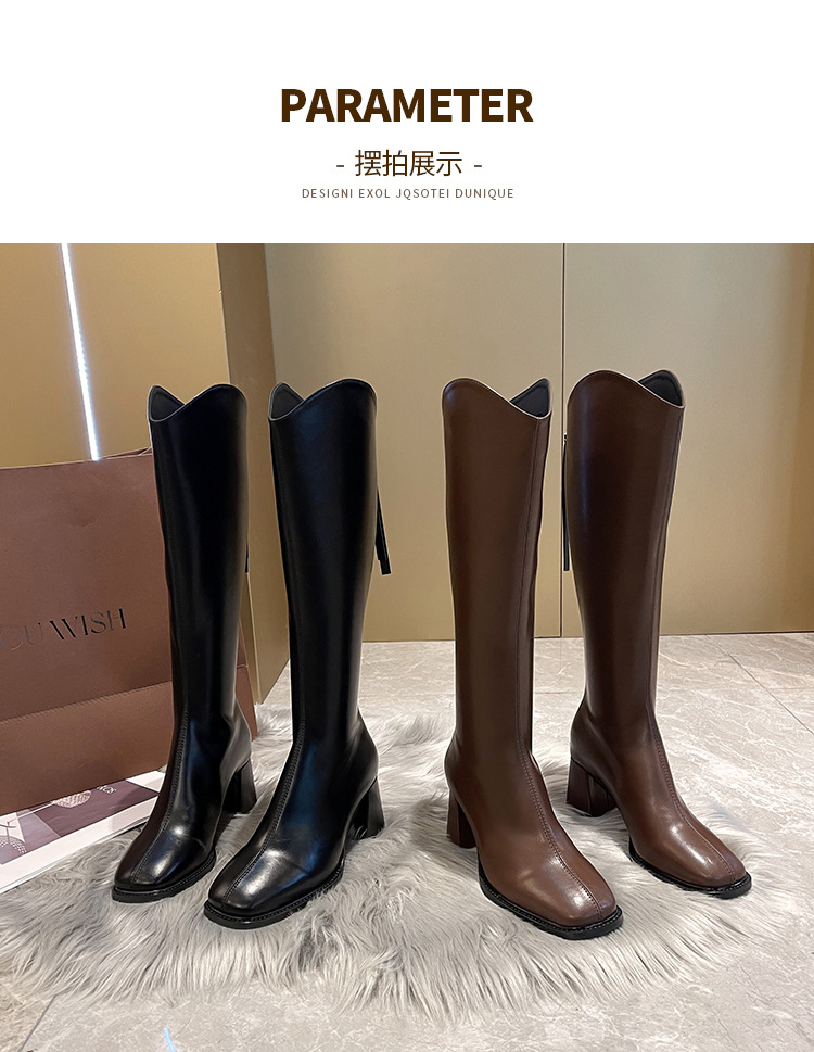 058-13 무릎 위까지 오는 여성용 신축성 슬림 부츠, 하이힐 롱부츠, 두꺼운 다리용, 큰 사이즈 여성 신발