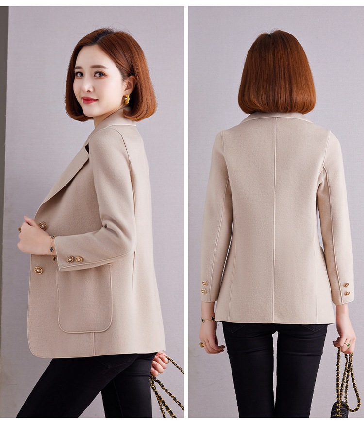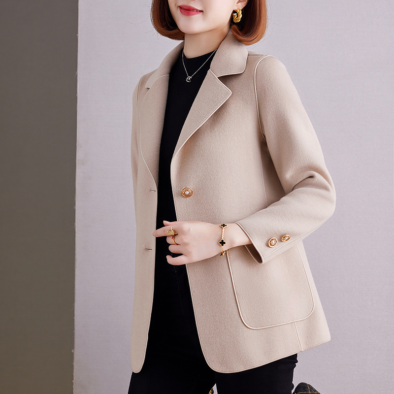 양면 캐시미어 트위드 코트 여성용 짧은 가을과 겨울 새로운 2023 하이 엔드 울 코트 탑