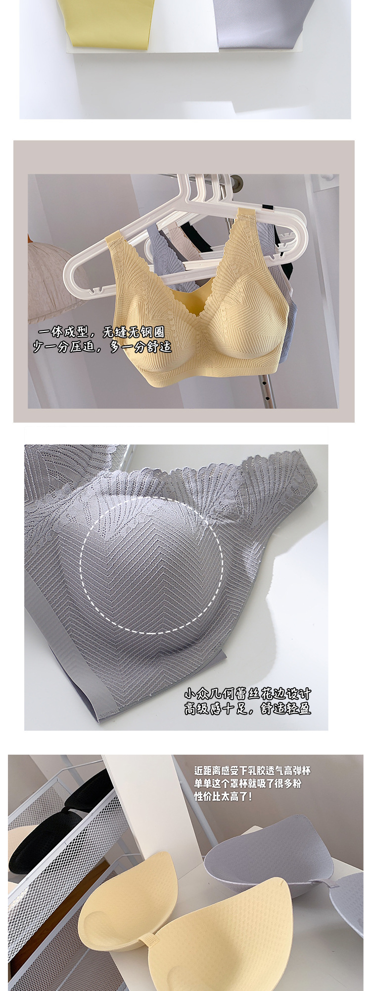 소름 끼치는 마음의 조름을 느끼는 타입의 라텍스 레이스 속옷, 탈부착 가능한 가슴 패드와 컵이 있는 스포츠 브라, 제조사에서 직접 공급하여 더 작아 보이게 해줍니다.