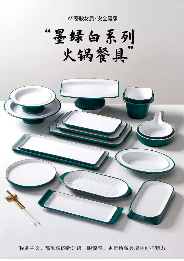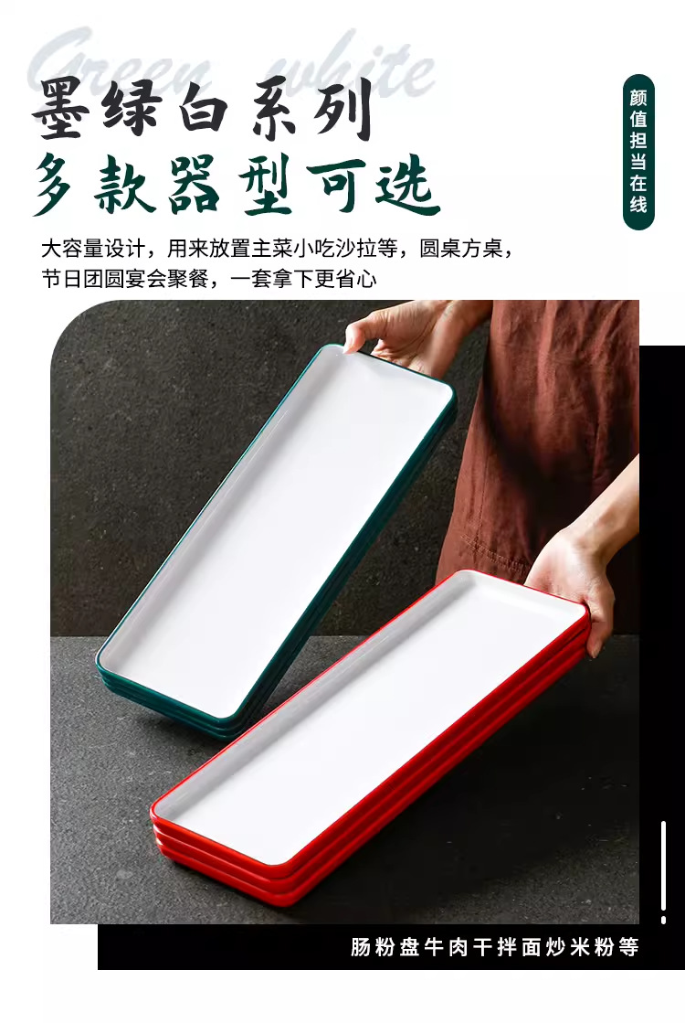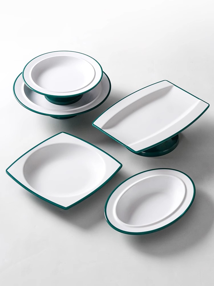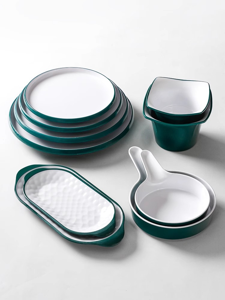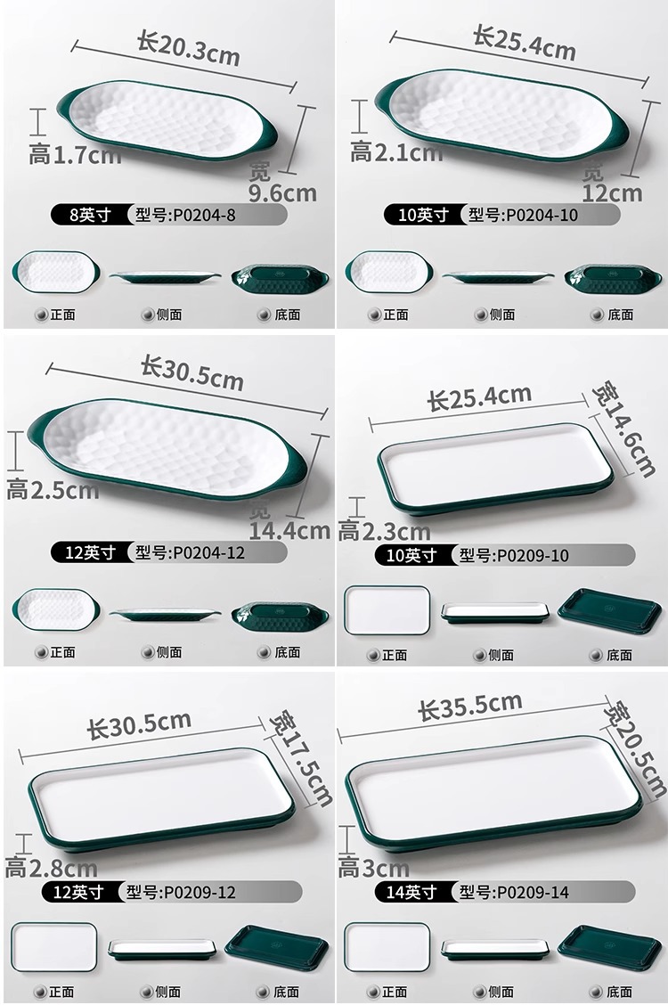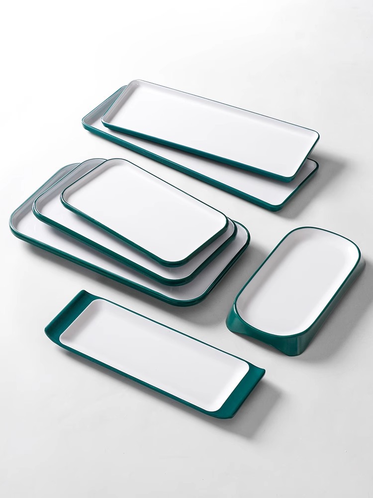 멜라민 식기 플레이트 직사각형 상업 레스토랑 바베큐 냄비 레스토랑 요리 모방 도자기 플라스틱 접시 바베큐 디너 플레이트