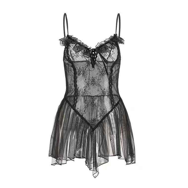 섹시한 속옷 유니폼 매력적인 레이스 플러스 사이즈 200 진 섹시 슬링 잠옷 투명 뜨거운 잠옷 세트