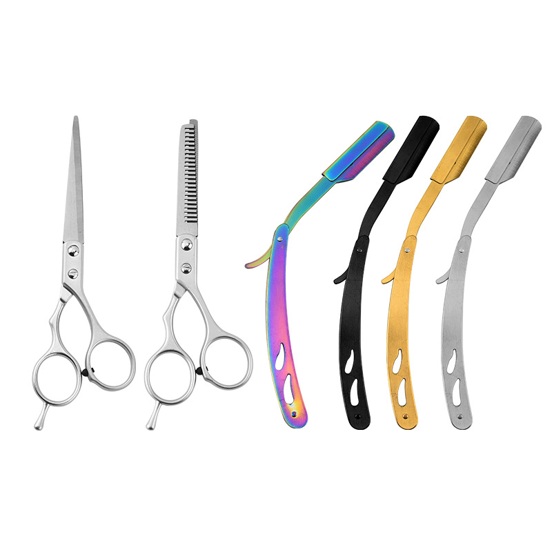 도매 이발사 가위 미용 가위 플랫 컷 치아 가위 미드 레인지 컷 이발사 가위 얇은 절단 이발사 가위 세트 제조 업체