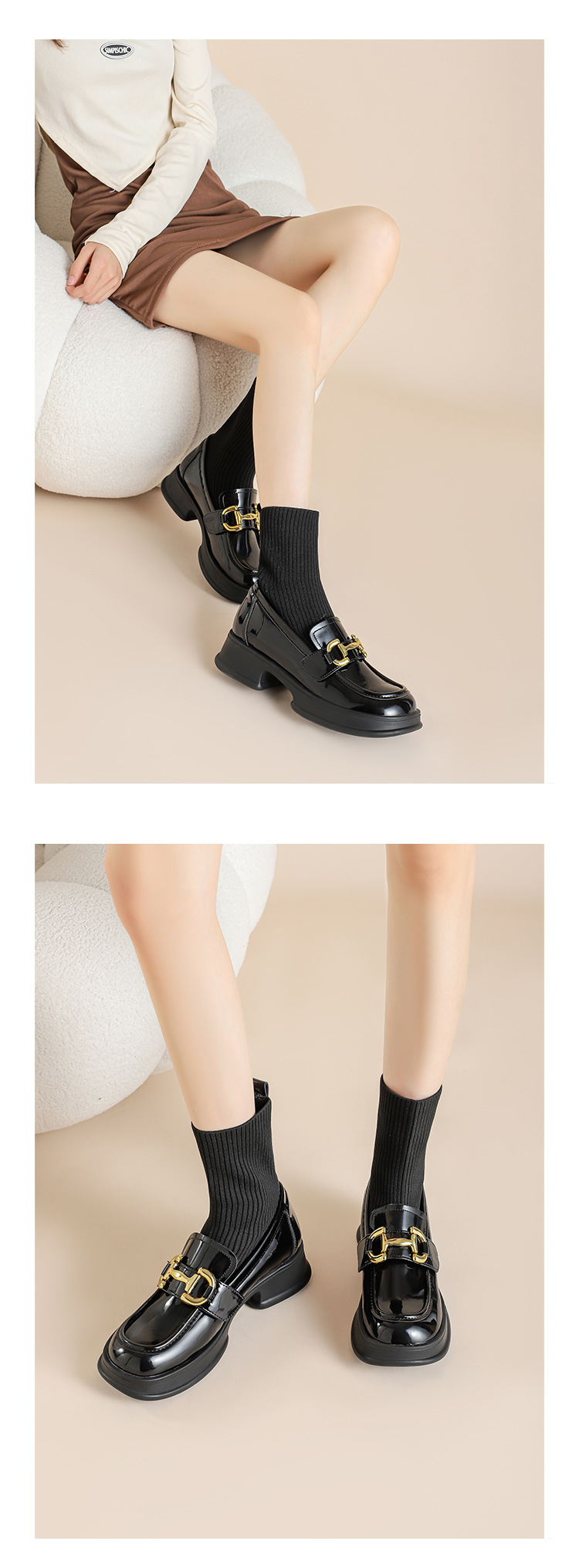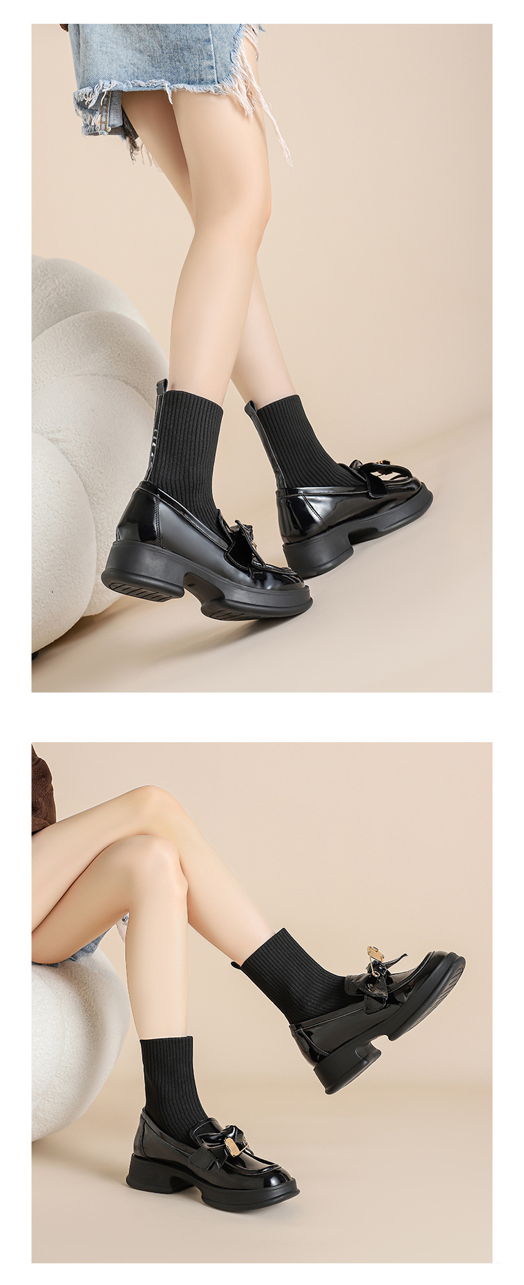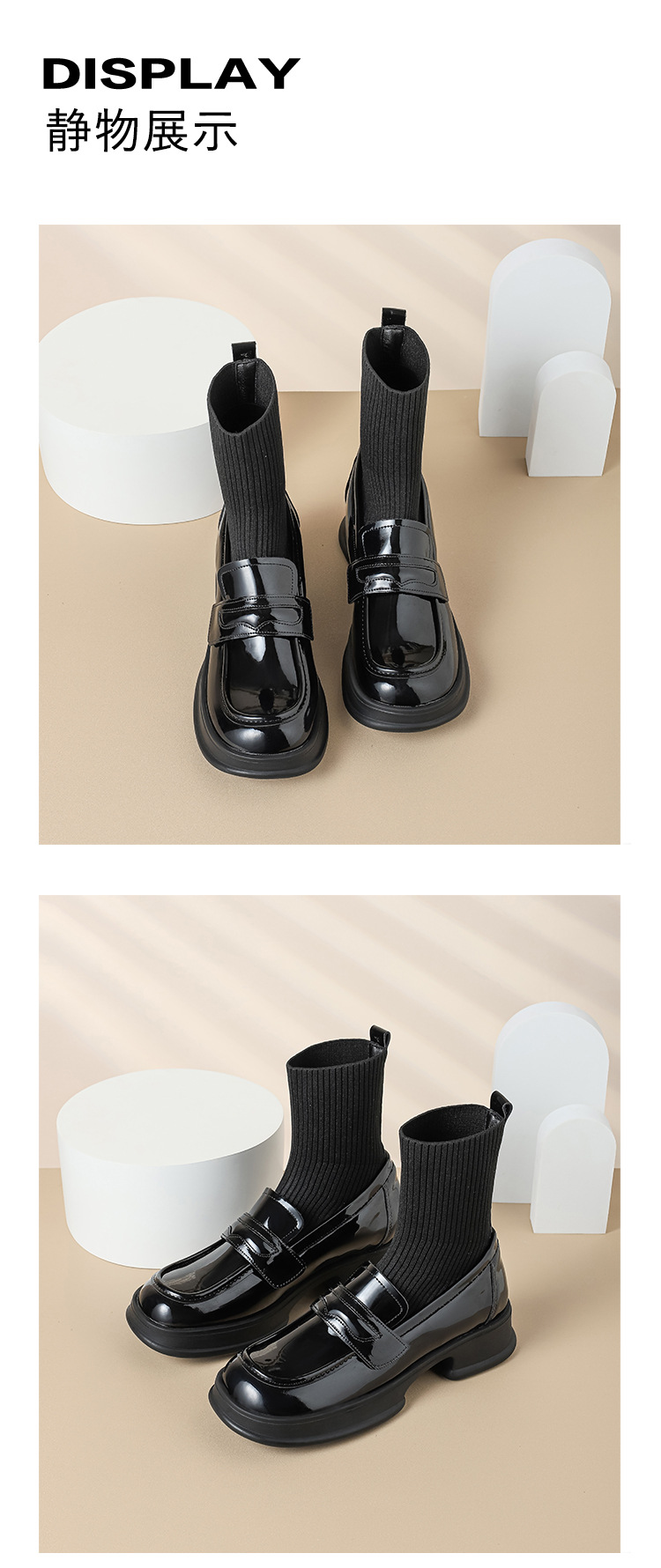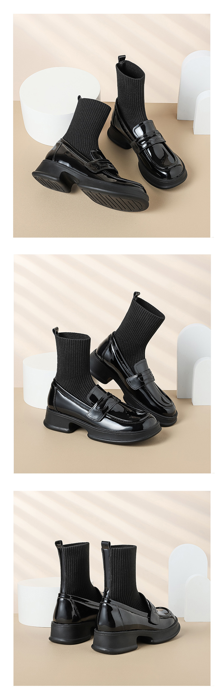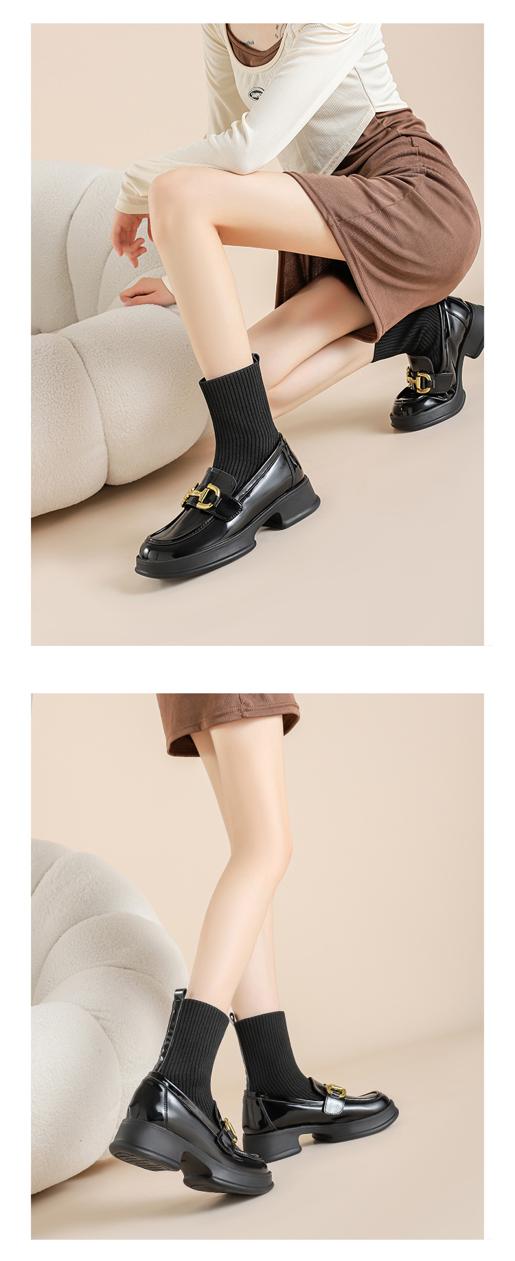 재고 있음】두꺼운 밑창 양말 부츠 여성용, 하나의 신발로 여러 가지 스타일 착용 가능, 로퍼, 키높이, 슬림 효과, 마틴 부츠, 숏부츠, 신축성 있는 슬림 부츠