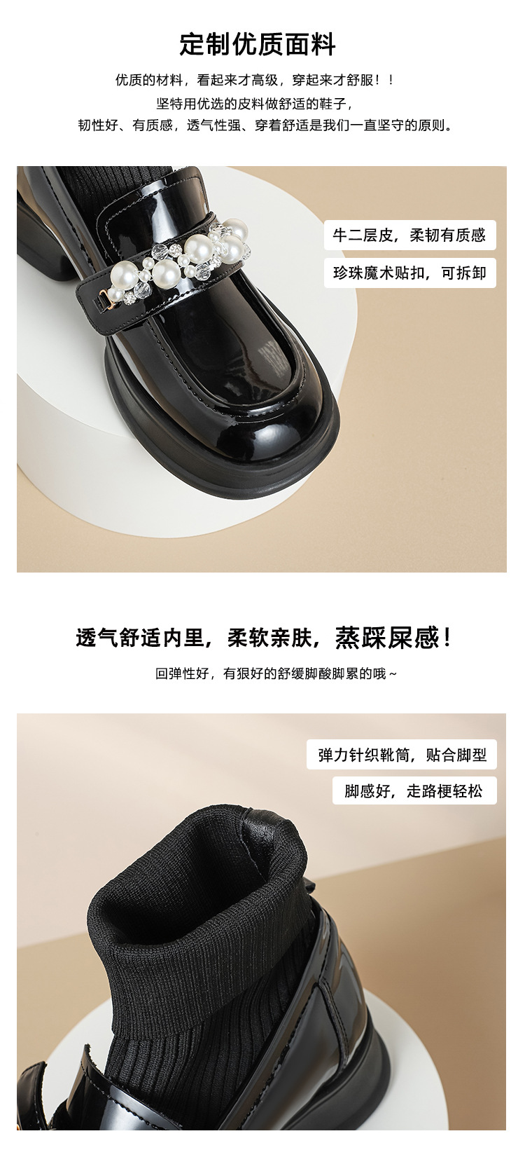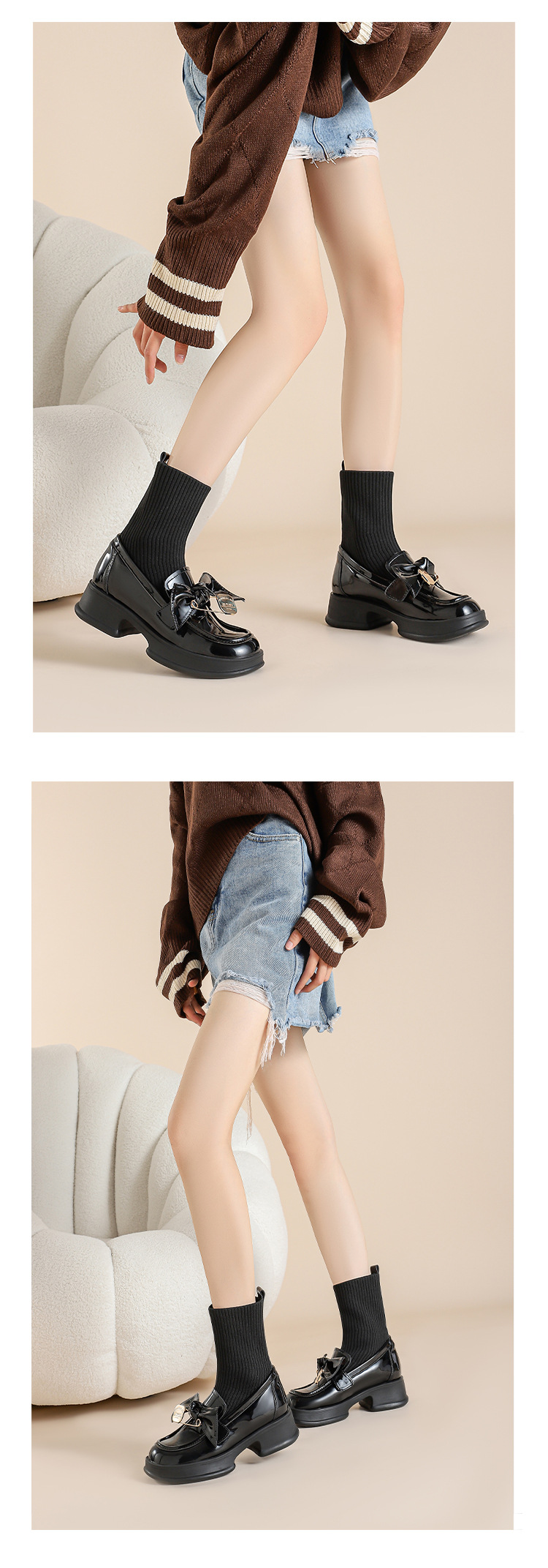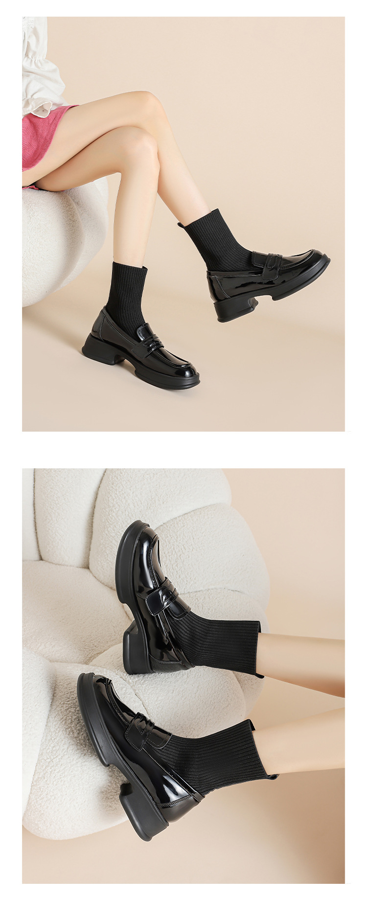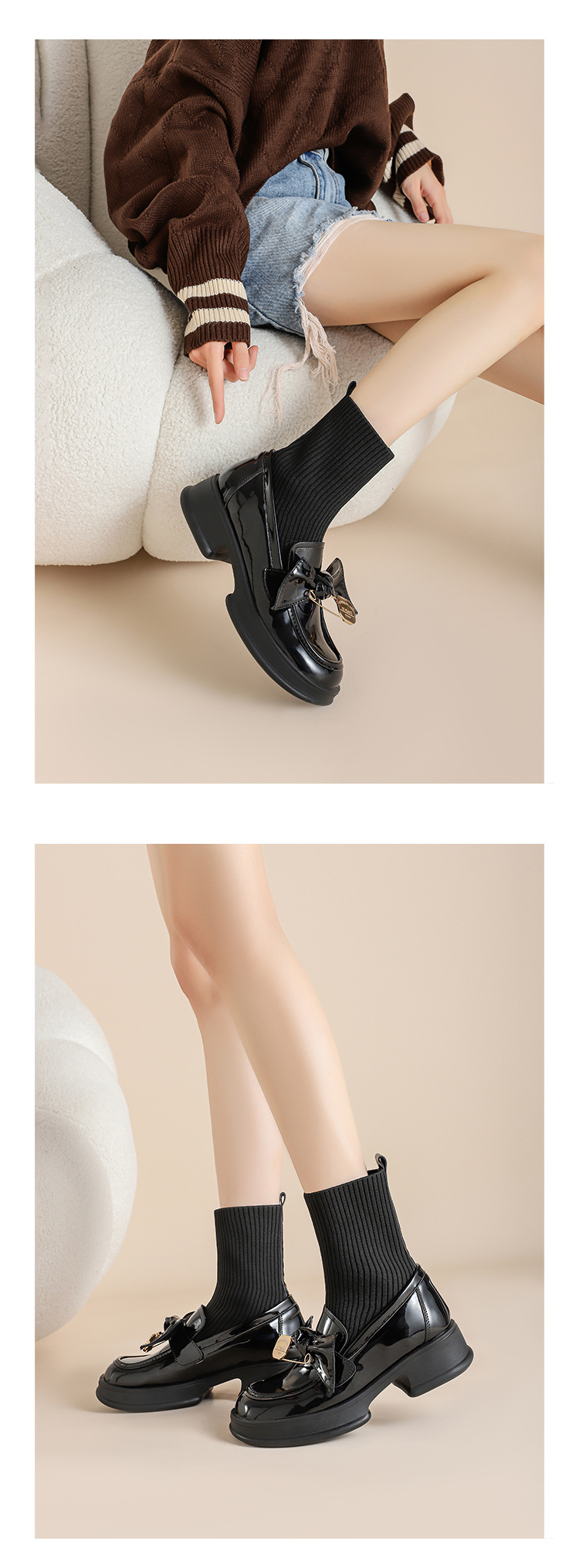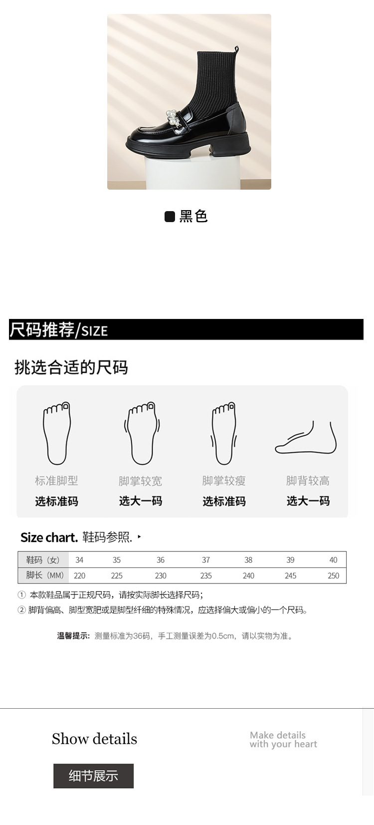 재고 있음】두꺼운 밑창 양말 부츠 여성용, 하나의 신발로 여러 가지 스타일 착용 가능, 로퍼, 키높이, 슬림 효과, 마틴 부츠, 숏부츠, 신축성 있는 슬림 부츠