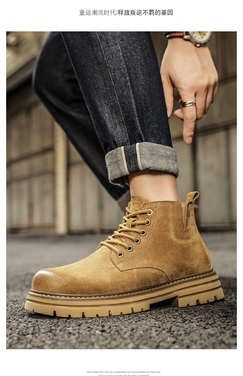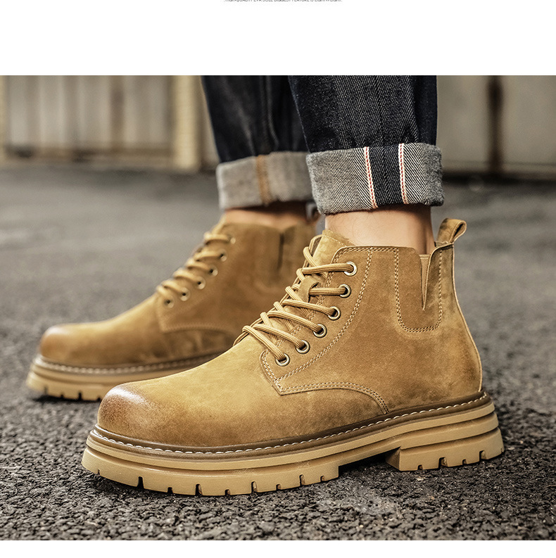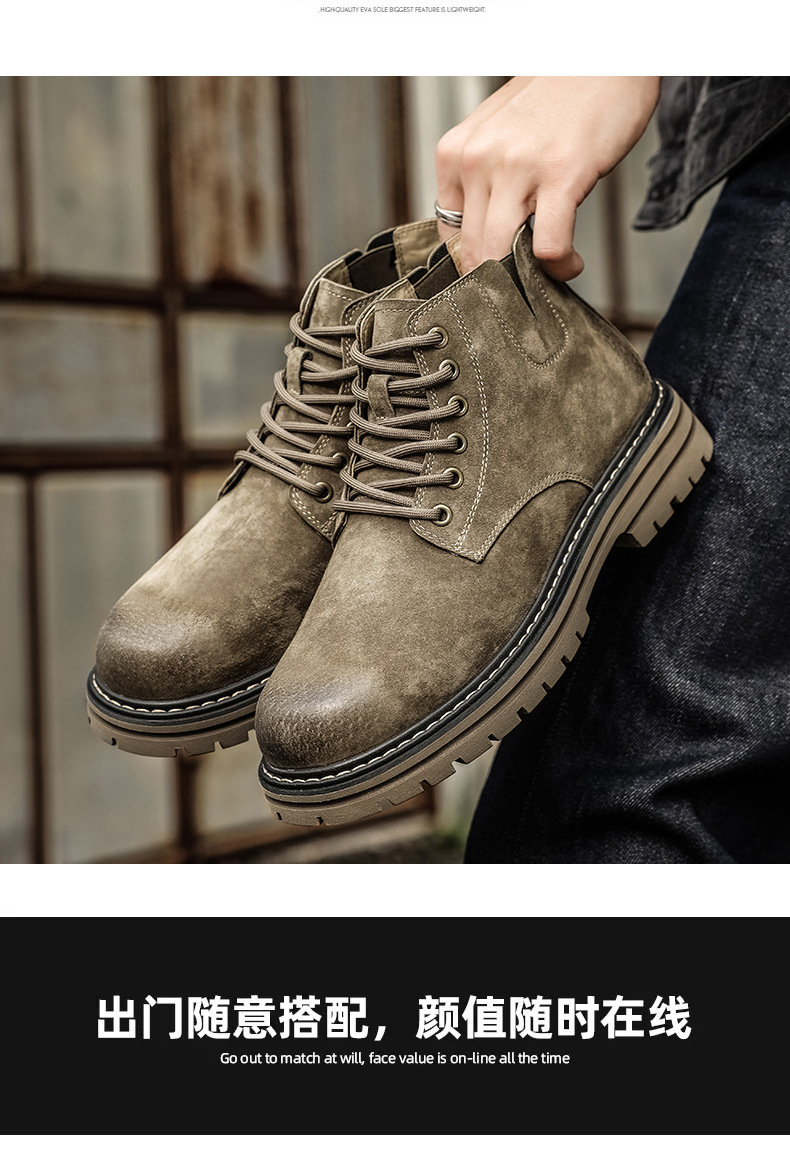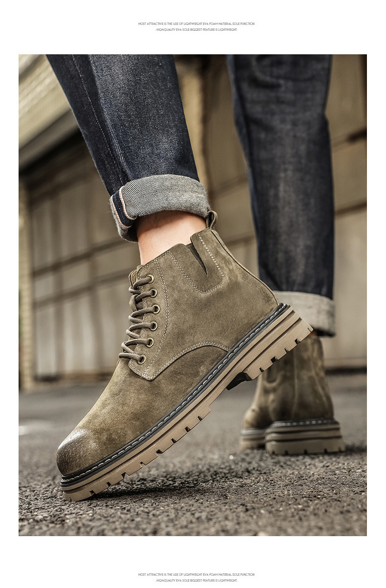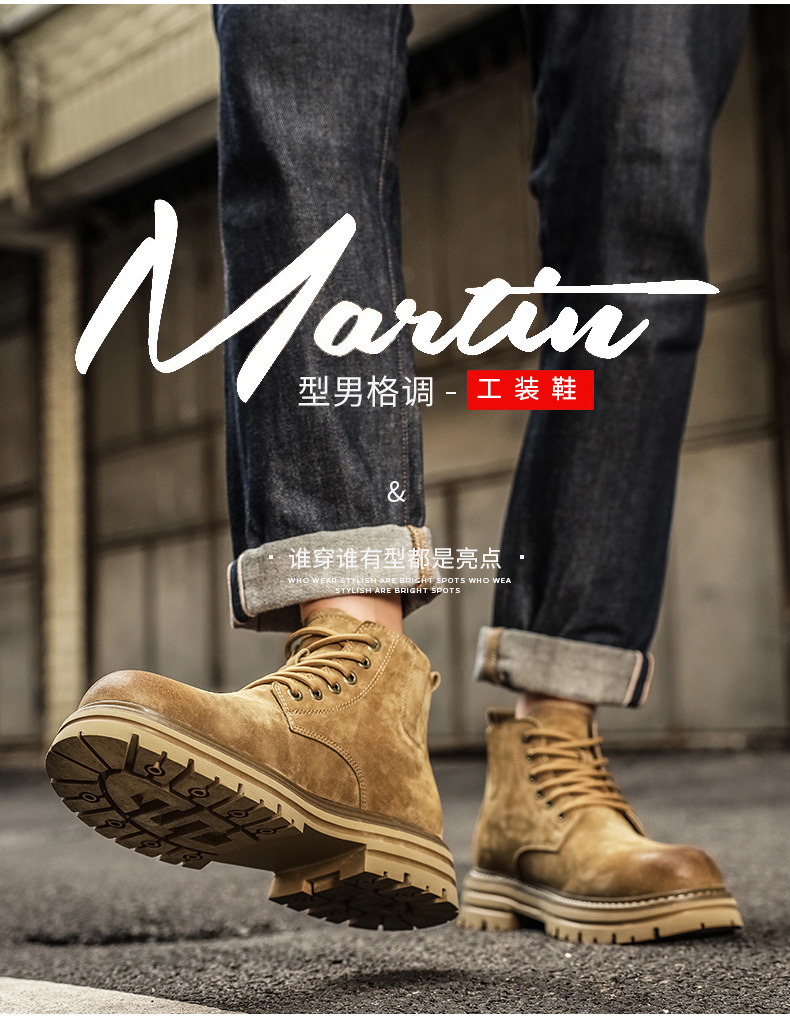가을 새로운 정품 가죽 트렌디 마틴 남성 신발 스웨이드 캐주얼 신발 모든 매치 영국식 미드 탑 앵클 부츠 작업복 신발