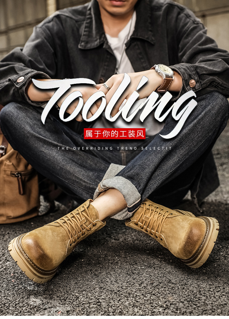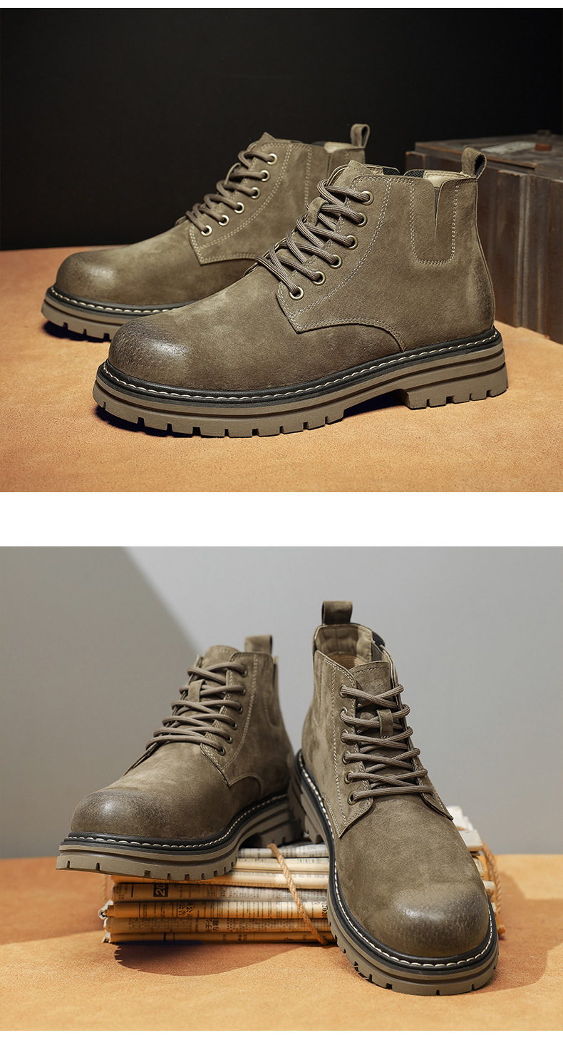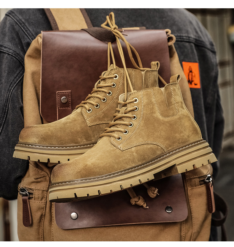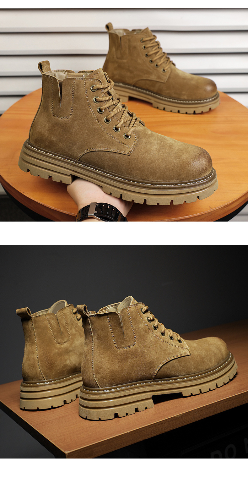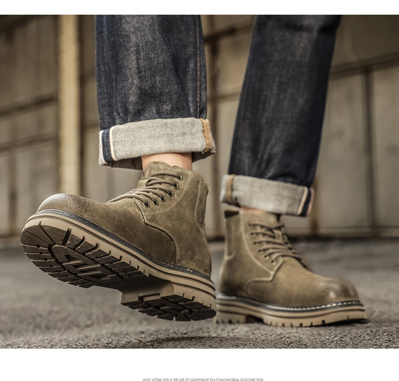 가을 새로운 정품 가죽 트렌디 마틴 남성 신발 스웨이드 캐주얼 신발 모든 매치 영국식 미드 탑 앵클 부츠 작업복 신발