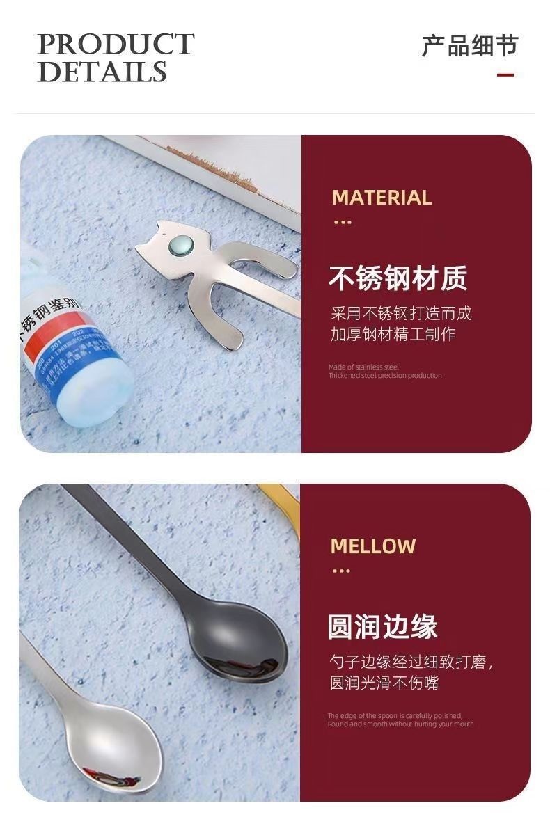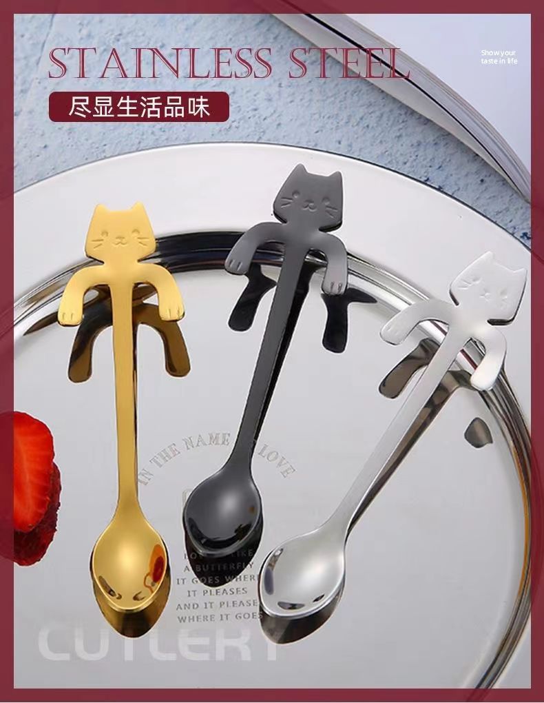 304 스테인레스 스틸 고양이 숟가락 창조적 인 귀여운 만화 교수형 컵 커피 스푼 디저트 스푼 머그잔 교수형 믹싱 스푼