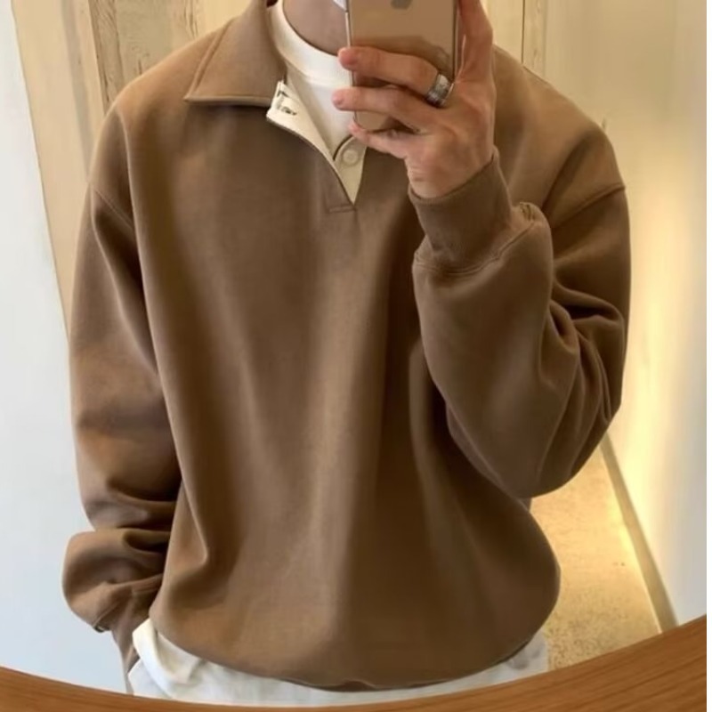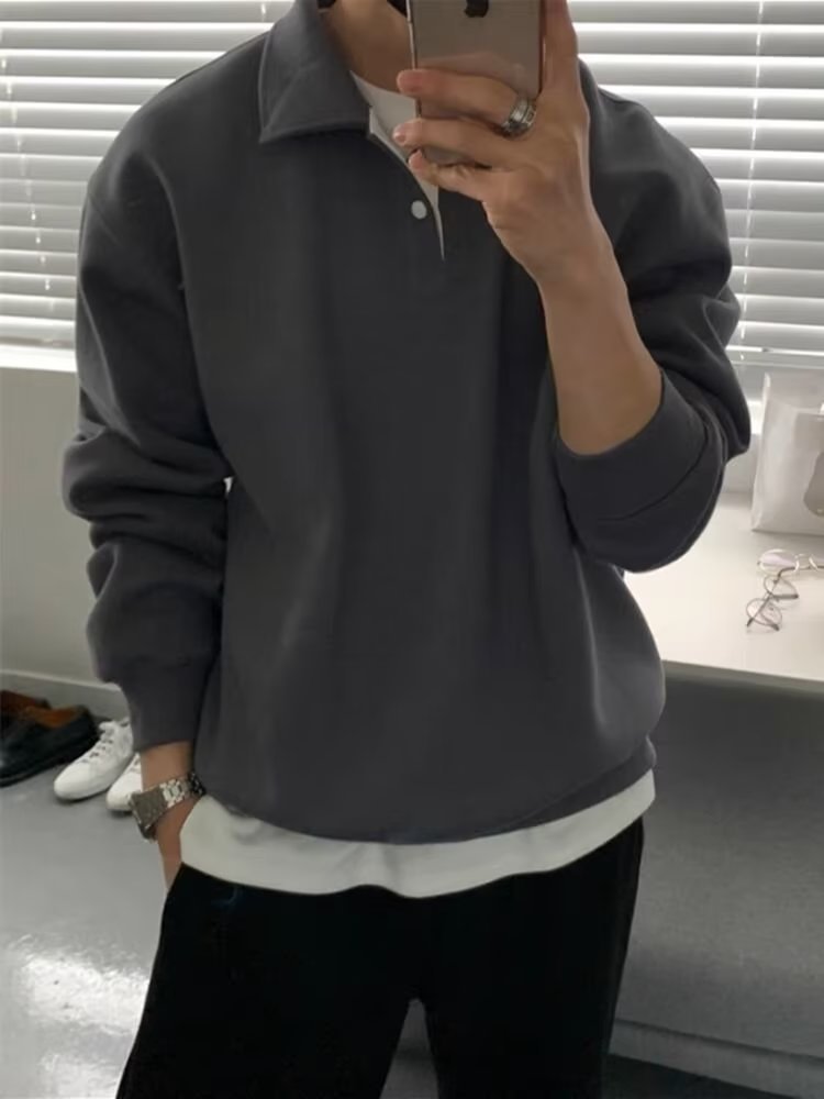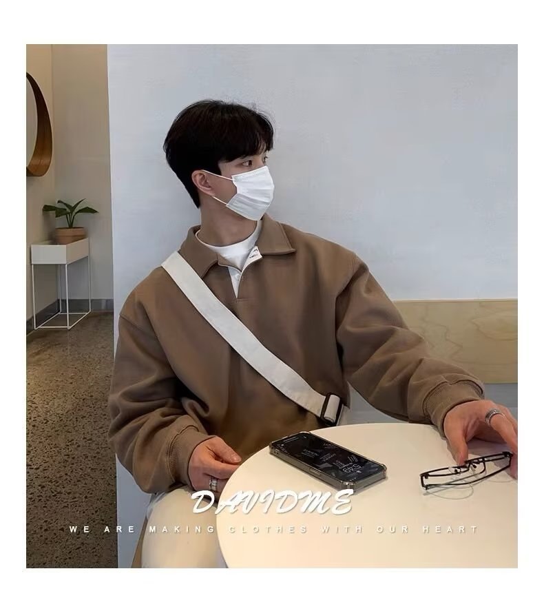 가벼운 성숙한 스타일 남성용 옷깃 스웨터 남성용 봄과 가을 패션 브랜드 폴로 셔츠 한국 스타일 착용 재킷