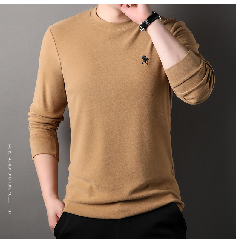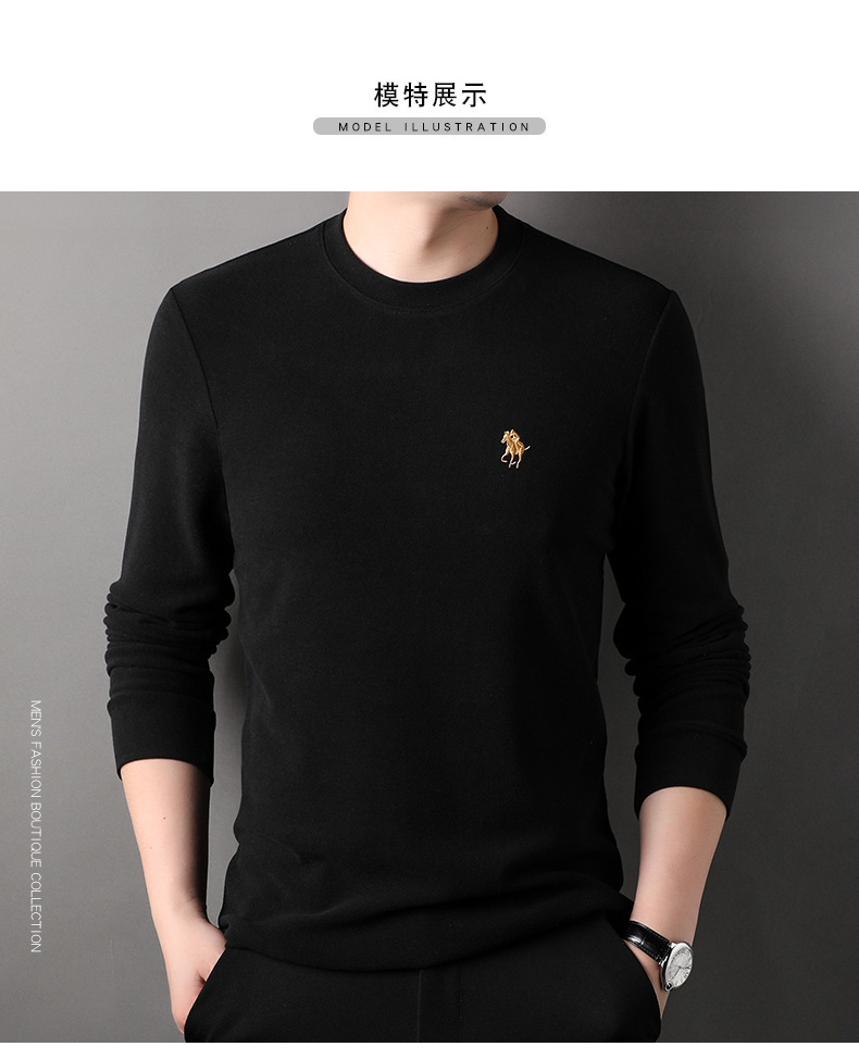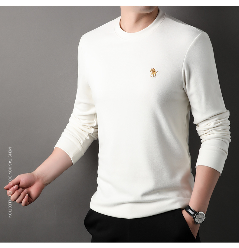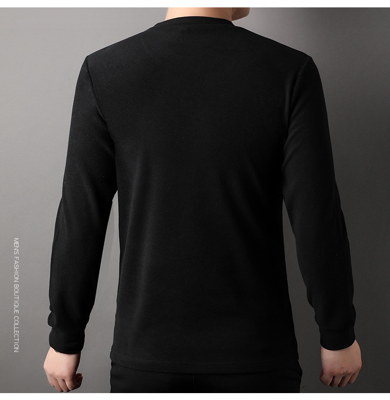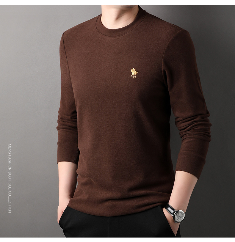 펜슨 롱 드 벨벳 베이스 셔츠 남성 속옷 가을과 겨울 하프 하이 칼라 중년 자수 티셔츠 남성용 따뜻한 탑